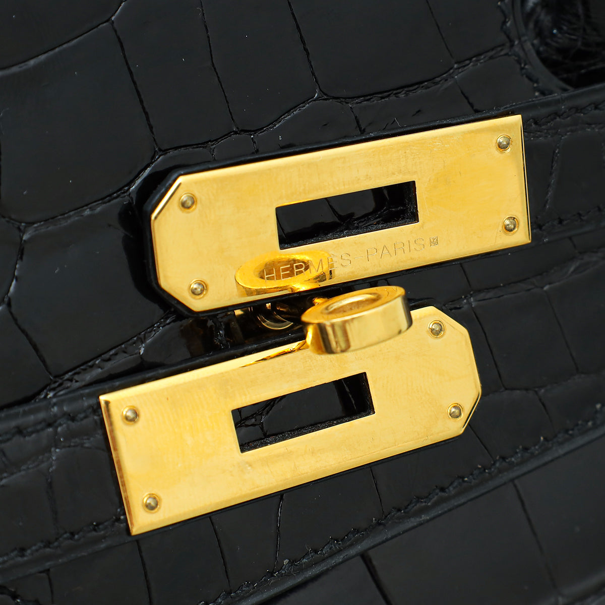 Hermes Noir Crocodile Porosus Birkin 35 Bag