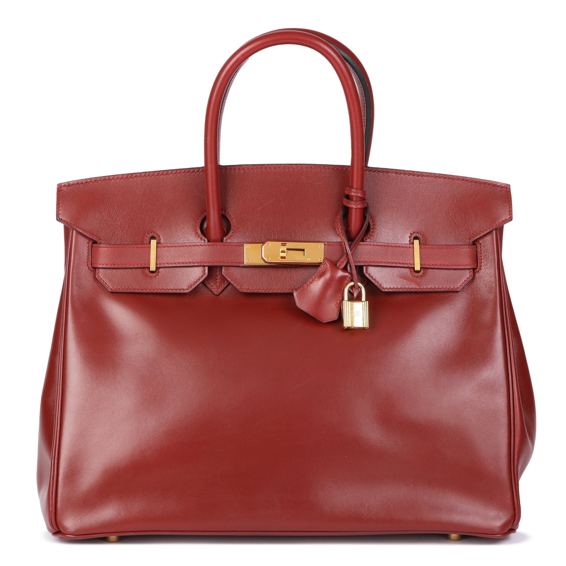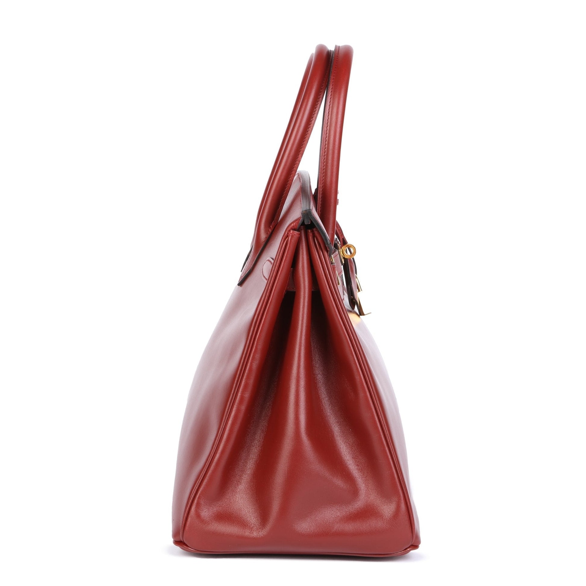 Hermes Rouge Vif Box Calf Leather Vintage Birkin 35cm Retourne Tote