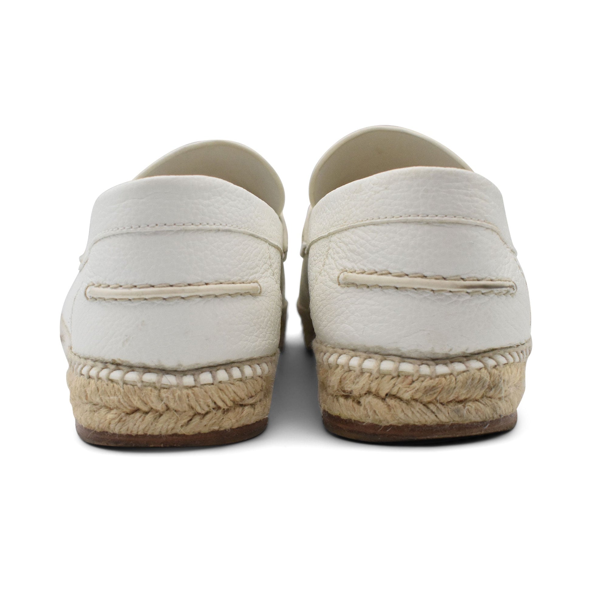 Hermes 'Trip' slip-on espadrilles in white leather with cream rubber trim and a woven twine sole.