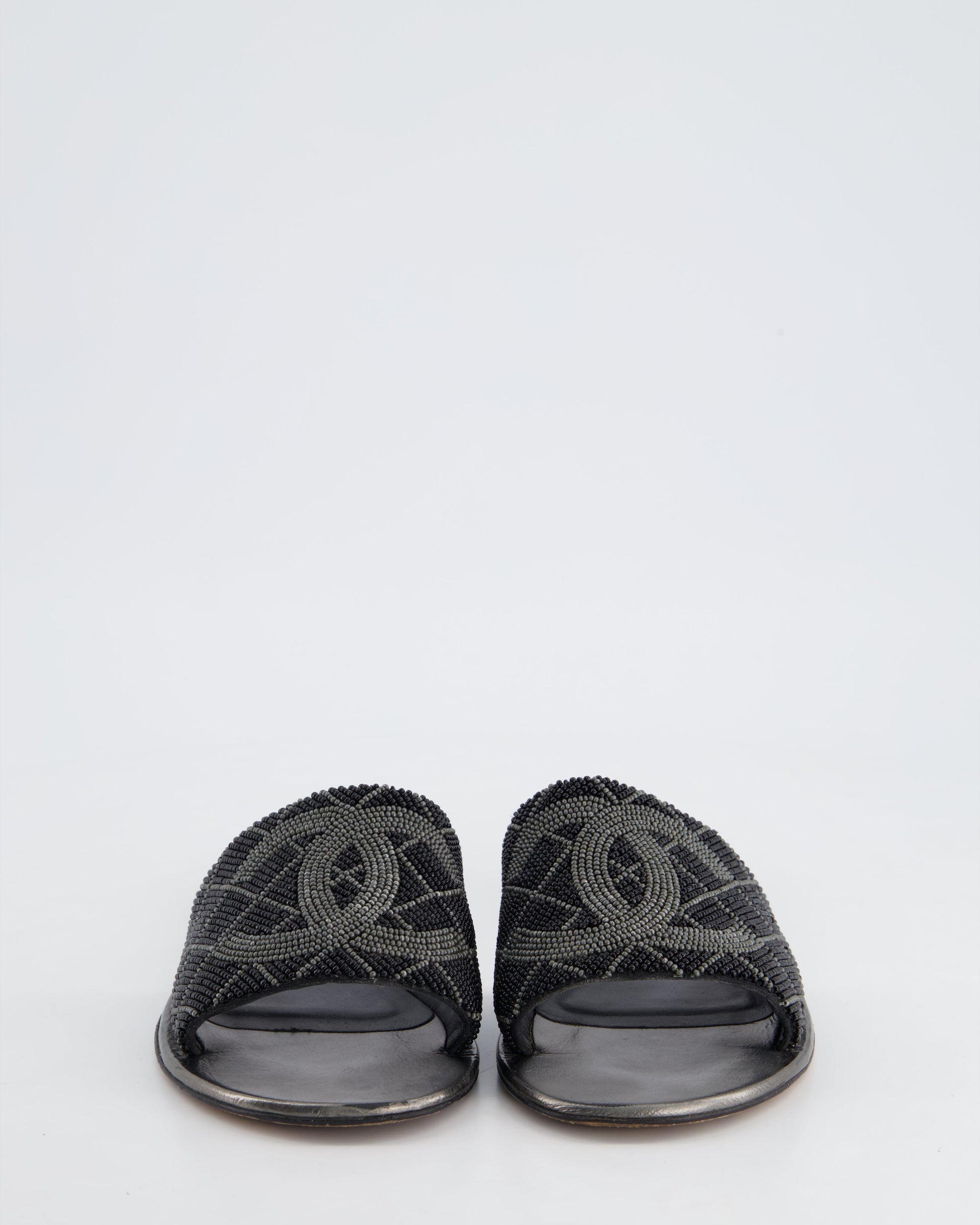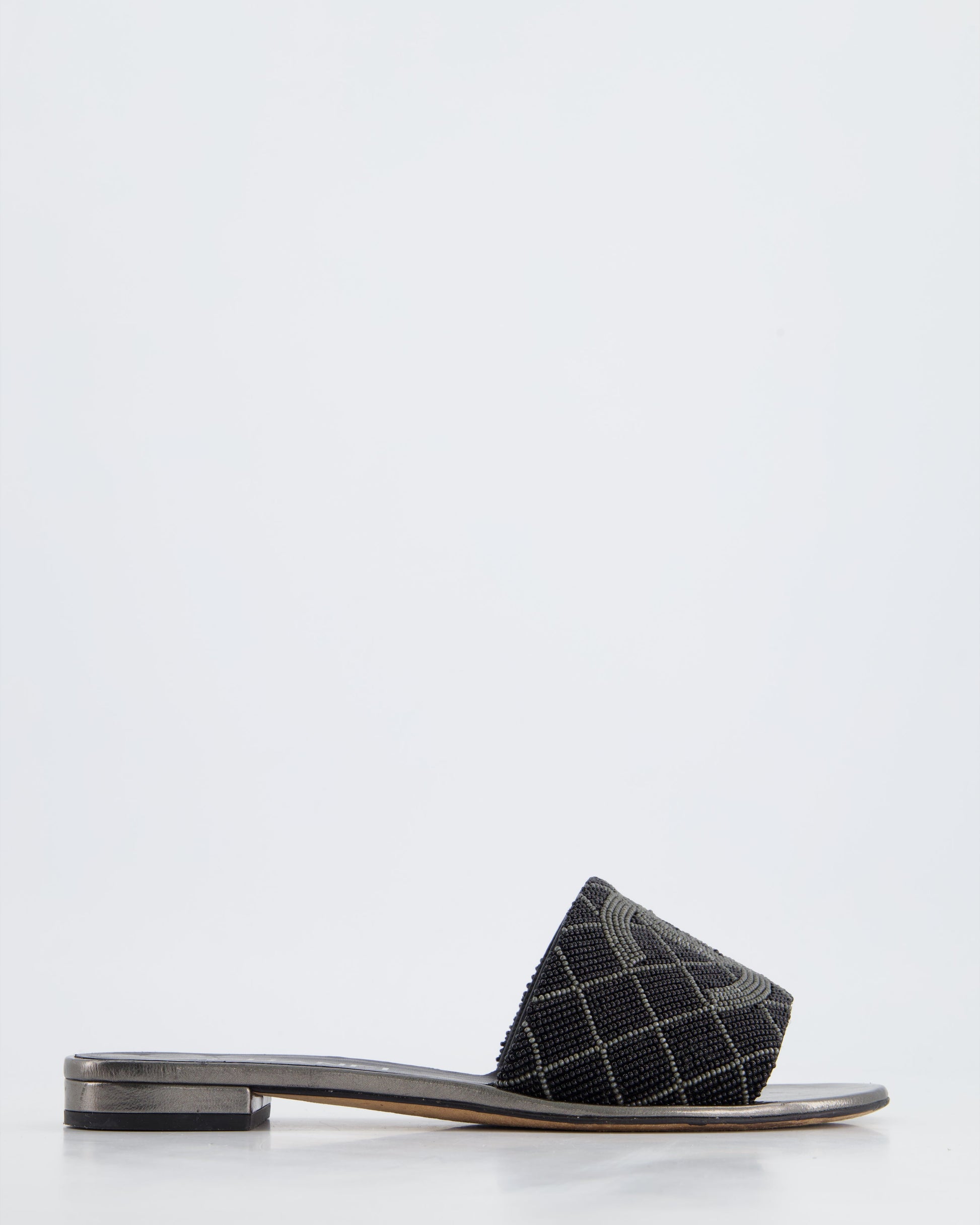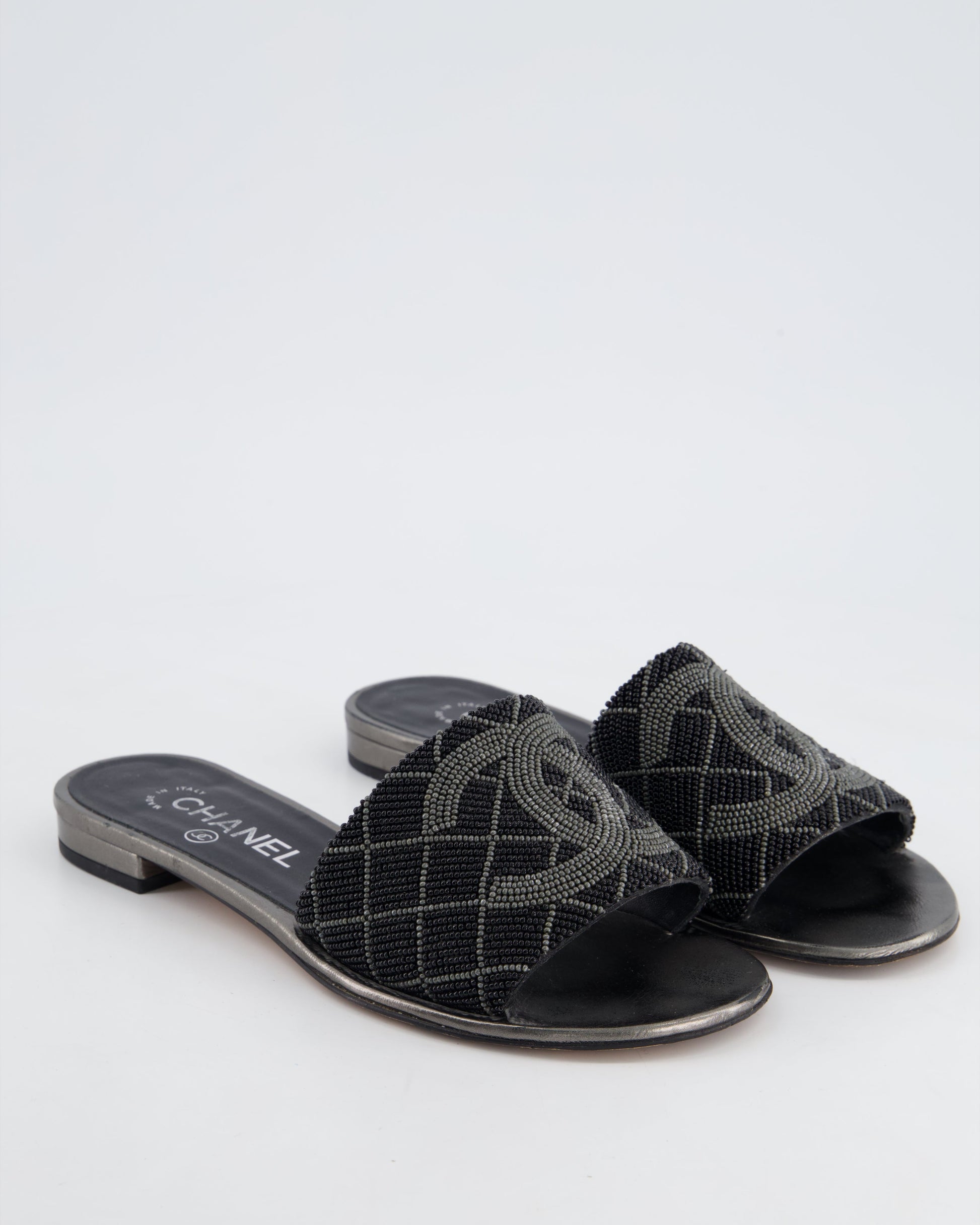 *HOT* Chanel Black, Silver Sliders with Embellished CC Logo Detail Size EU 37.5