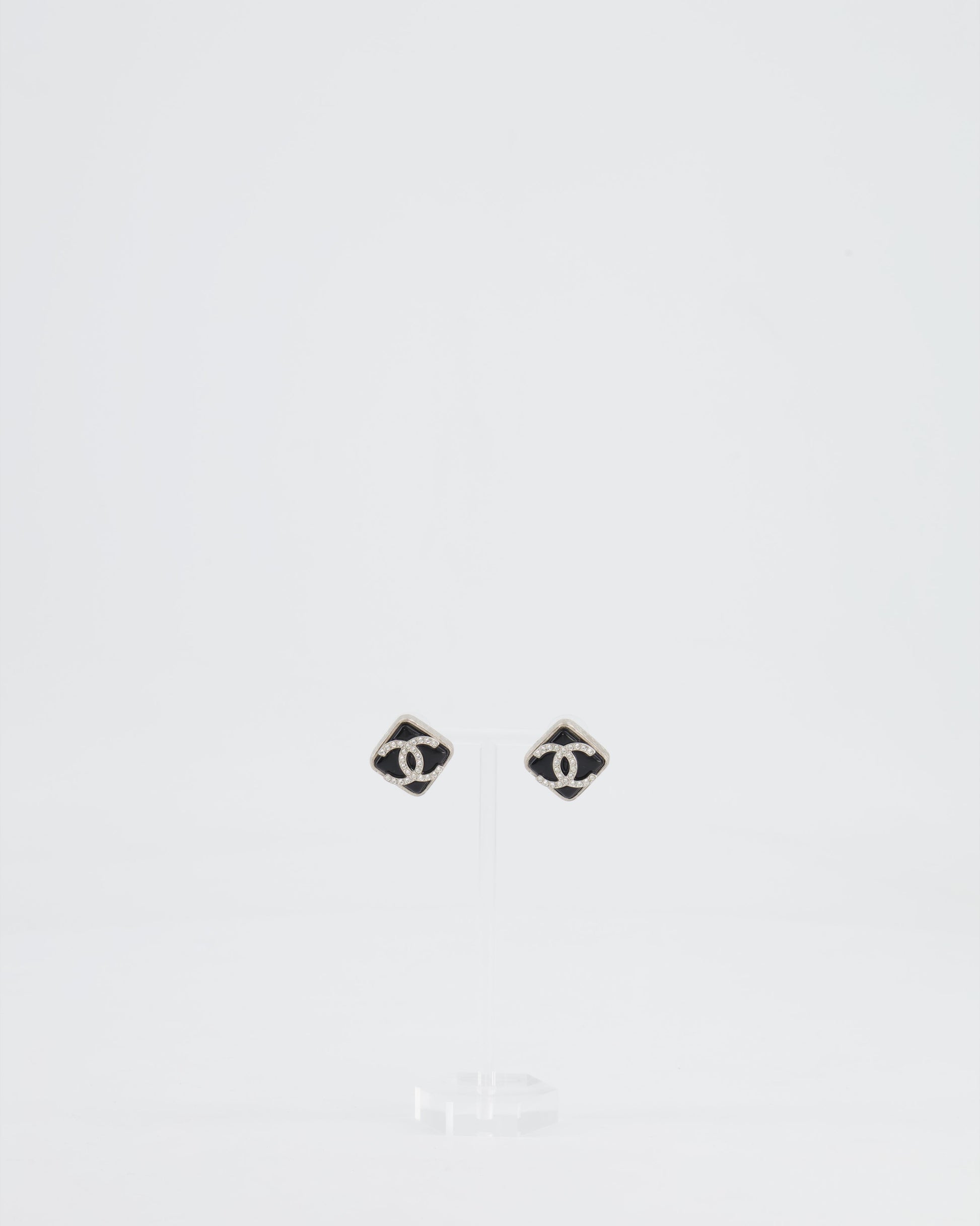 Chanel Black, Crystal Embellished Diamond-Shaped CC Earrings