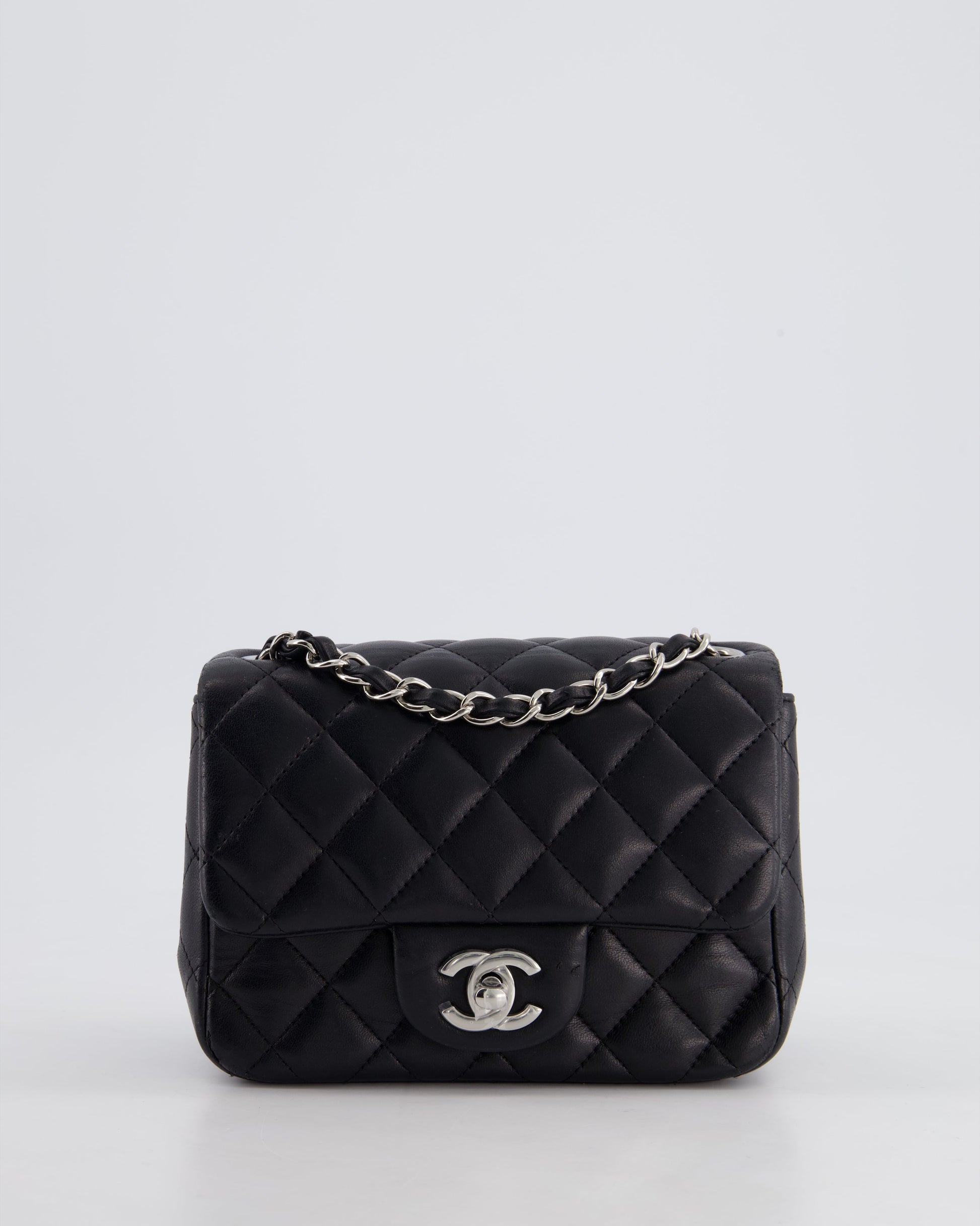 *HOT* Chanel Black Mini Square Flap Bag in Lambskin with Silver Hardware