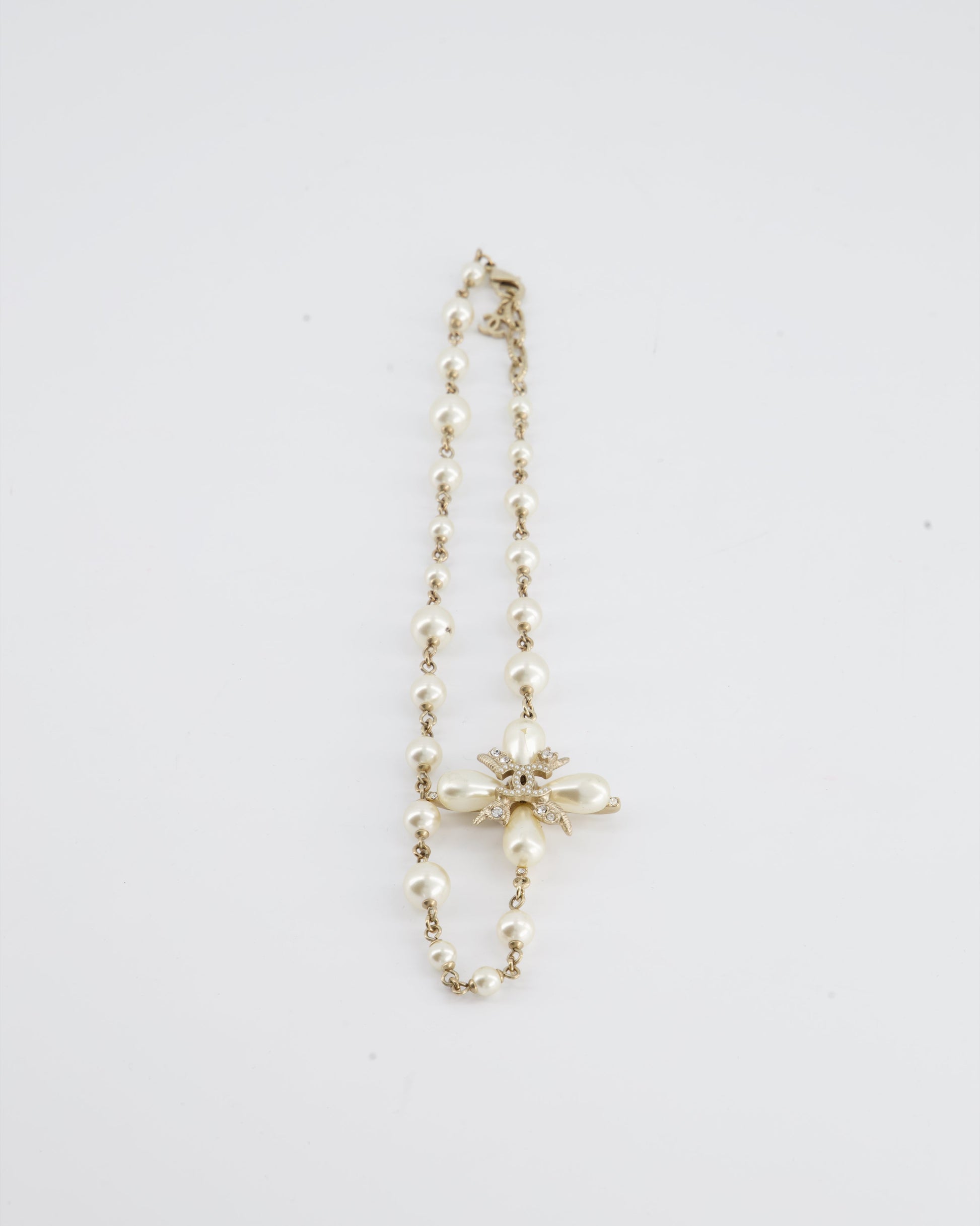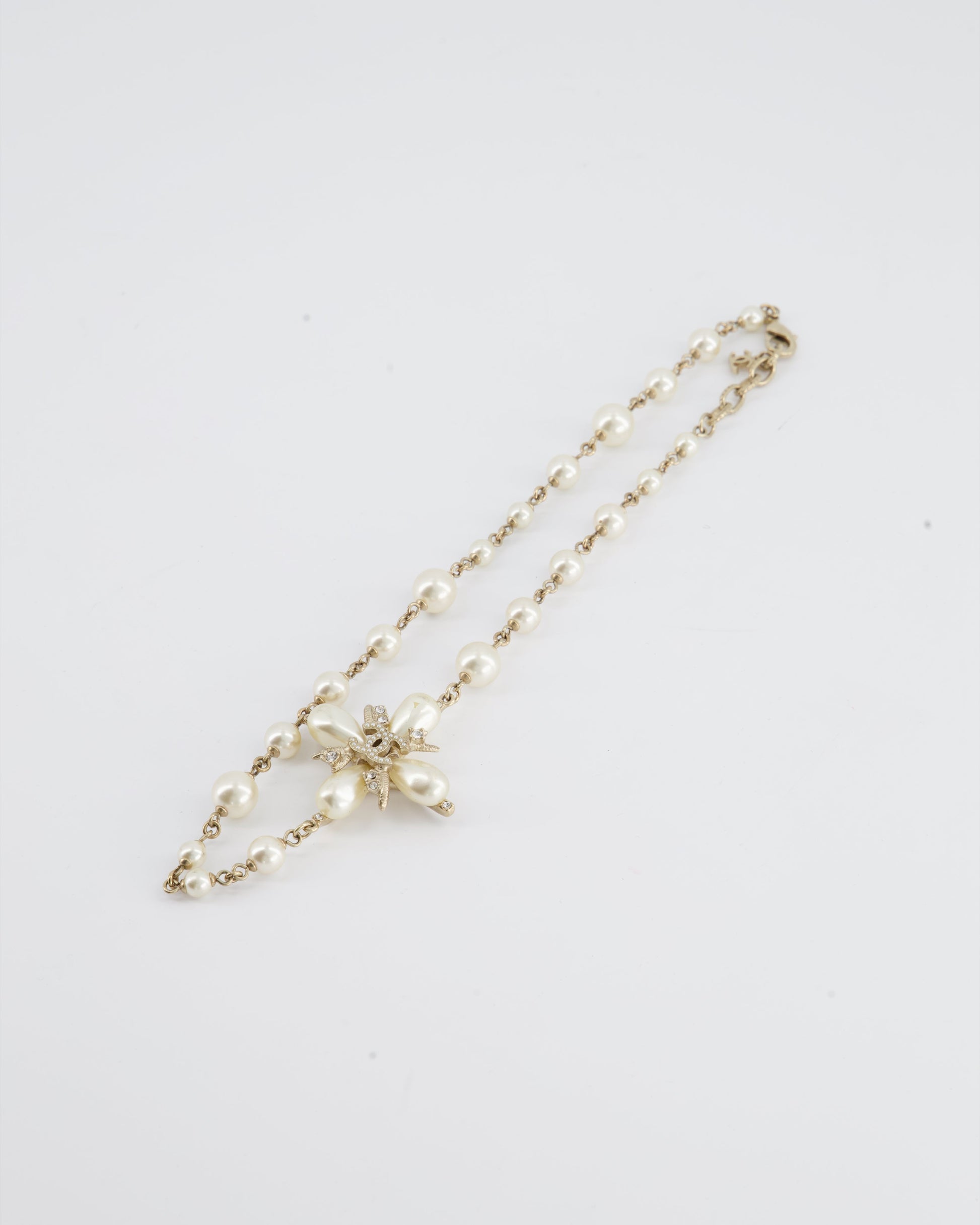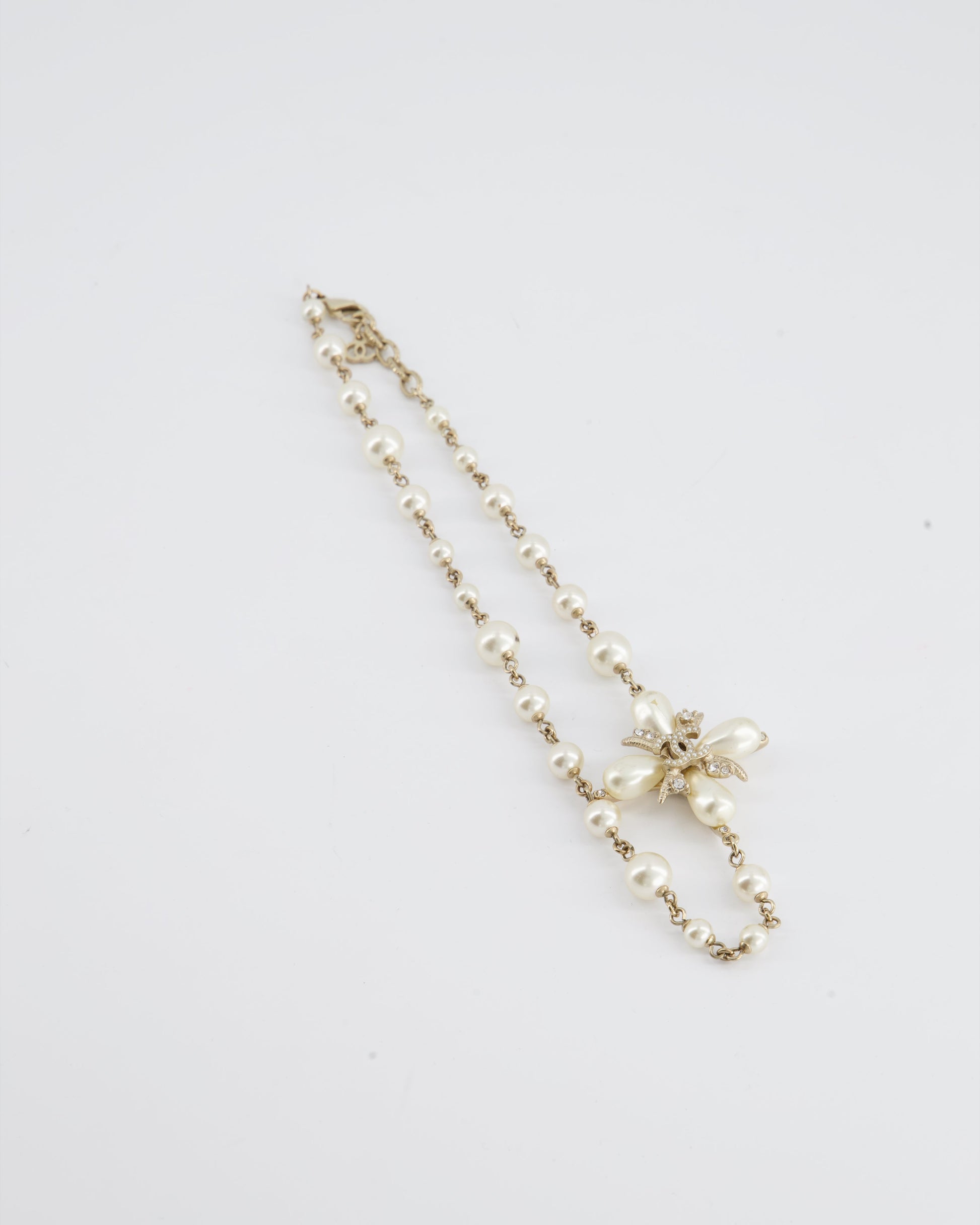 *HOT* Chanel Gold CC Necklace with White Pearl and Crystal Detailing