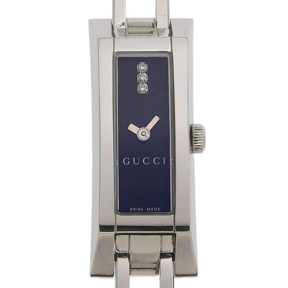 GUCCI Watches Quartz 110 Stainless Steel Silver 3P diamond black dial Women Used