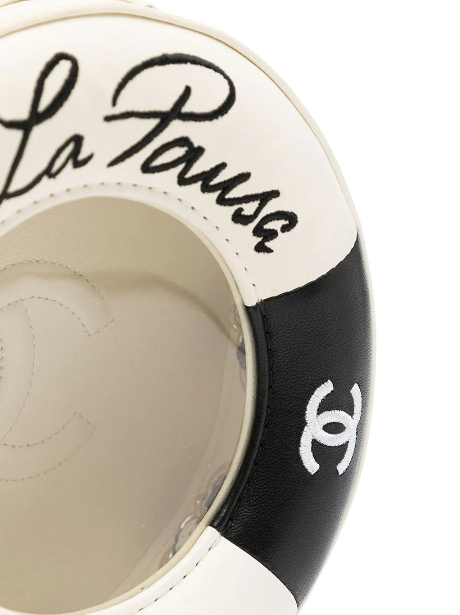 Part of the 2019 Chanel Cruise "La Pausa" Collection, this nautical themed "La Pausa" Cruise 2019 Shoulder Bags is also nicknamed as the ""Lifesaver"" bag and was released in only very limited quantities. Made of smooth lambskin, this bag features a see-through middle to reveal an oversized logo on its interior. The bag also features a double zip closure for extra convenience and storage of important essentials.