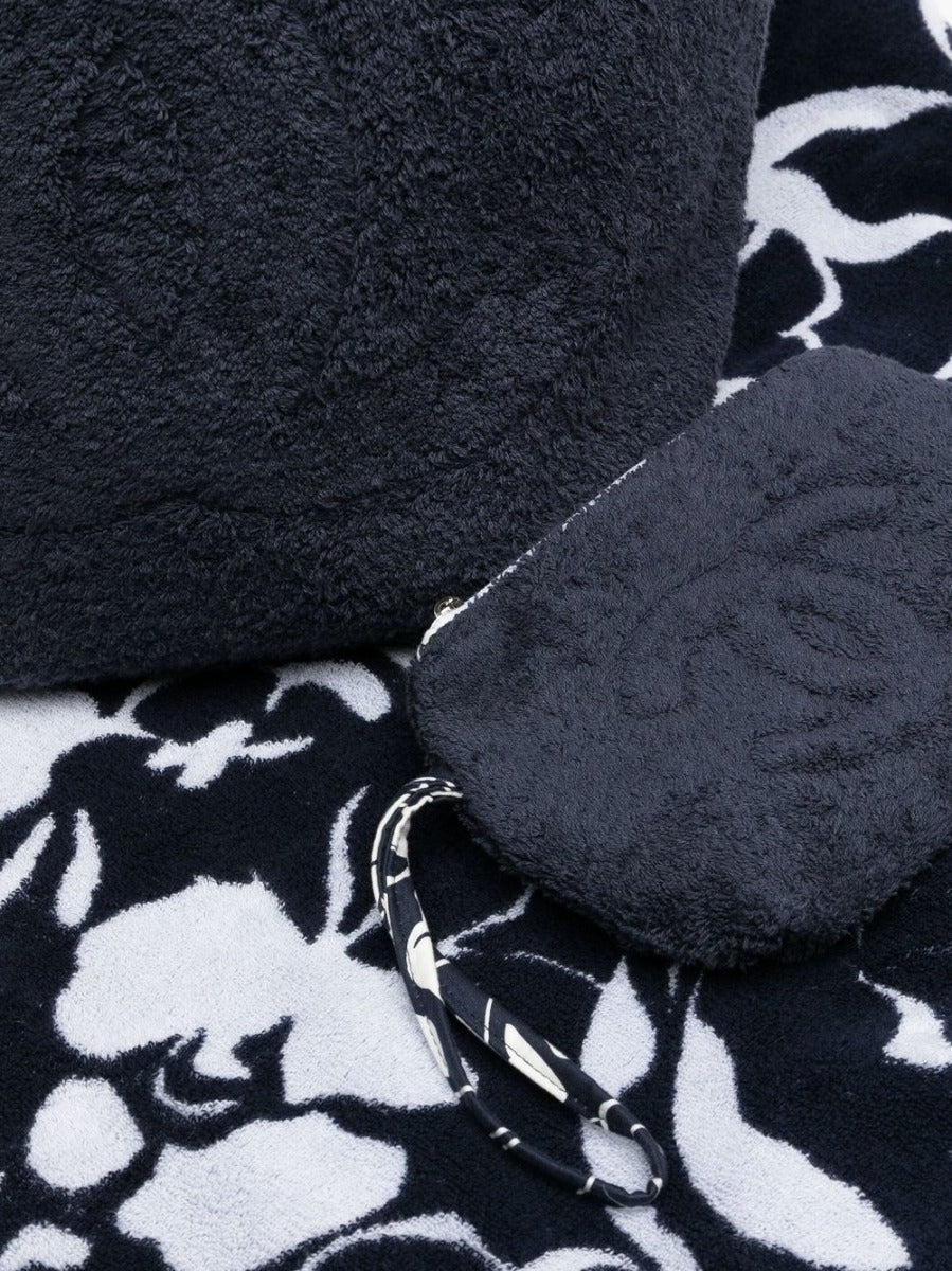 Who knew Chanel and the beach could blend together so well? This terry cloth beach tote bag comes with a small pouch and matching beach towel, perfect for a full day of lounging in the beach chair. The interlocking CC can be seen at the front of both the tote back and matching pouch.