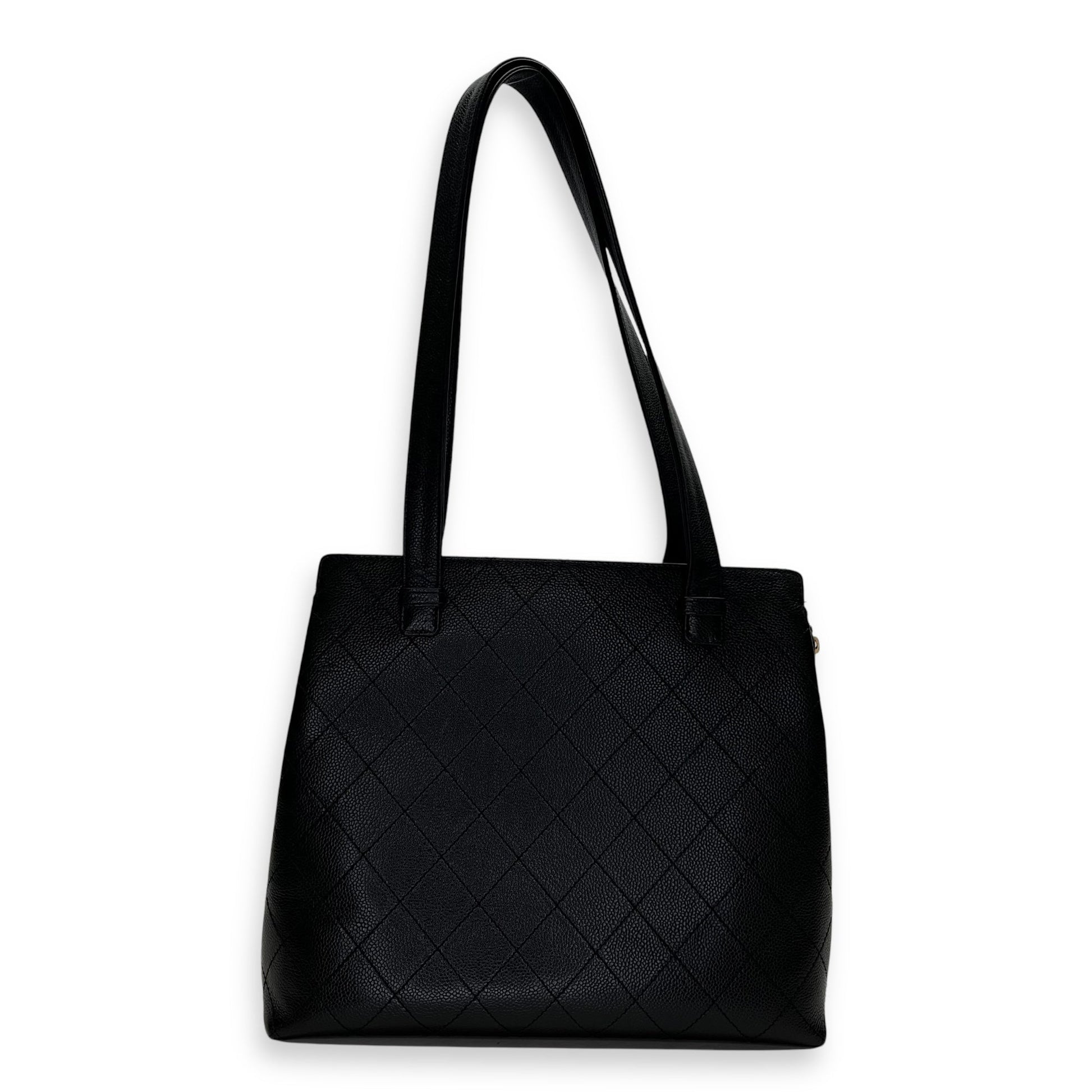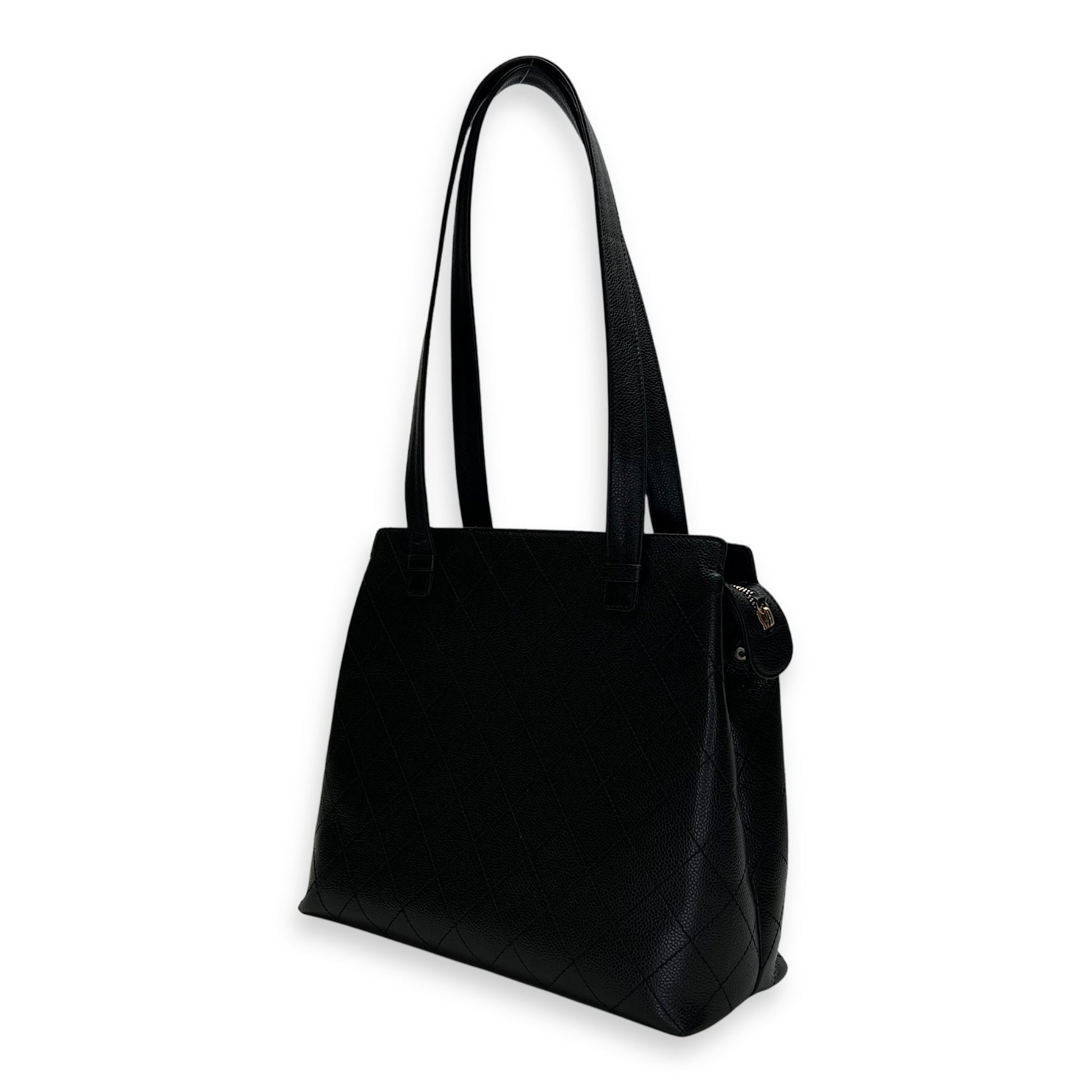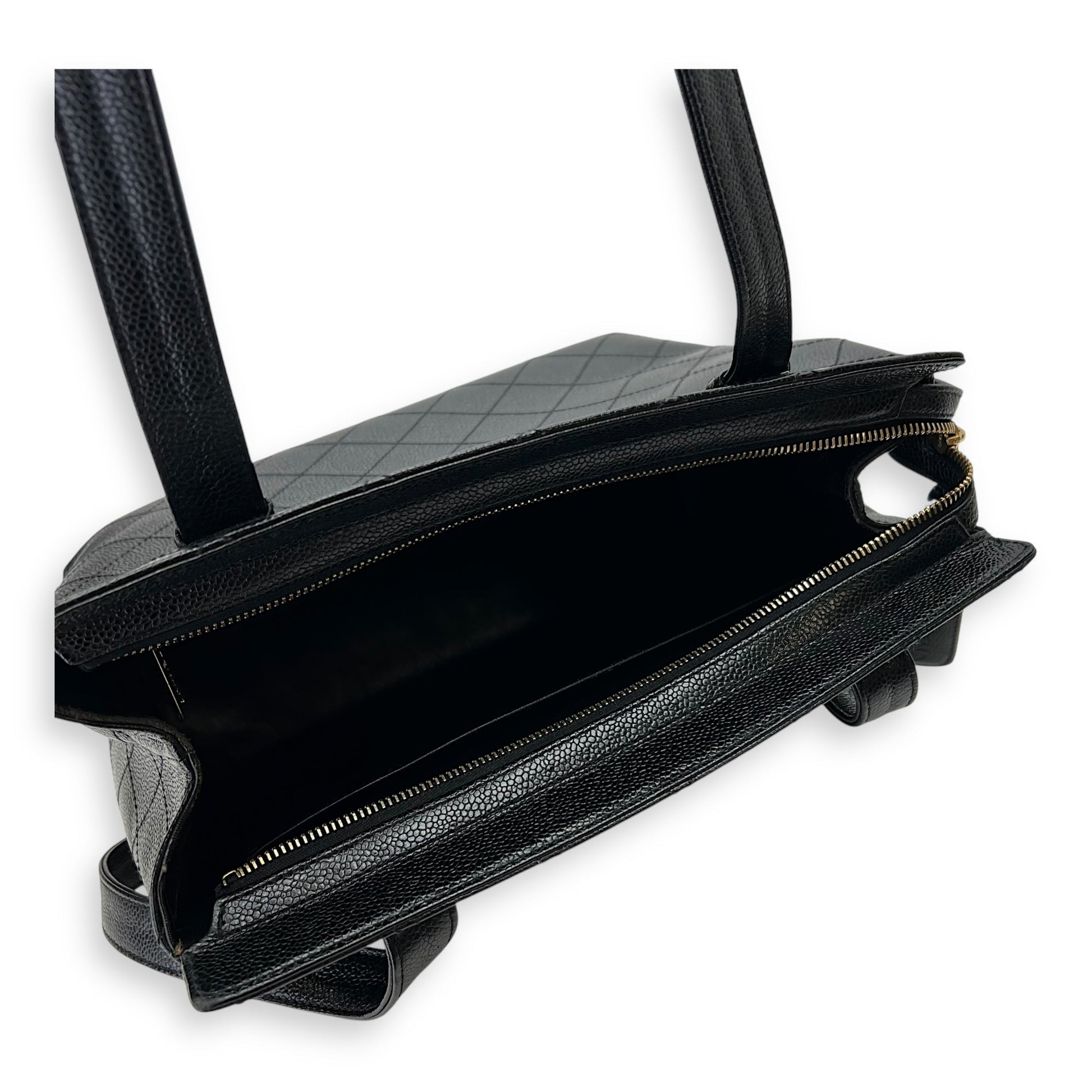 Logo Black Tote Bag in Caviar Leather, Gold hardware