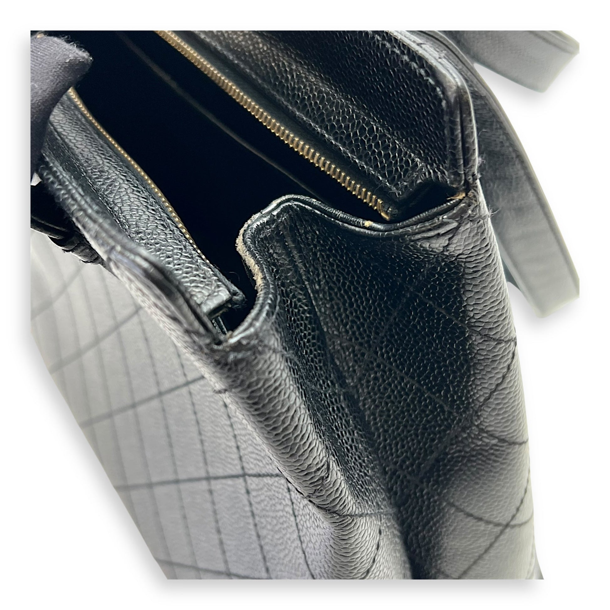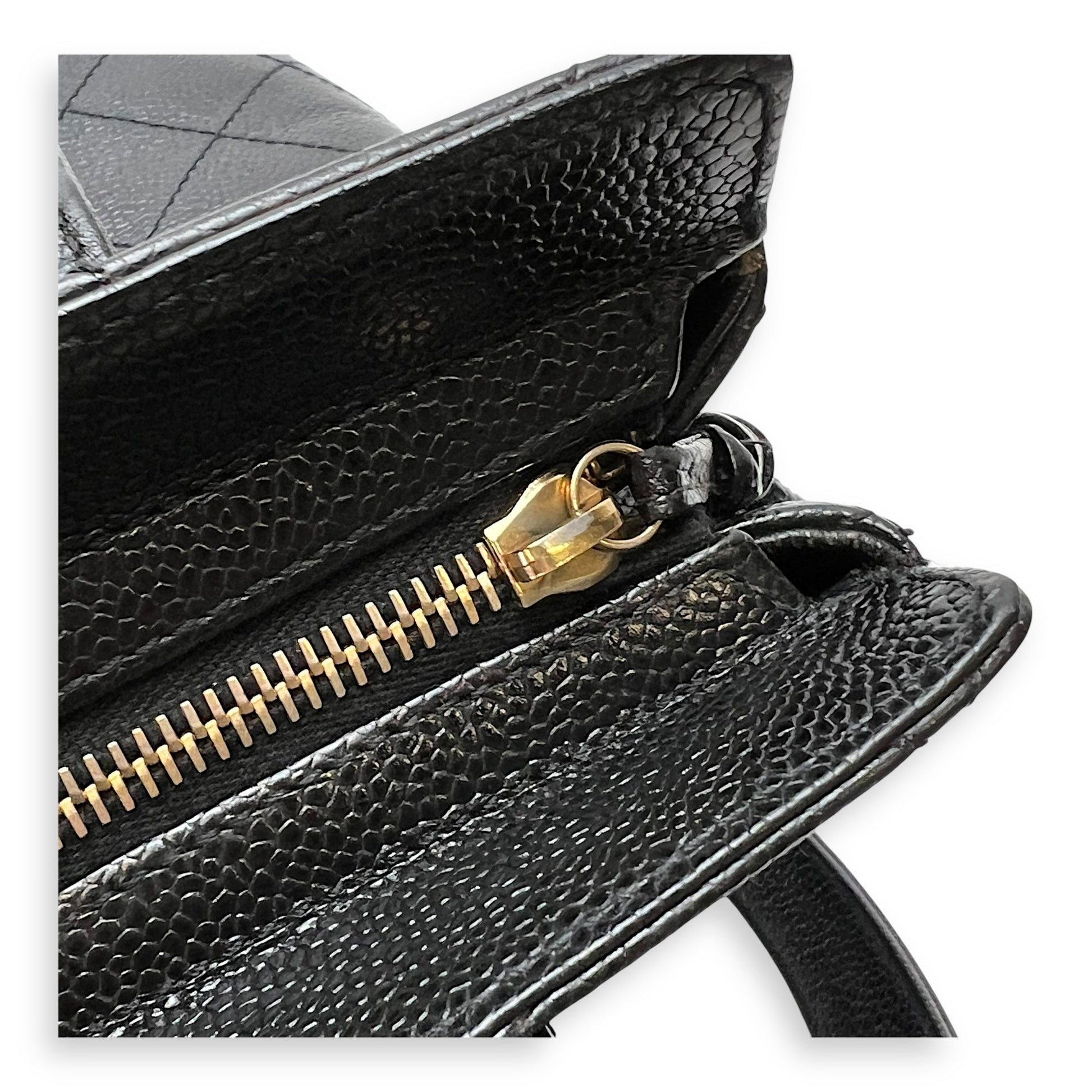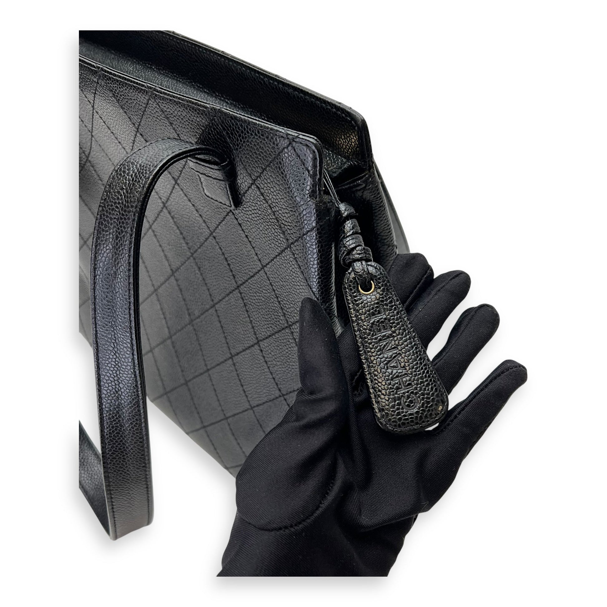 Logo Black Tote Bag in Caviar Leather, Gold hardware