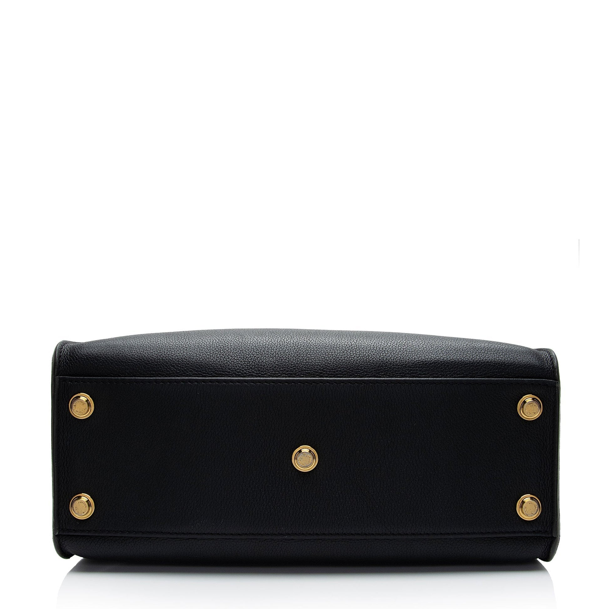 Condition Notes: Light scuffs and wear to exterior bottom corners. Creasing throughout exterior leather. Light scuffs and marks throughout exterior. Minor warping and creasing to handles. Visible curling and creasing to exterior top corner tabs. Light creasing throughout shoulder strap. Surface scratches to hardware. Minor marks an darkening throughout interior.