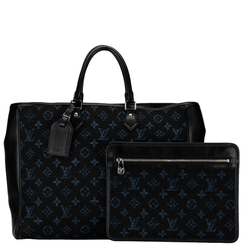 Louis Vuitton Monogram Gran Sack Handbag Tote Bag M55203 Blue Black Canvas LOUIS VUITTON