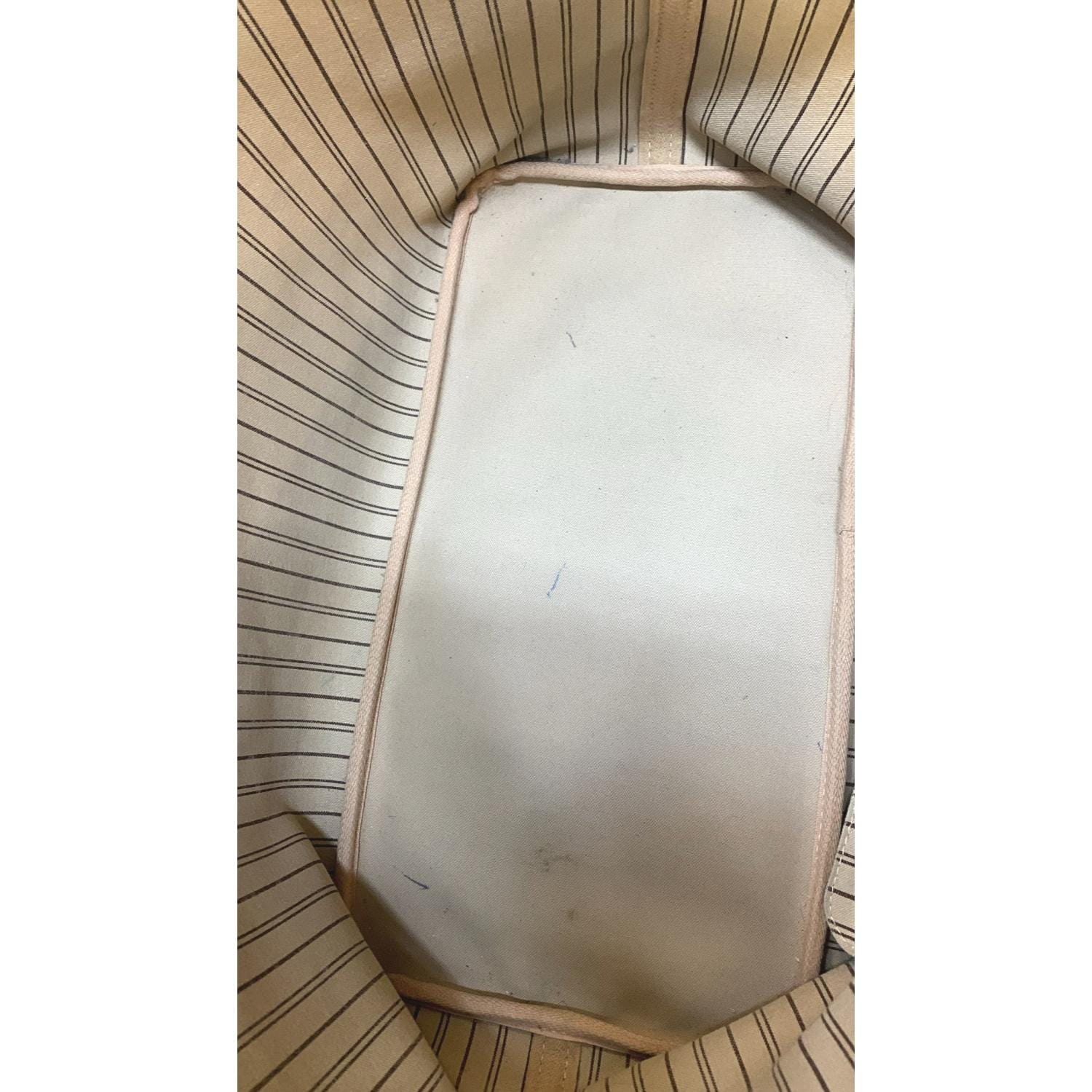Good - The item shows signs of use including rubbed corners and darkened leather with stains and wrinkles. The stain marks on the canvas and the tanned handles. There are also some interior stains and the gold-colored hardware shows signs of use. Notably, there's no unpleasant odor present in the item.