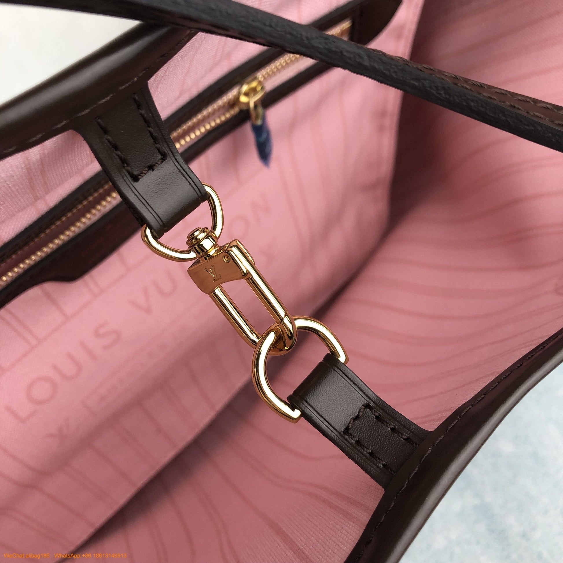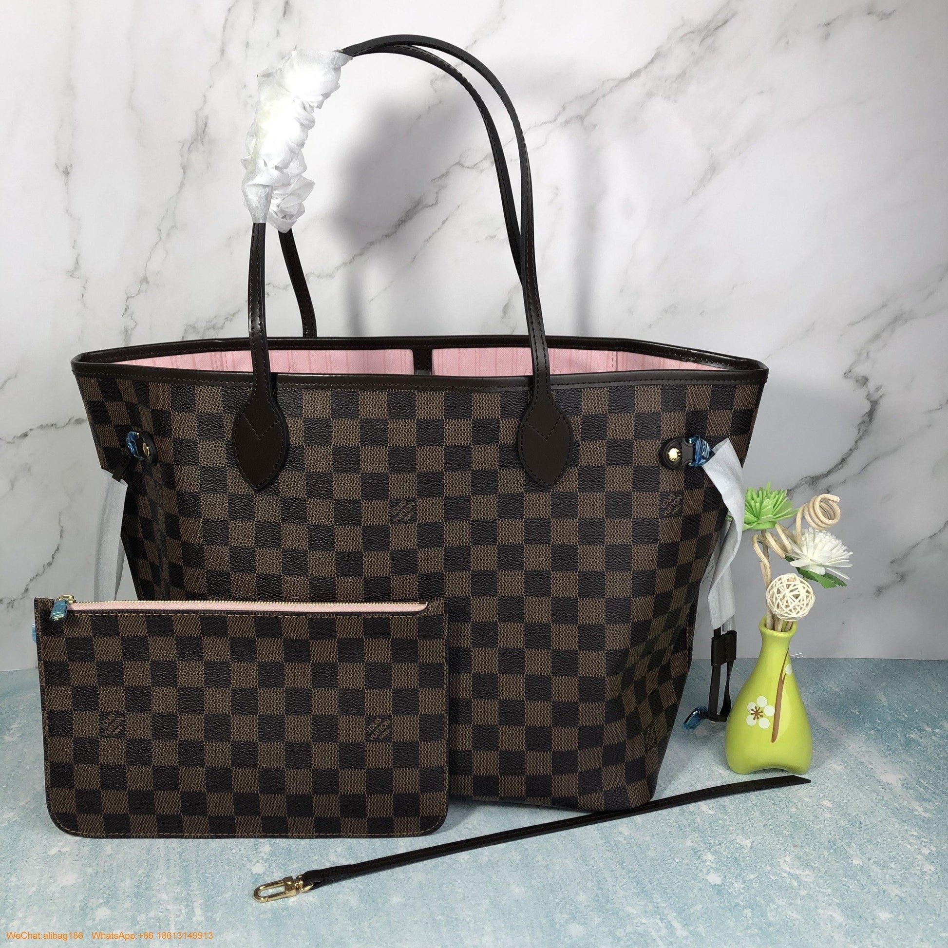The Neverfull MM tote unites timeless design with heritage details. Elegant in Damier Ebene canvas with natural cowhide trim, it is roomy but not bulky, with side laces that cinch for a sleek allure or loosen for a casual look. Slim, comfortable handles slip easily over the shoulder or arm. Lined in colorful textile, it features a removable pouch which can be used as a clutch or an extra pocket.