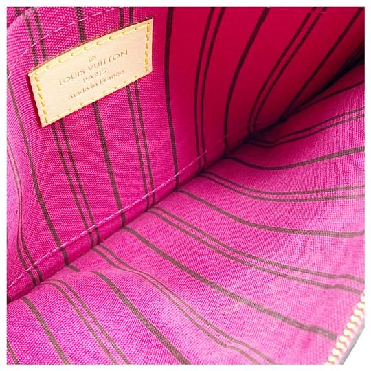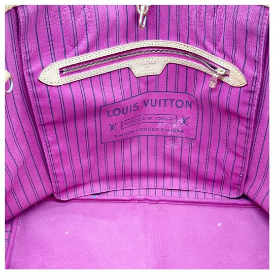 We this is an LOUIS VUITTON Monogram Neo Neverfull GM Pivoine or 100% of your . This stylish, large tote is crafted of classic Louis Vuitton monogram on toile canvas. This bag features vachetta cowhide leather strap handles, trim and side cinch cords with complimentary polished brass hardware. The wide top is open to a dark pink striped fabric interior with a zipper pocket and a matching pochette. This popular tote is ideal for all of your everyday essentials with the luxury and style, from Louis Vuitton!