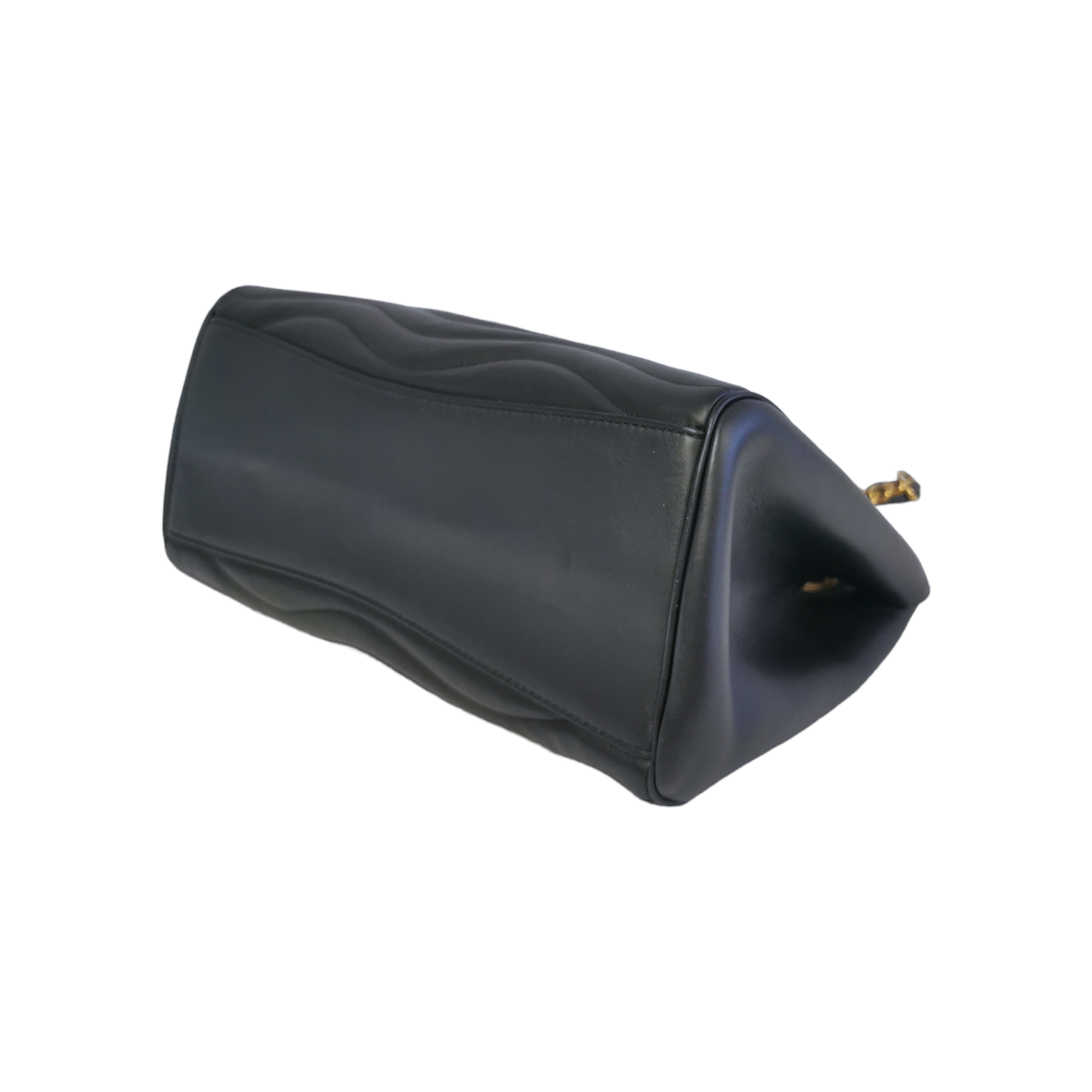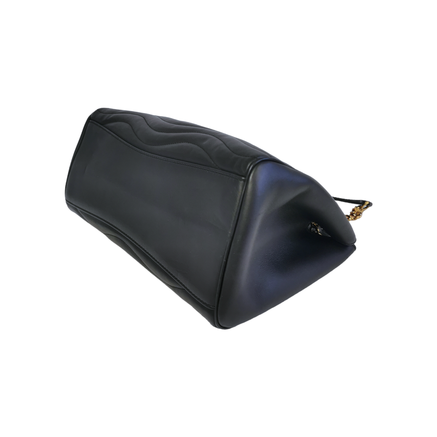Diese elegante Louis Vuitton New Wave Chain Tite wurde aus gestepptem Leder gefertigt. Die Tasche besitzt goldene Details, einen goldenen Kettenriemen, eine Klappe mit Magnetverschluss und einem LV Monogram. Die Tasche wird am besten locker über der Schulter getragen.