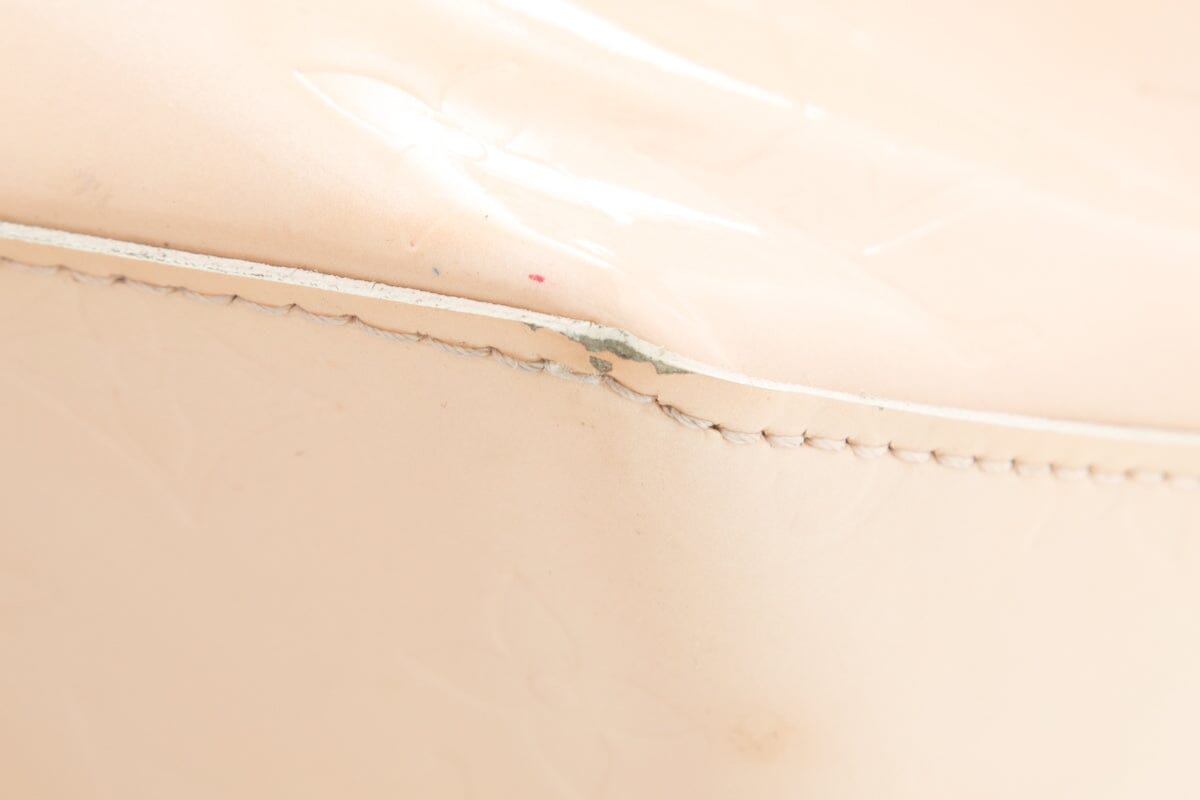 Louis Vuitton Nude Patent "Vernis" Mini Tote. This item is in good condition; some wear and color transfer on exterior and marks on lining.