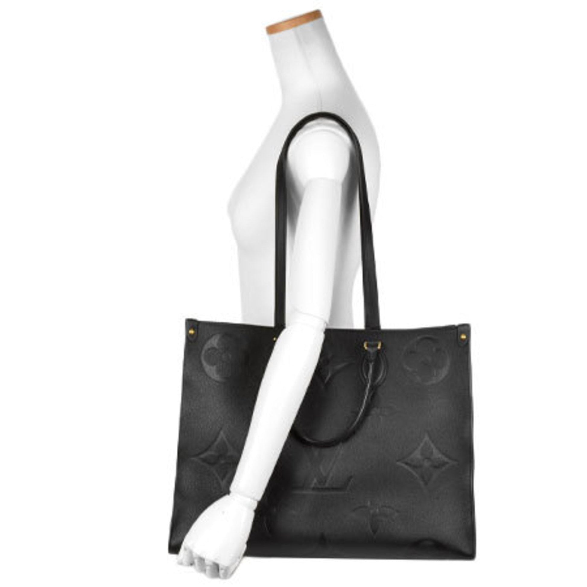 Louis Vuitton ON THE GO GM Tote Bag Shoulder Monogram Implant Leather Black Handbag M44925