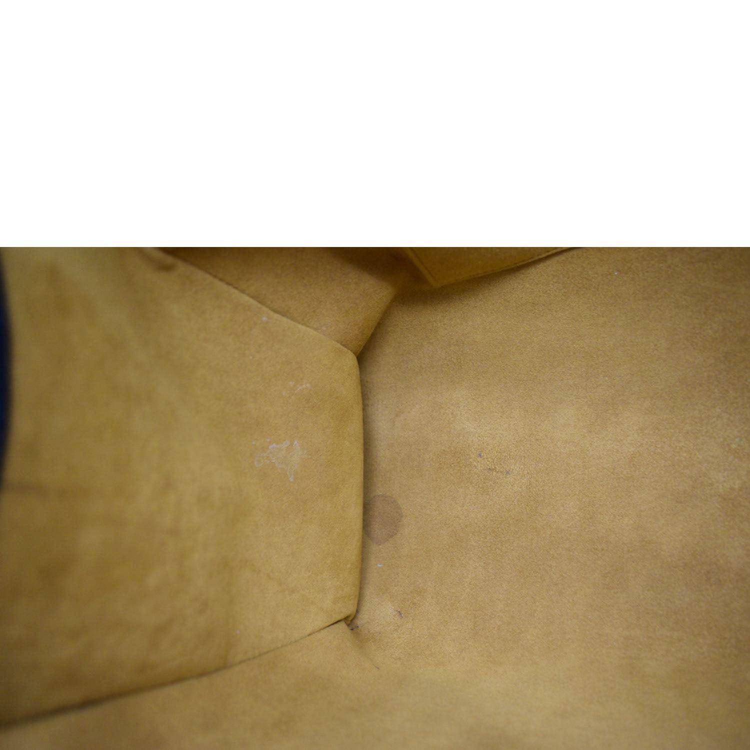 Good - The Item shows signs of use, including rubbed corners and inside stains. The bag is out of shape. Its gold-colored hardware is in good condition. The item is without any unpleasant smell.