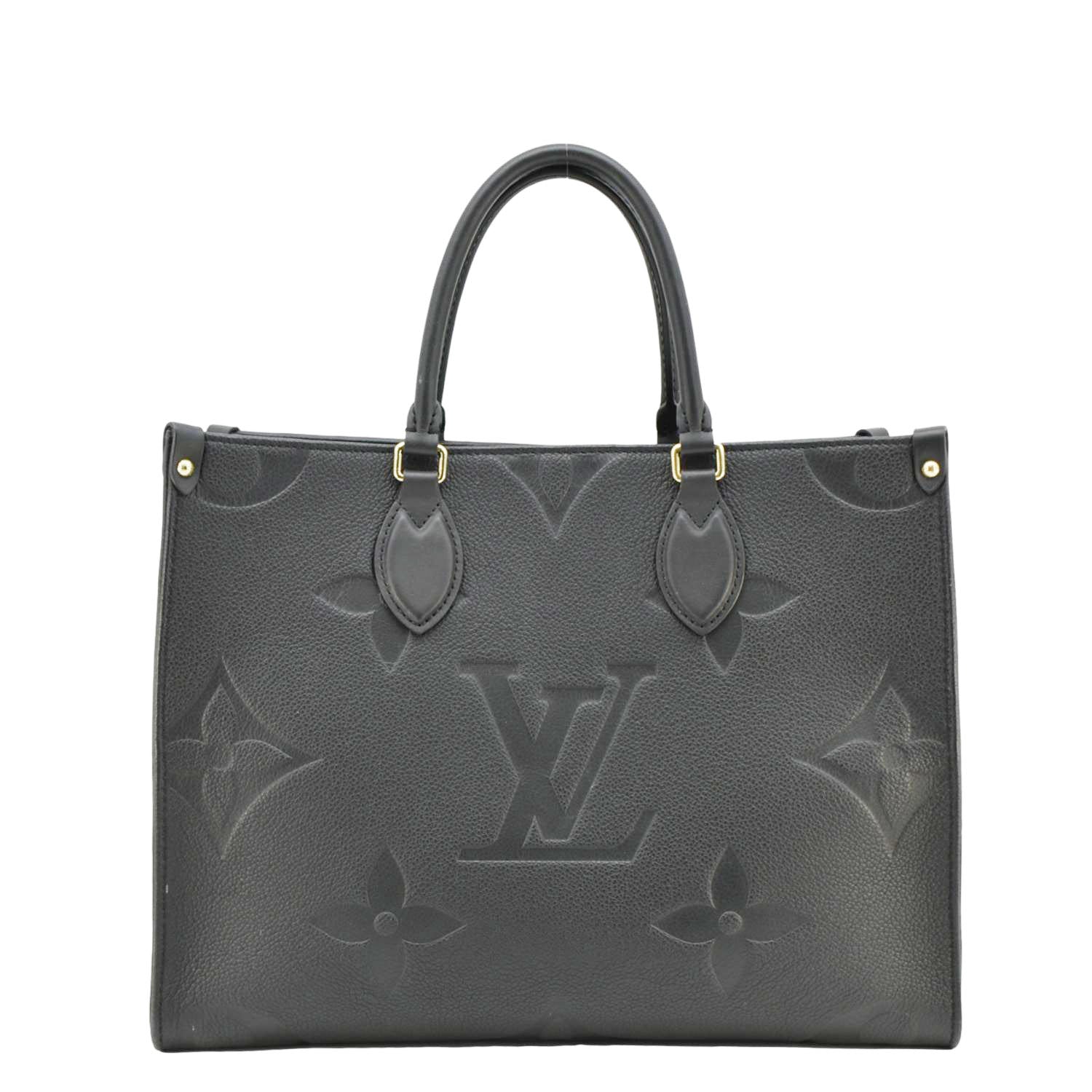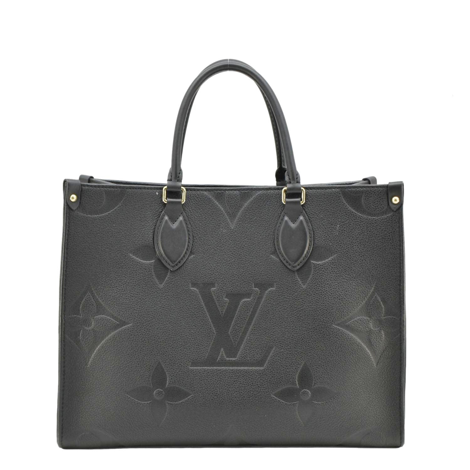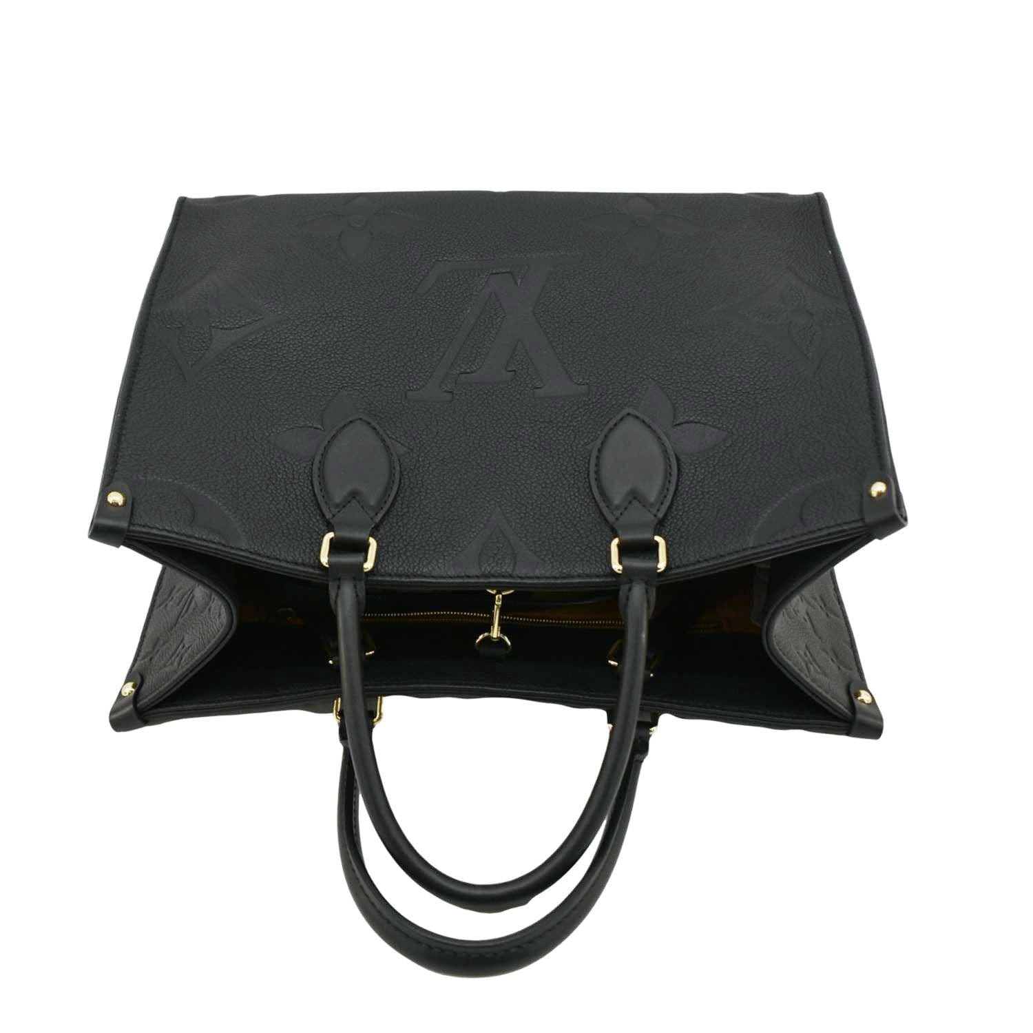 LV Onthego MM Giant Monogram Empreinte Leather Black Tote Bag