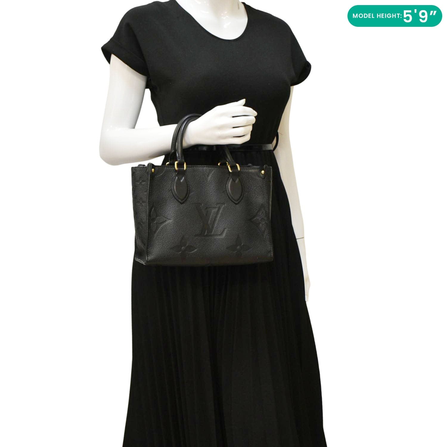 LOUIS VUITTON Onthego PM Monogram Empreinte Leather Tote Shoulder Bag Black