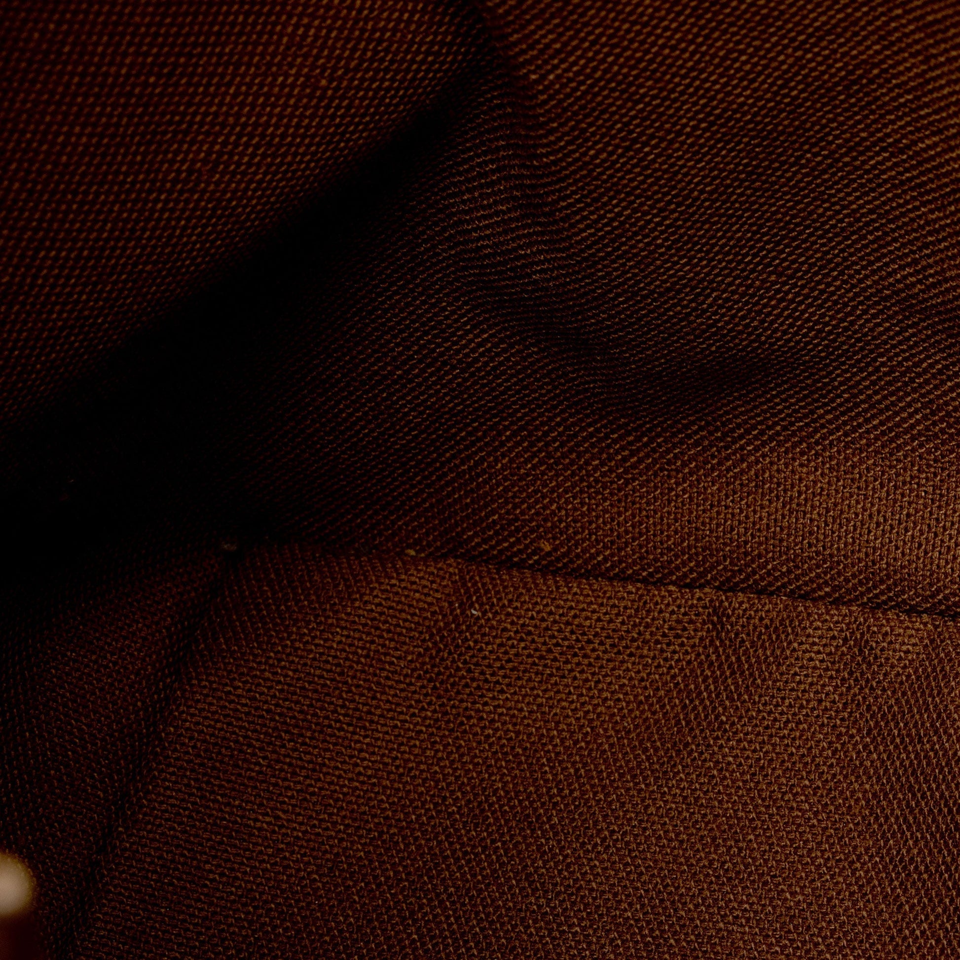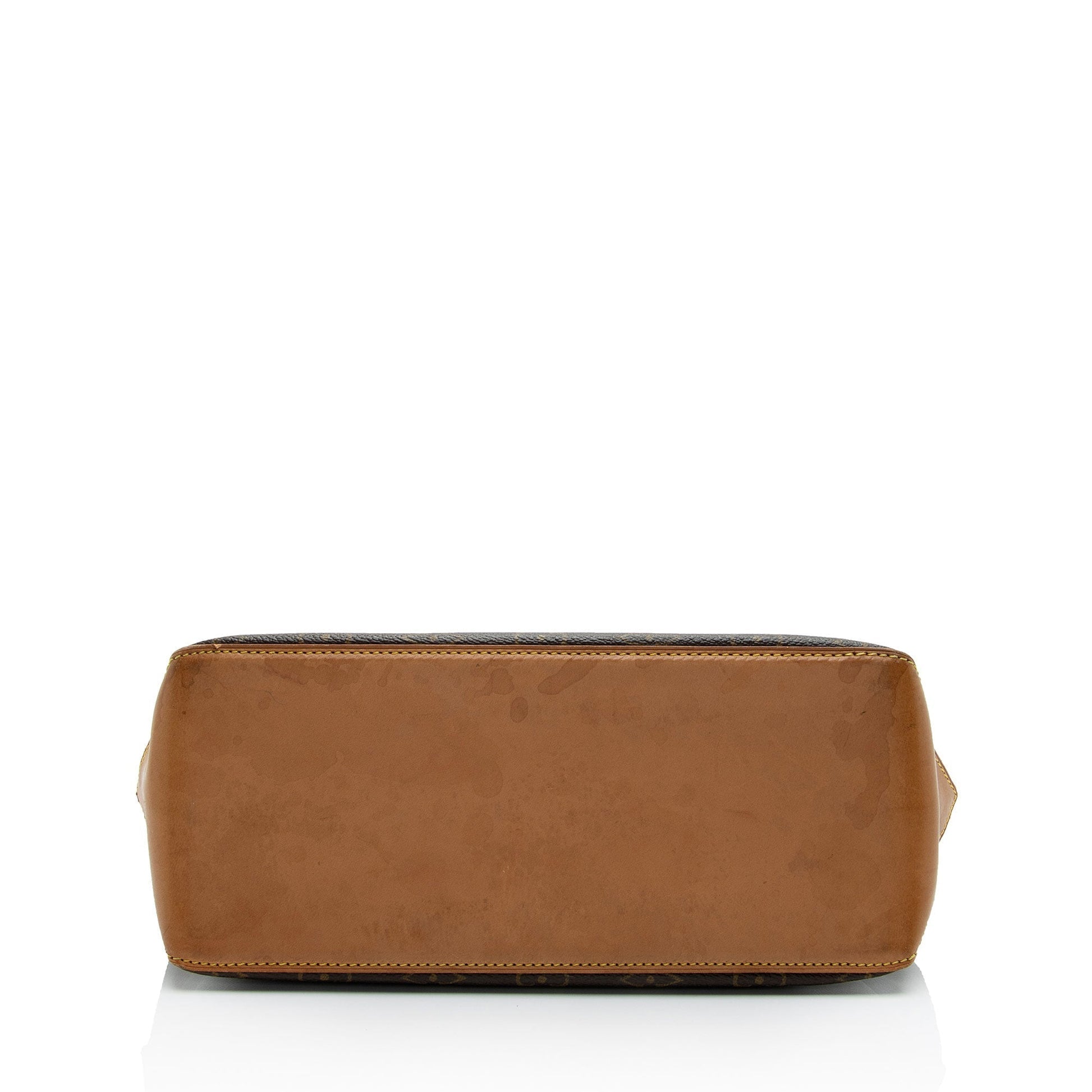 Condition Notes: Visible marks and light darkening throughout exterior leather base. Moderate darkening and marks throughout handles. Wear throughout handle casing. Scuffs and wear to exterior bottom corners. Light marks throughout exterior coated canvas. Surface scratches and light tarnishing to hardware. Light marks and wear throughout interior.