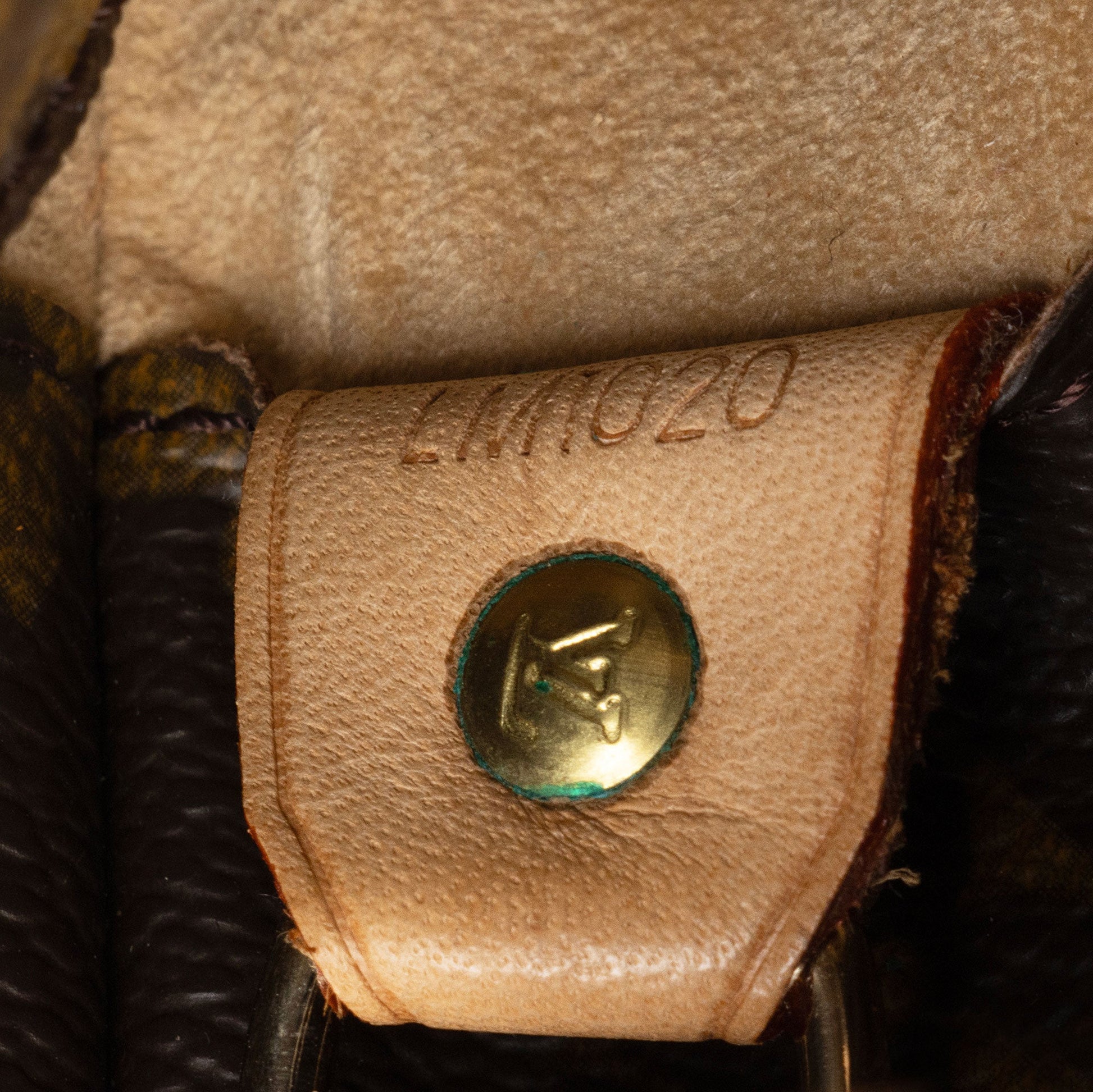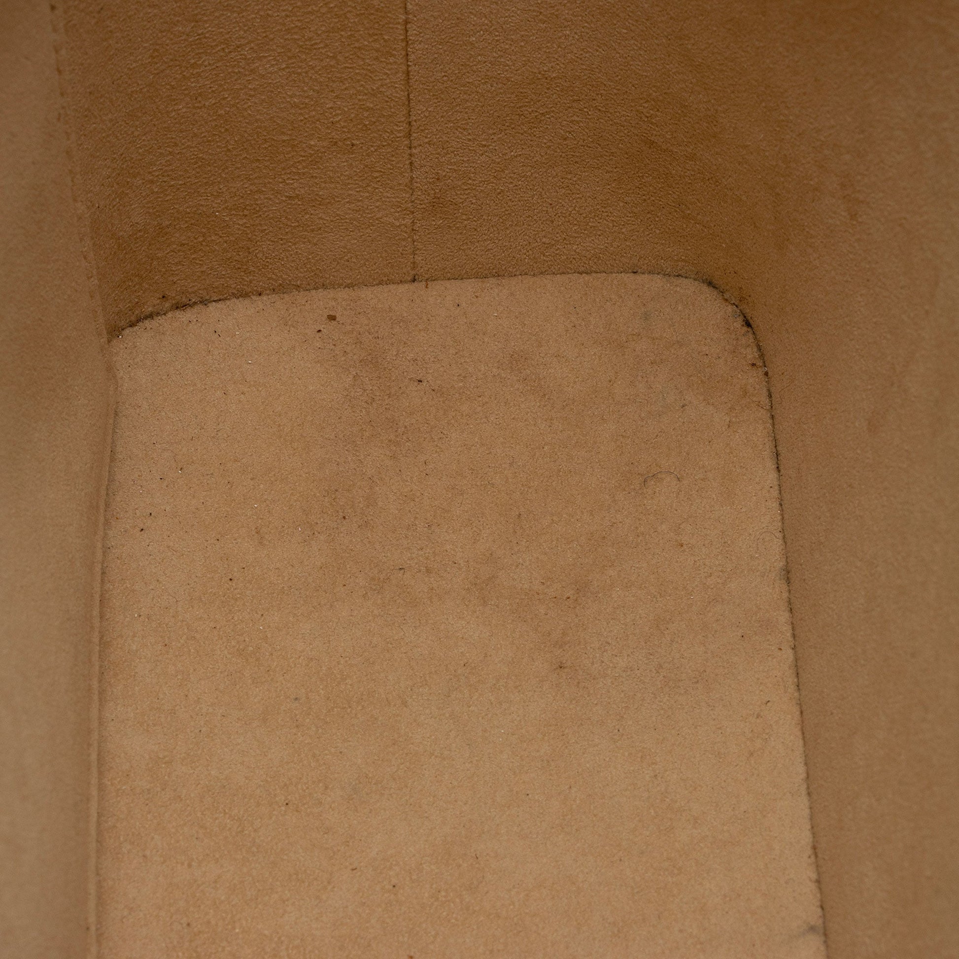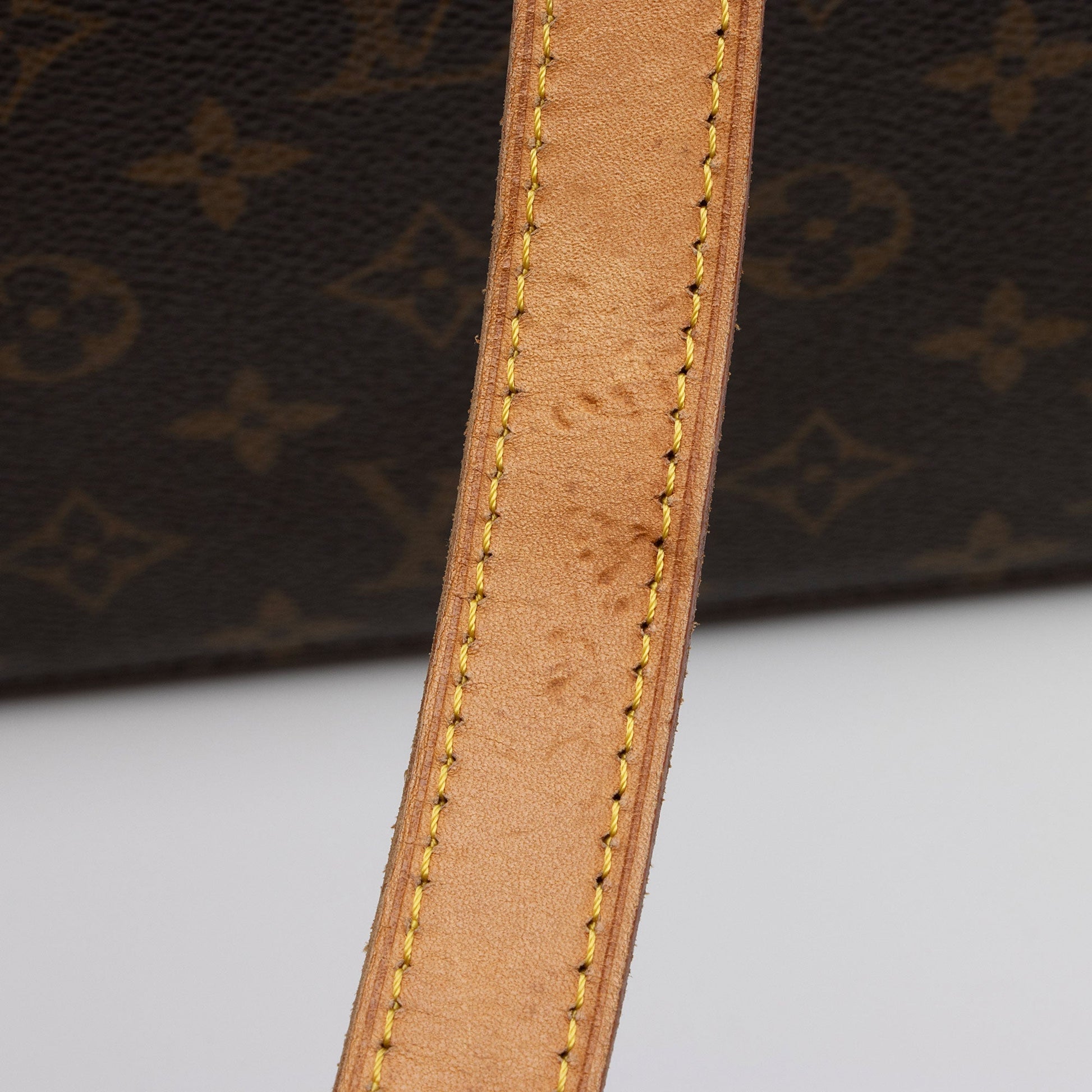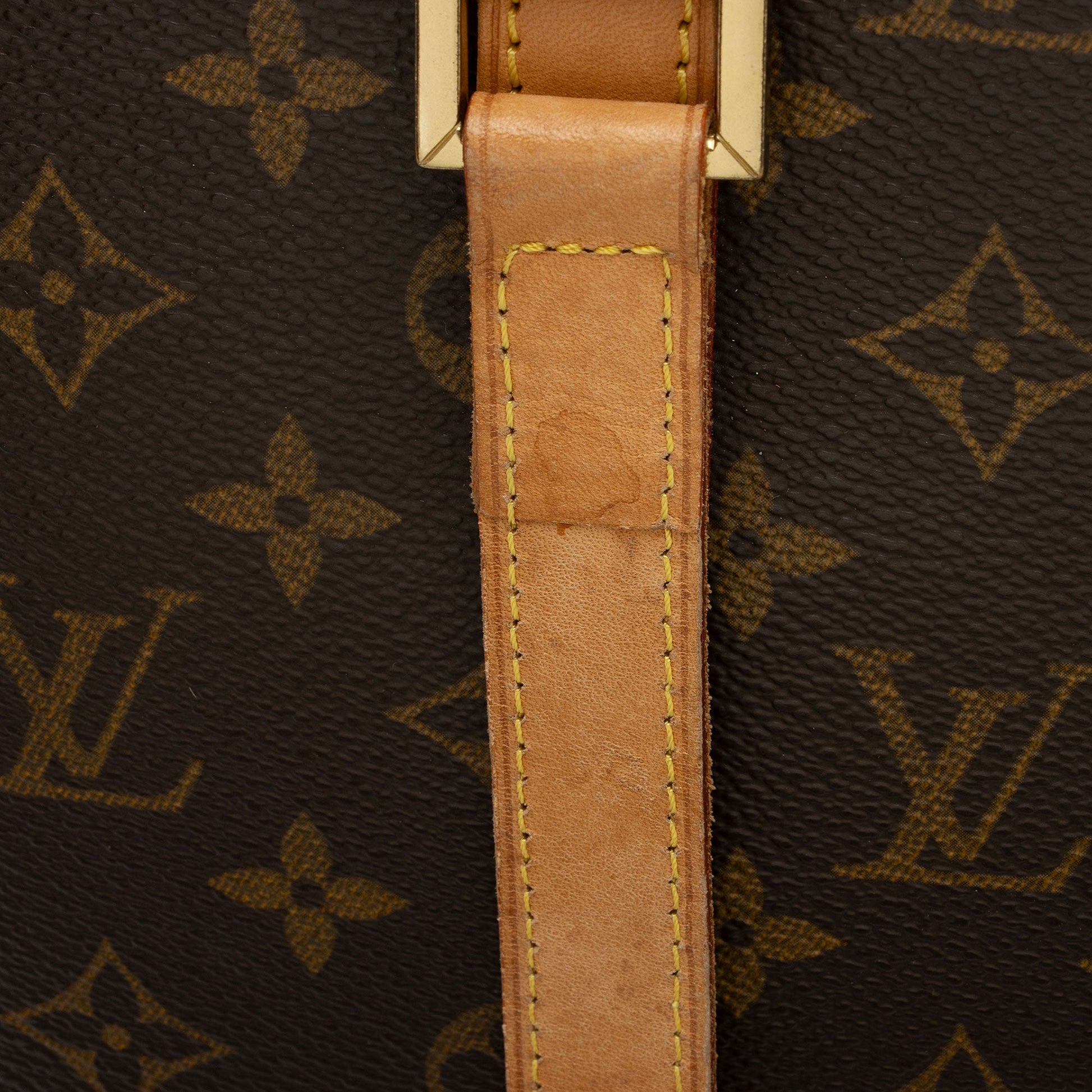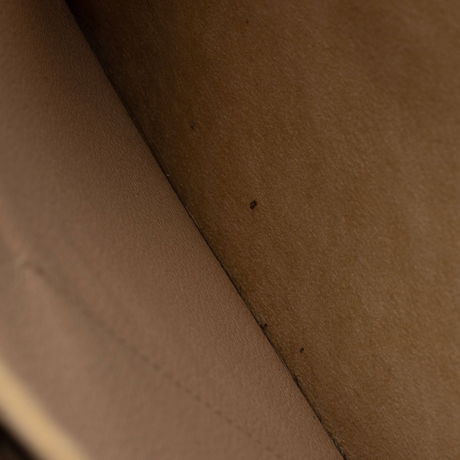 Condition Notes: Darkening and marks throughout shoulder straps. Visible darkening to tops of shoulder straps. Visible wear throughout handle casing. Light scuffs to exterior bottom corners. Surface scratches and light tarnishing to hardware. Light marks throughout interior. Light vintage odor.