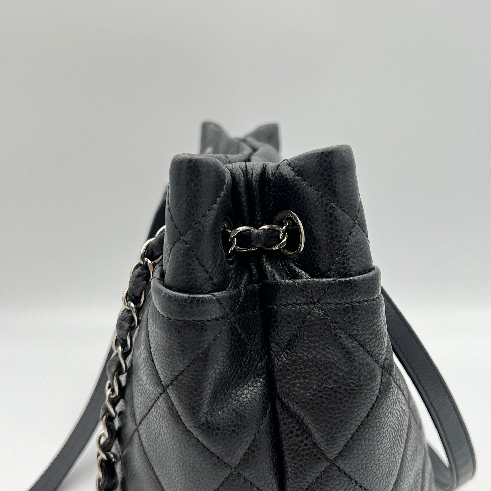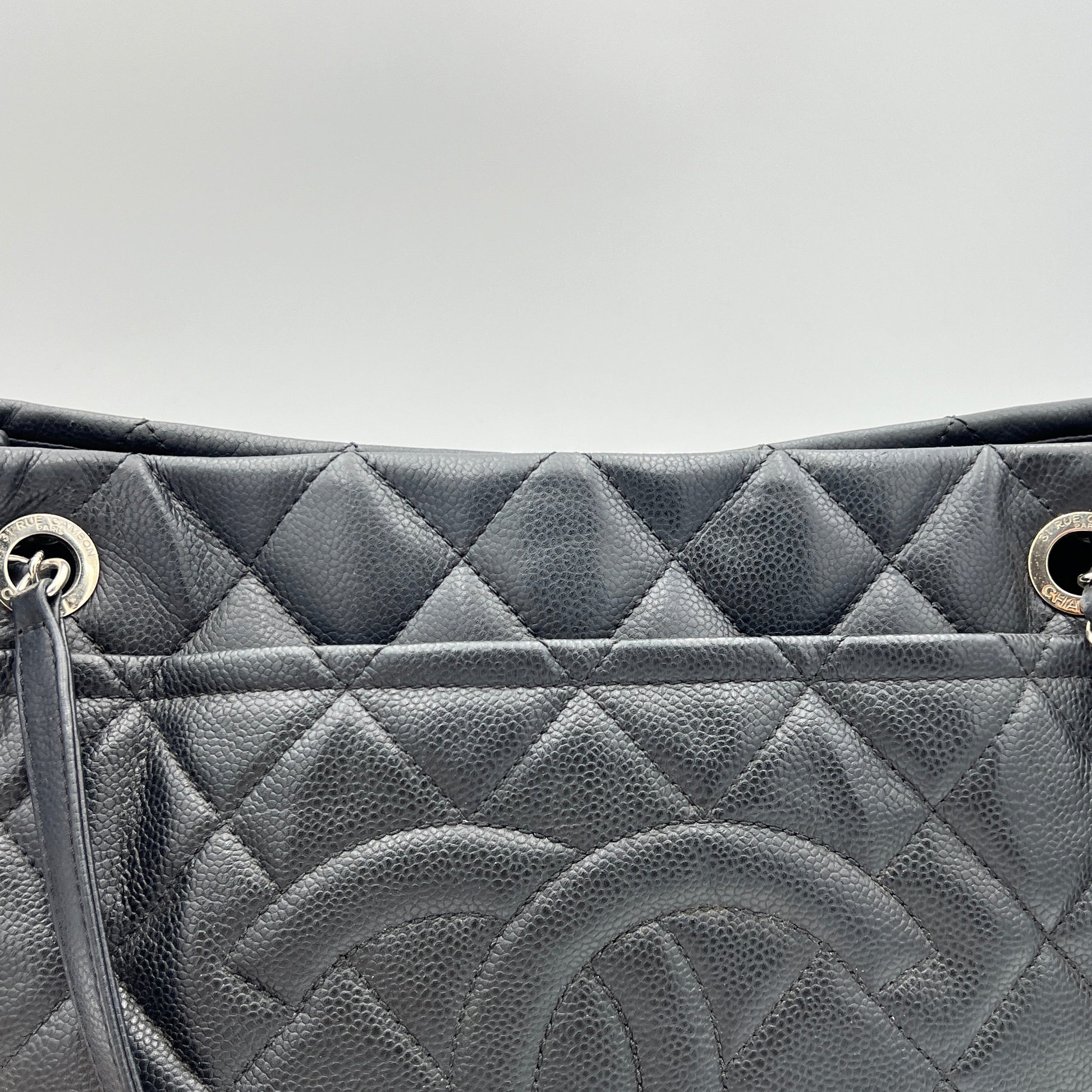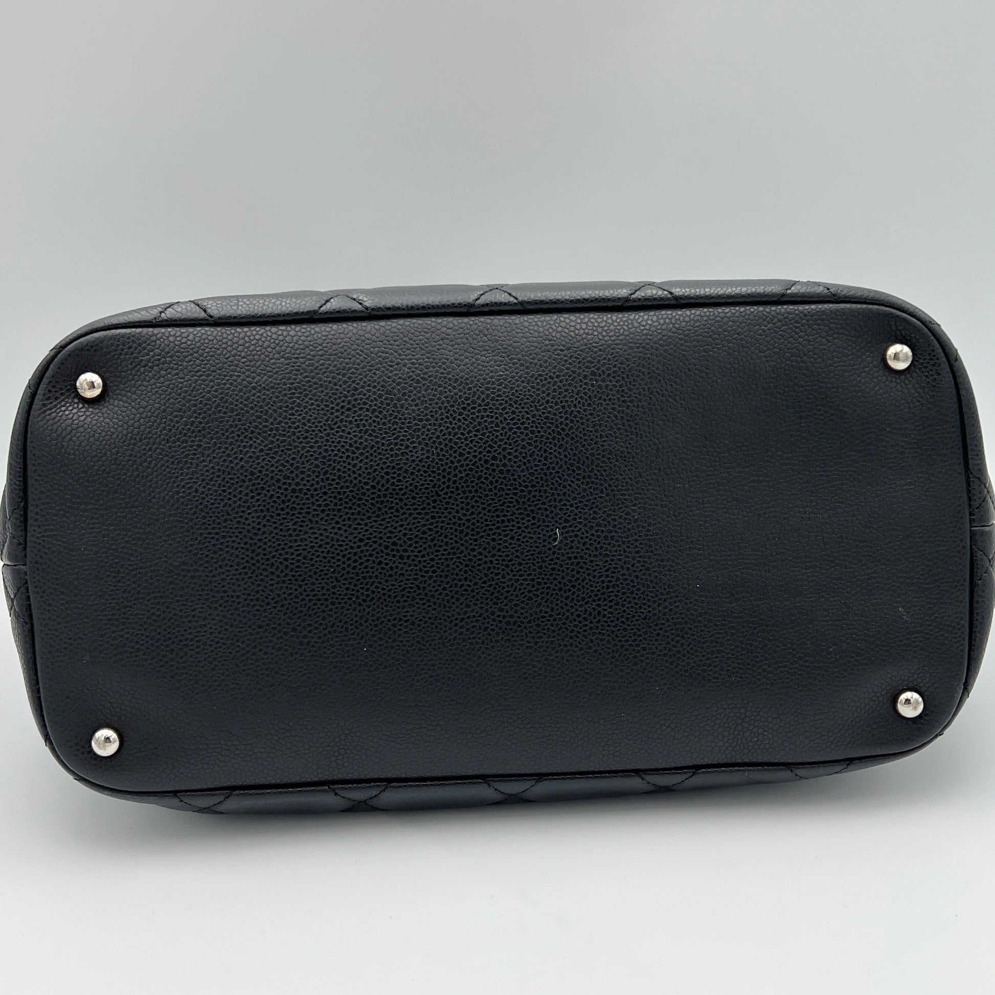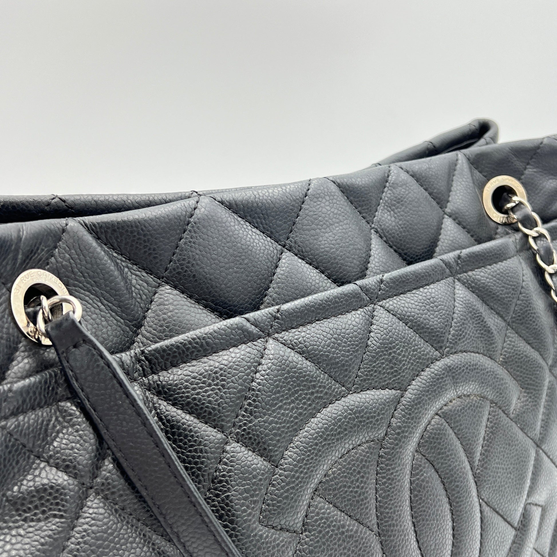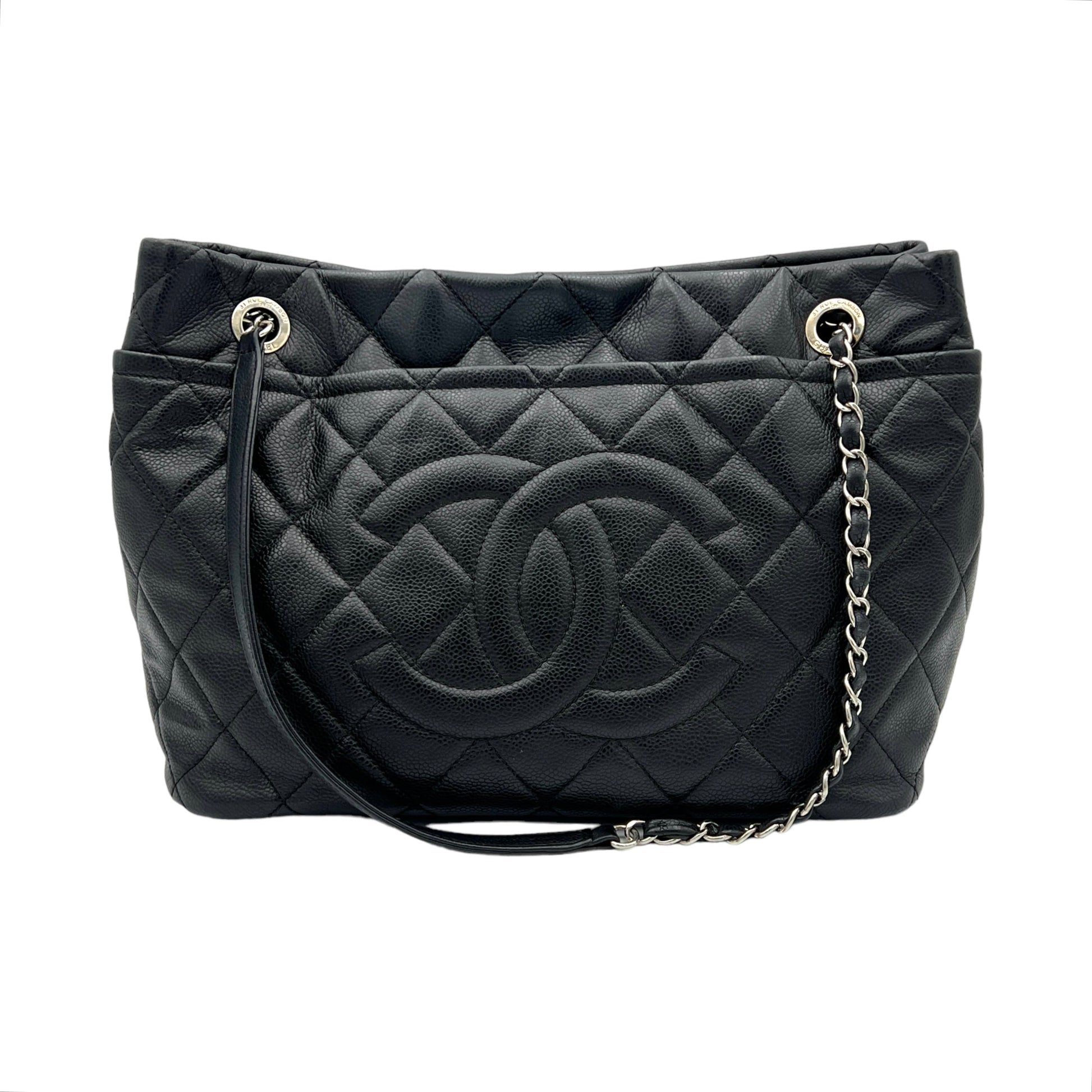 Matelasse Chain Black Tote Bag in Caviar Leather, Silver hardware