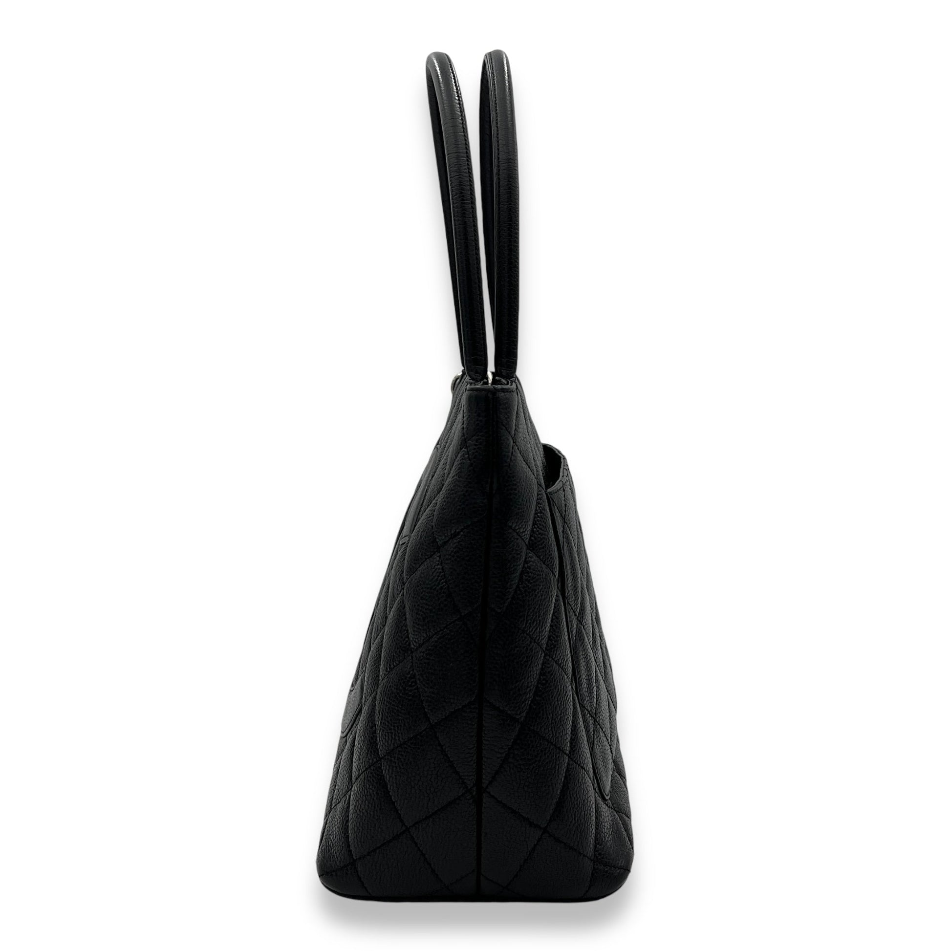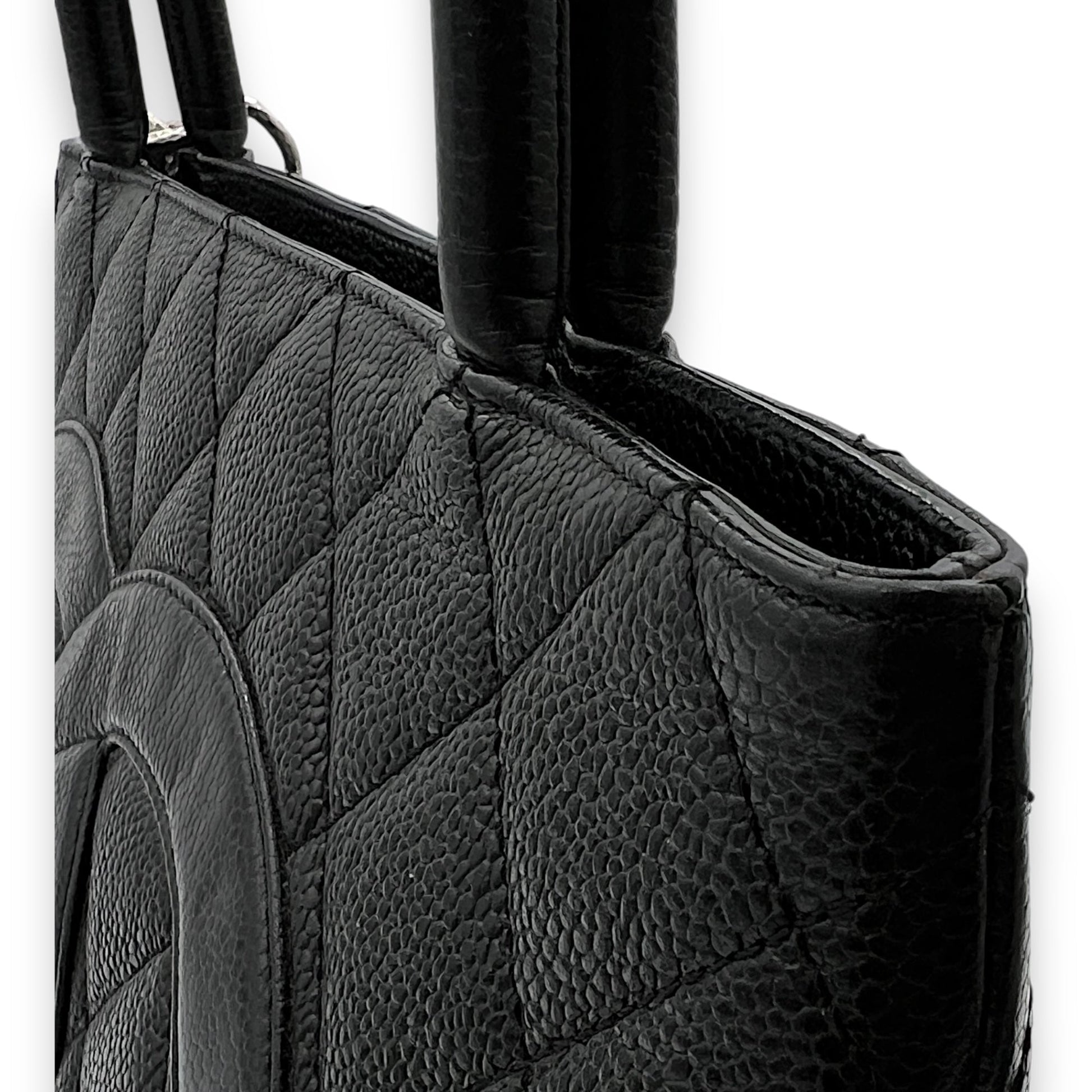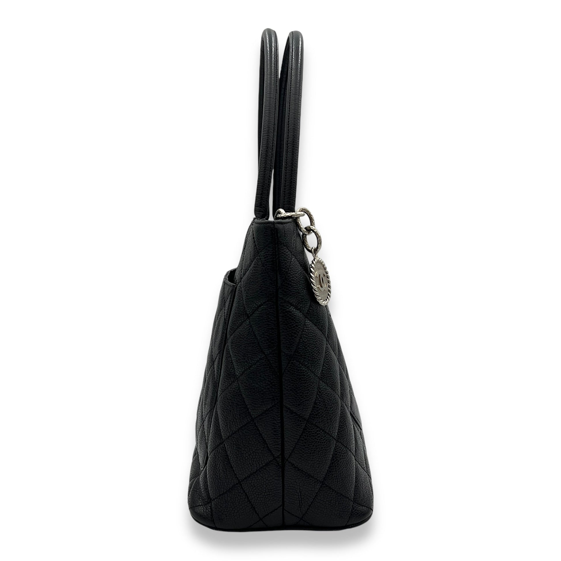 Medallion Tote Bag Black in Caviar Leather, Silver hardware