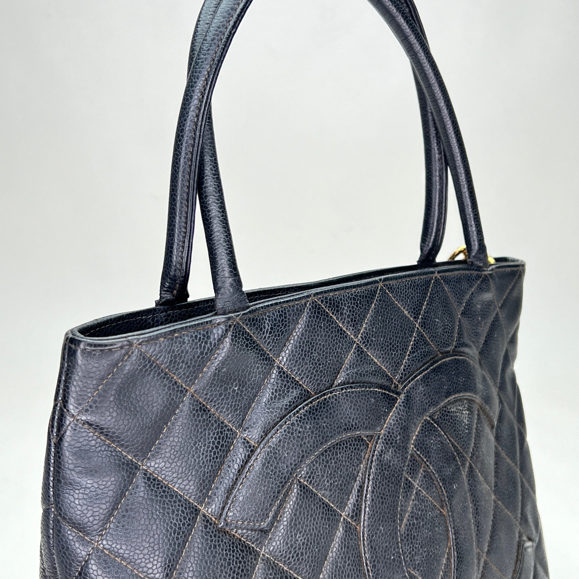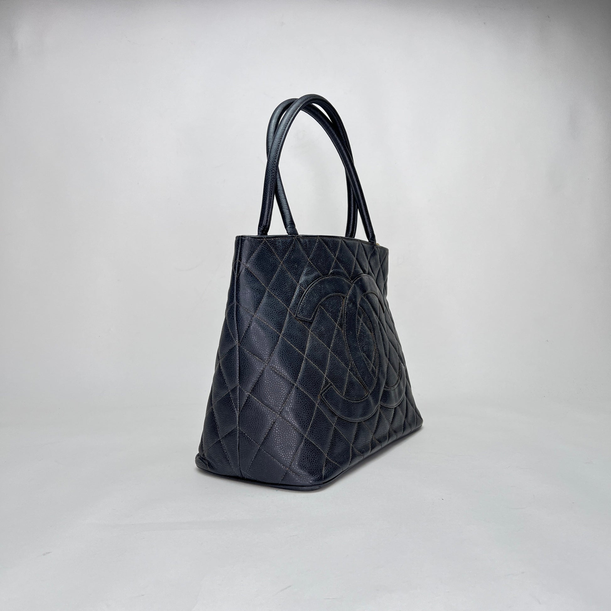 Medallion Black Tote Bag in Caviar Leather, Gold hardware