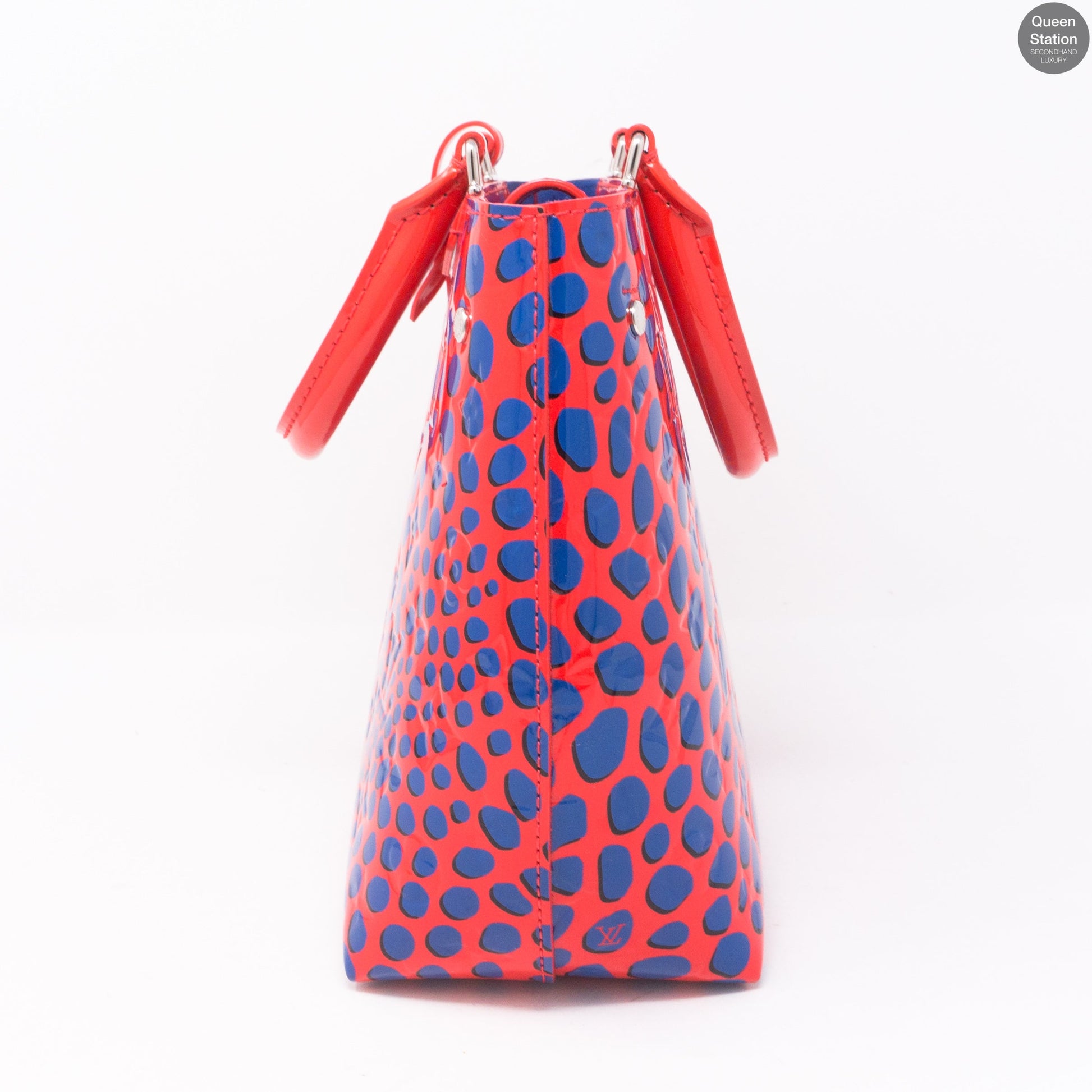 Description: The Open Tote from Louis Vuitton is a rare shoulder bag. Made in 2016 seasonal design Jungle Dots vernis leather. T he bag features an overlay screen printing jungle dots in blue, an optional shoulder strap, and polished silver hardware. The top opens with heavy duty large magnetic snap to a microfiber and patent leather interior with stamped Louis Vuitton on the bottom. In great condition, with only minimal signs of storage. Clean on the outside and inside. Comes with clochette, dustbag, shoulder strap and receipt. Receipt price €1800. Details: Size (L x H x W) 27 x 21 x 11 cm Shoulder drop 55 cm Handle drop 11 cm Color Jungle Dots, Red, Blue Material Vernis Leather Included Dustbag, clochette, shoulder strap, receipt Datecode DR1126 Item # QS01041 Condition