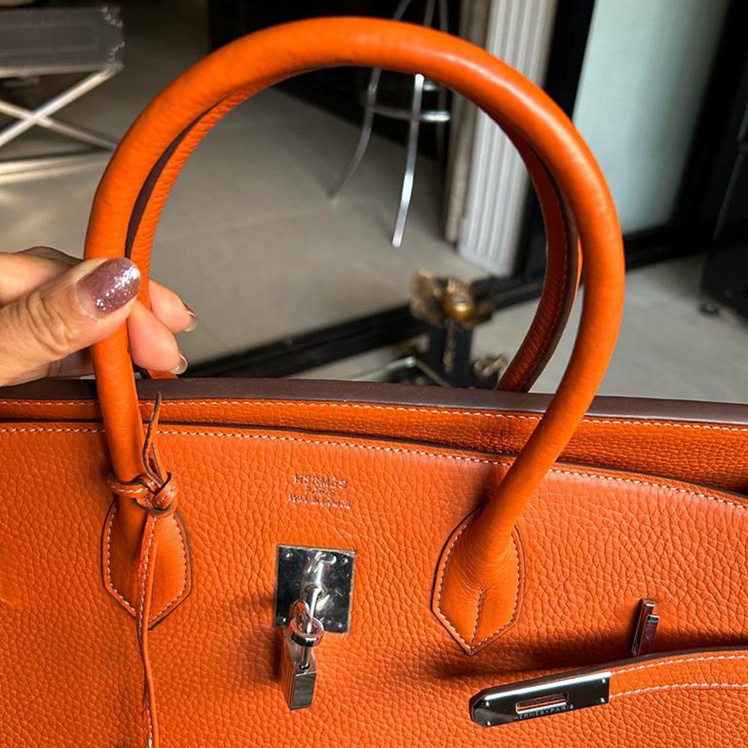 Hermes Orange Clemence Leather Birkin 40