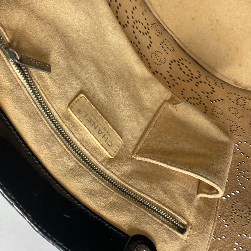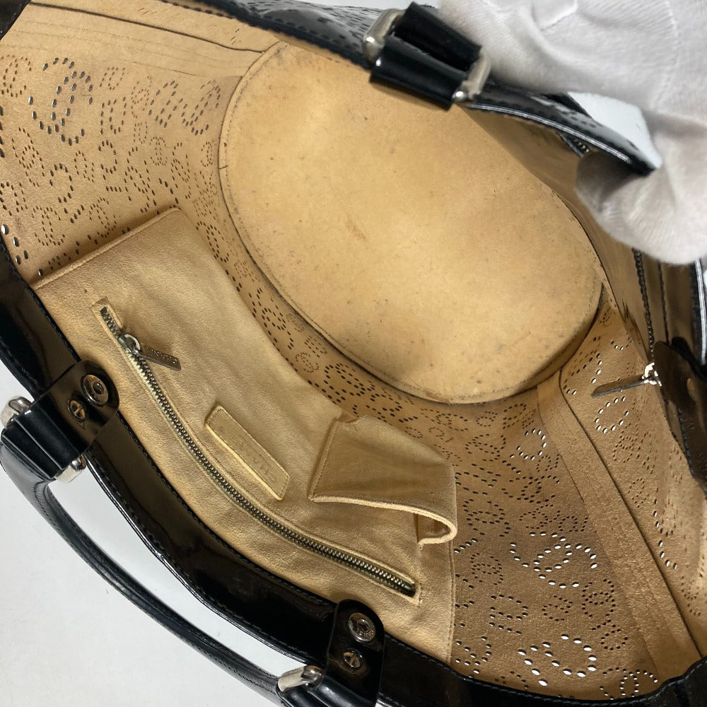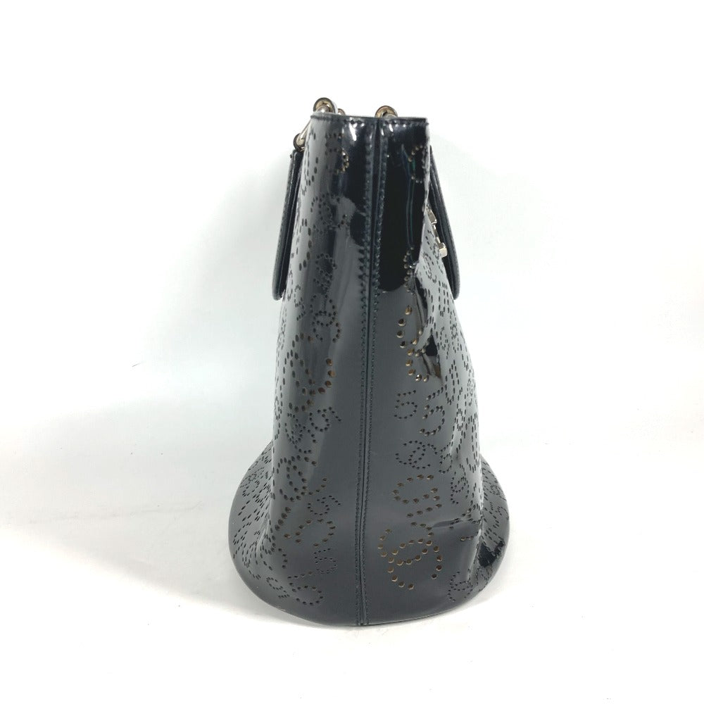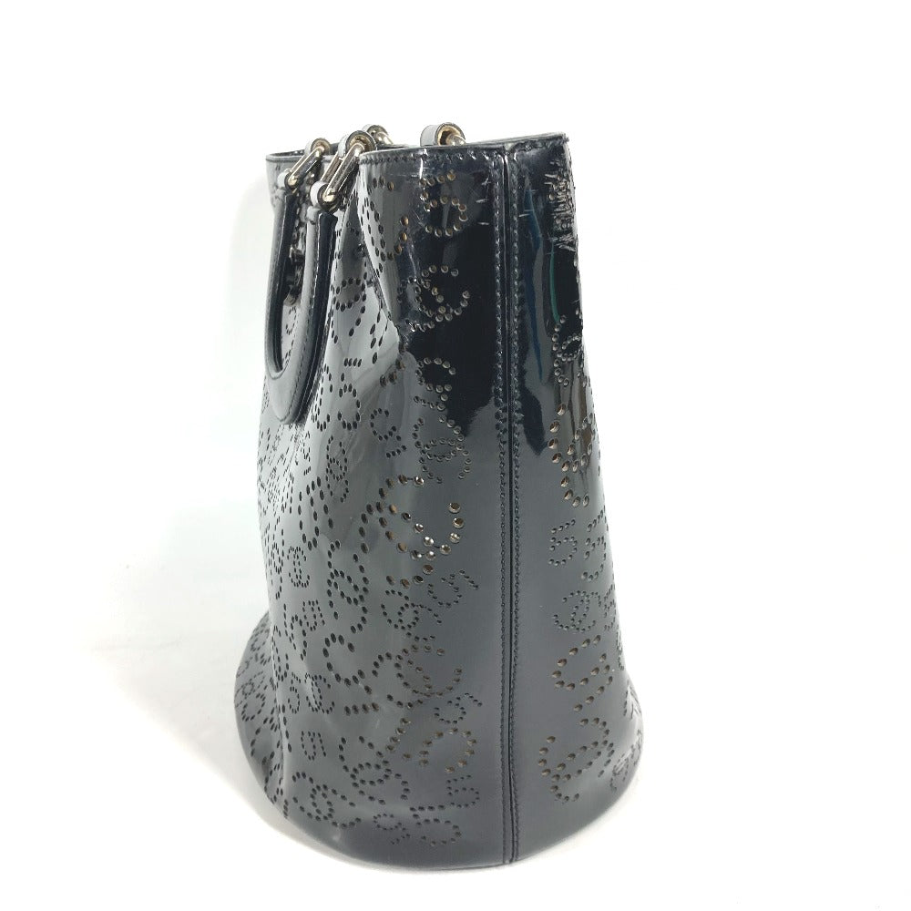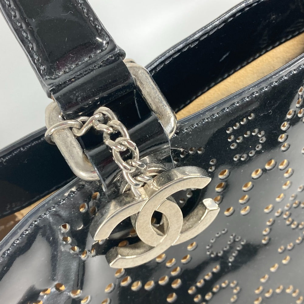 CHANEL Tote Bag Patent leather black punching logo CC COCO Mark NO5