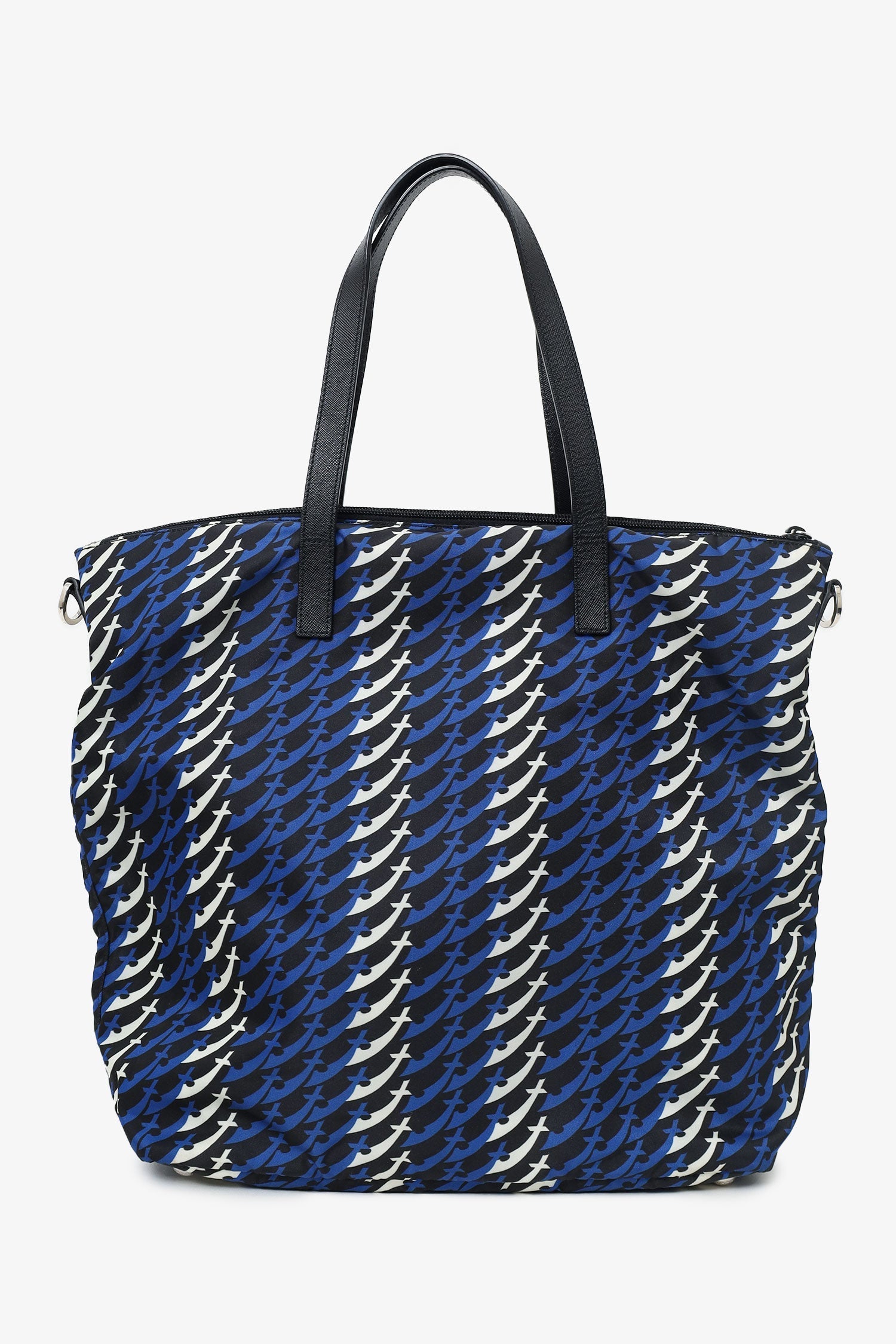 Prada Blue/Black/White Tessuto Stampato Tote with Strap