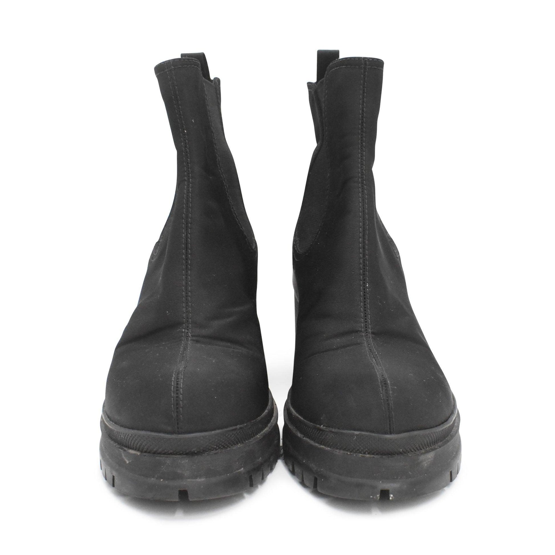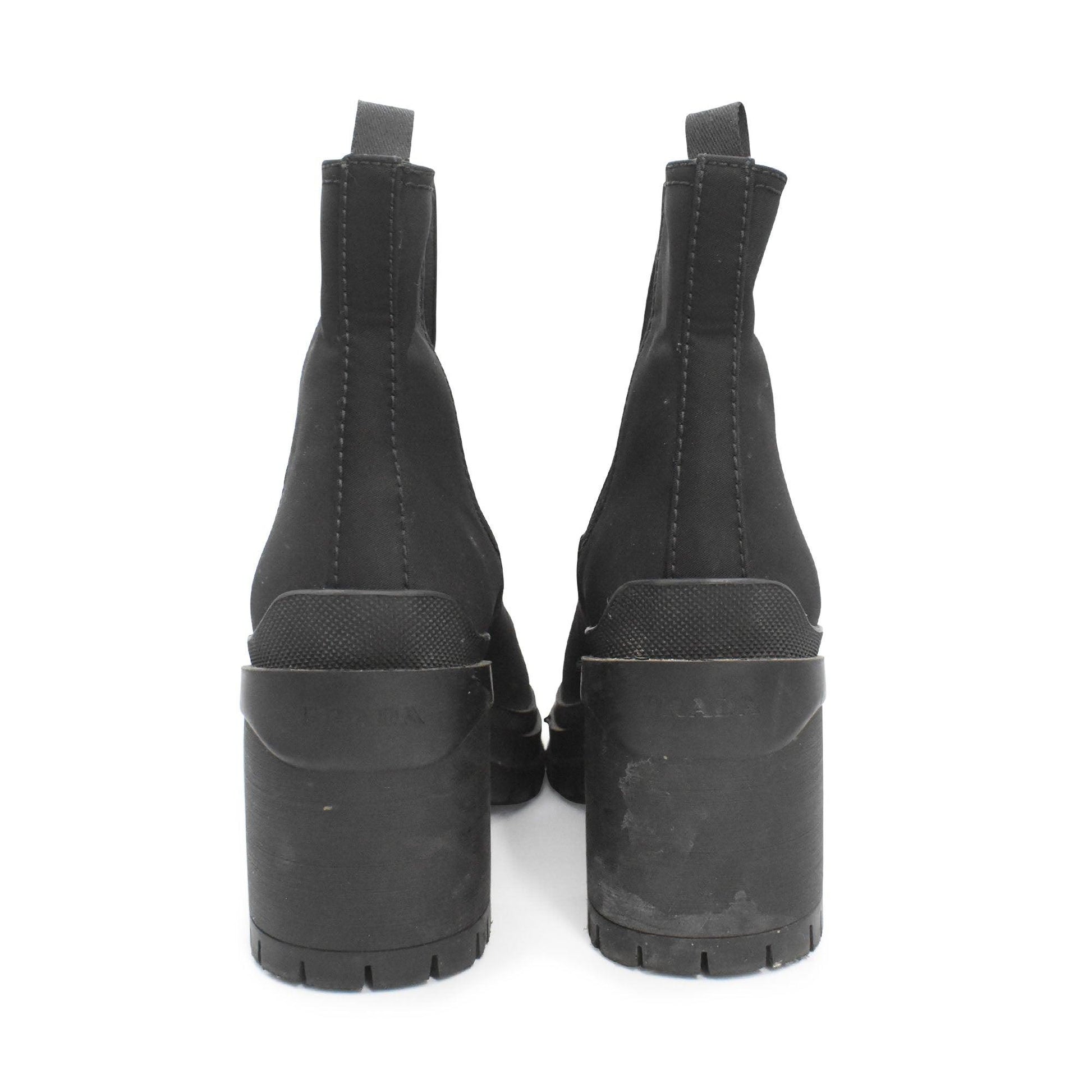 Prada ankle boots in black nylon with a thick heel and a lug sole.