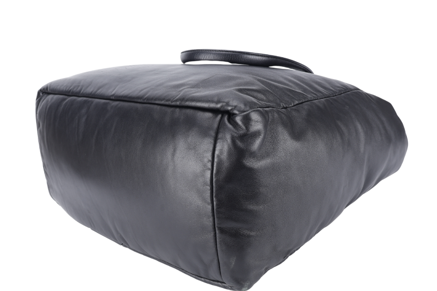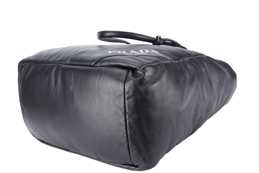 PRADA TOTE BAG (1BG223) NERO BLACK SHOULDER NAPPA SOFT LEATHER SILVER HARDWARE WITH DUST COVER