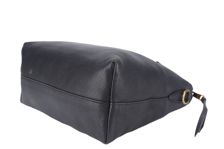 PRADA VITELLO MEDIUM BLACK LEATHER 2WAYS BAG GOLD HARDWARE WITH STRAP