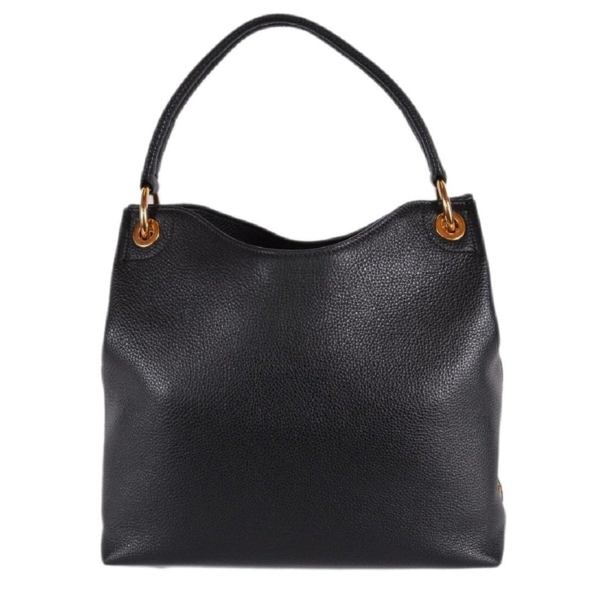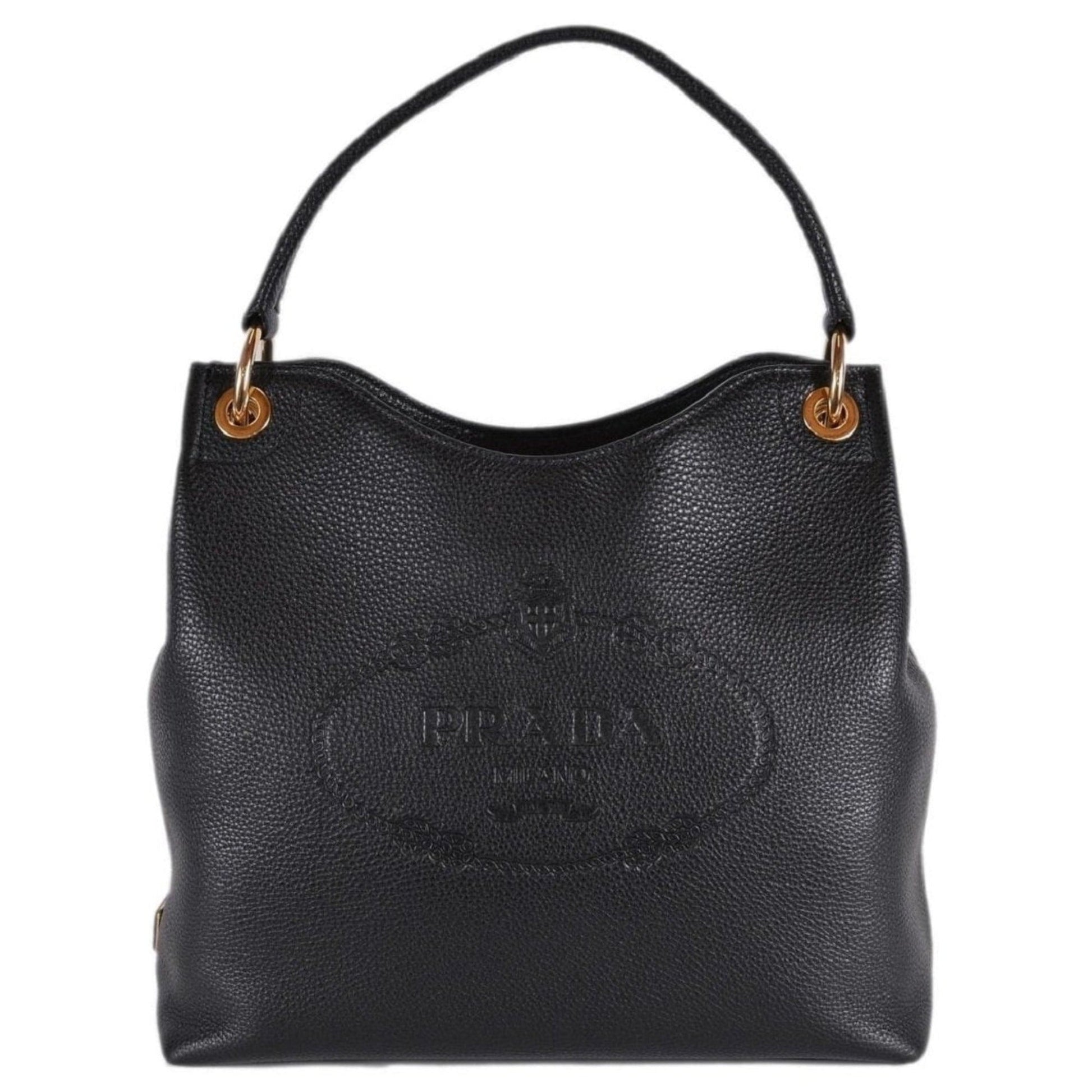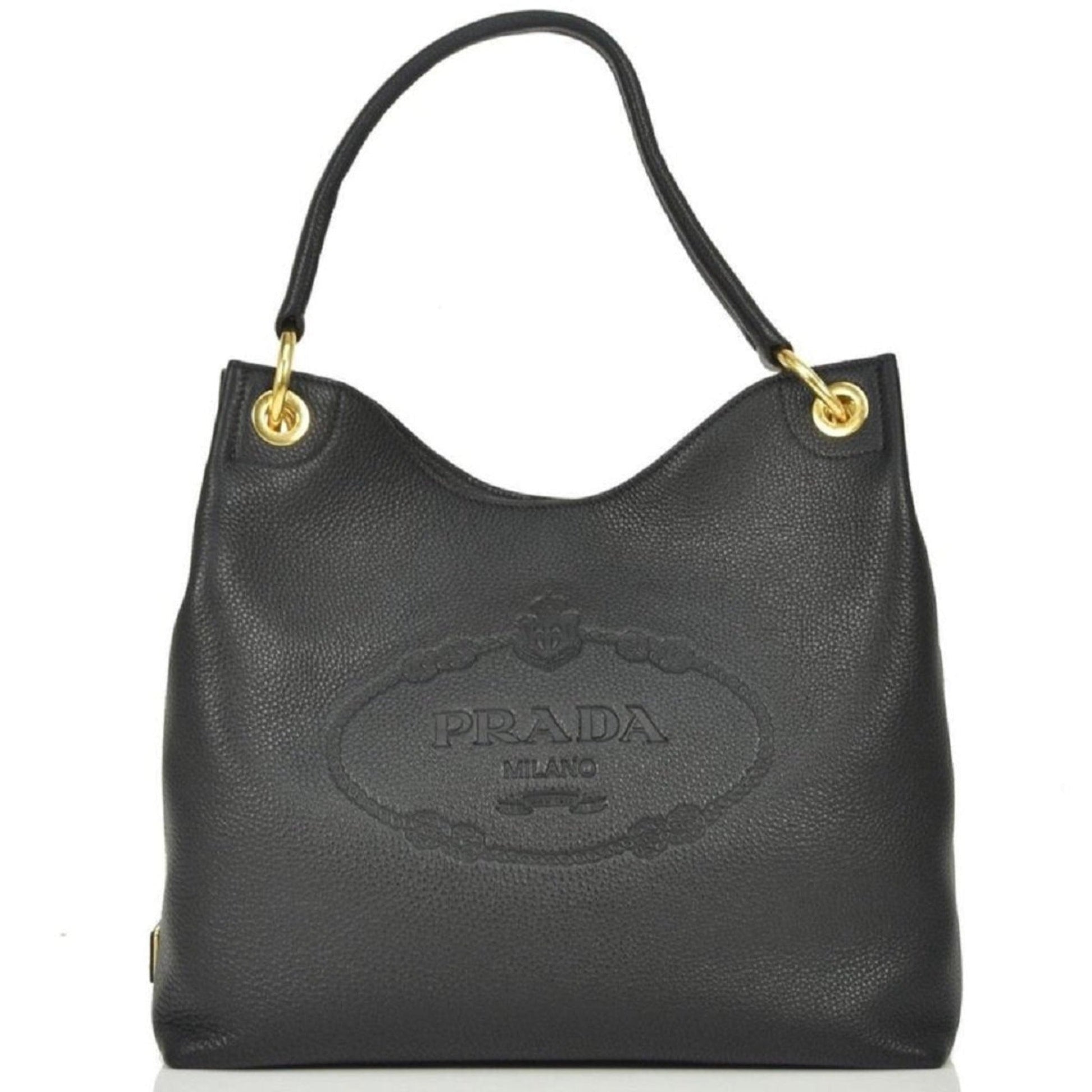 Prada Vitello Phenix Black Leather Embossed Logo Hobo Tote Bag