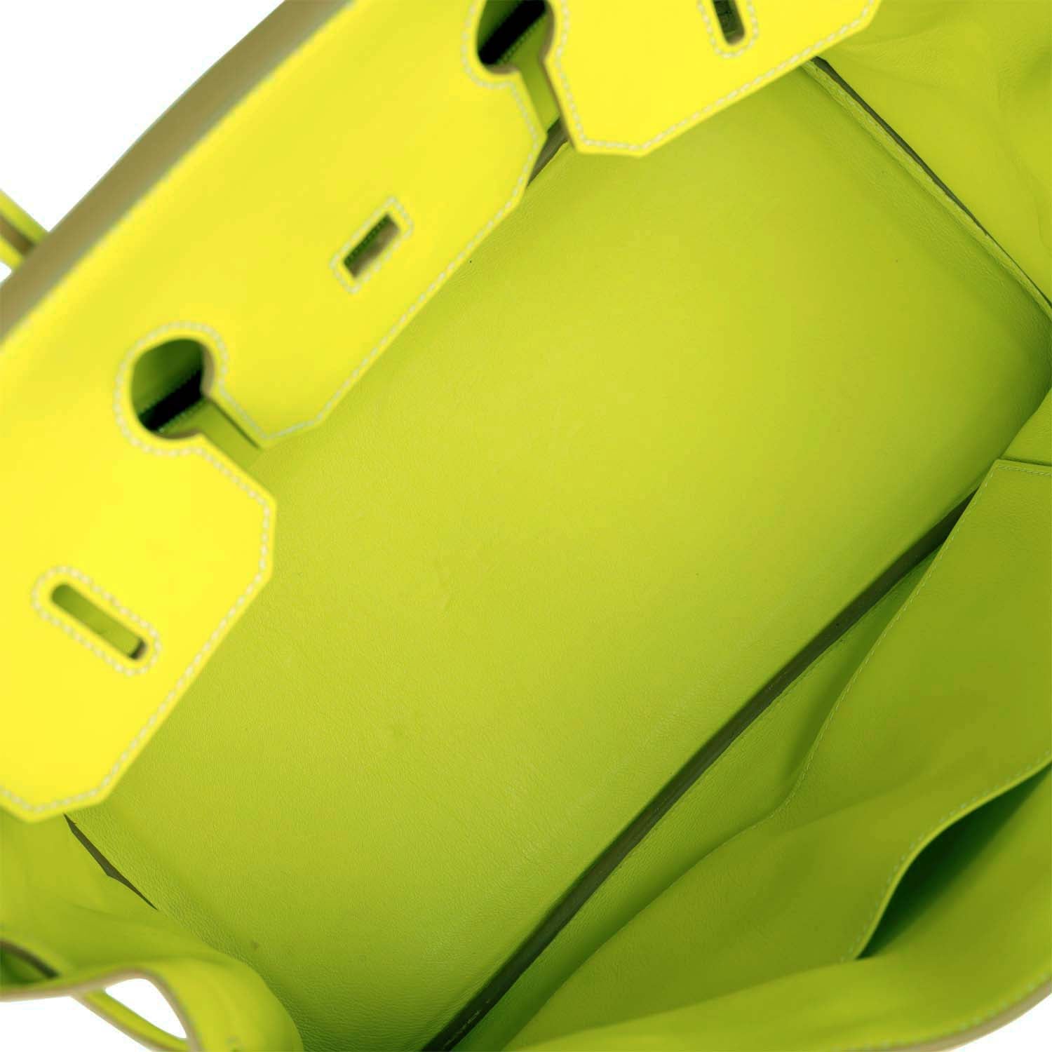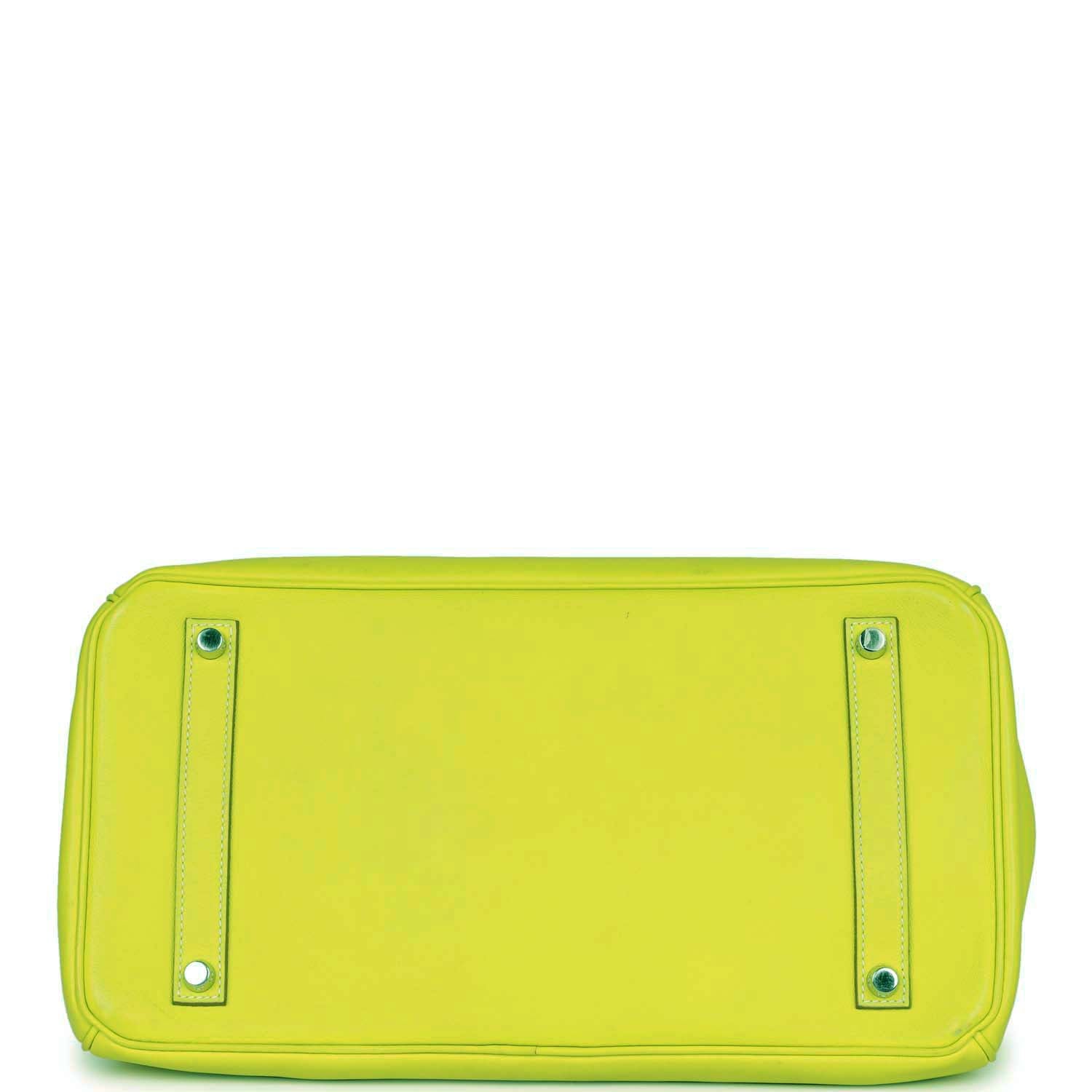 This Birkin is in Kiwi swift leather with palladium hardware and has contrast stitching, a front toggle closure, a clochette with lock and two keys, and double rolled handles.