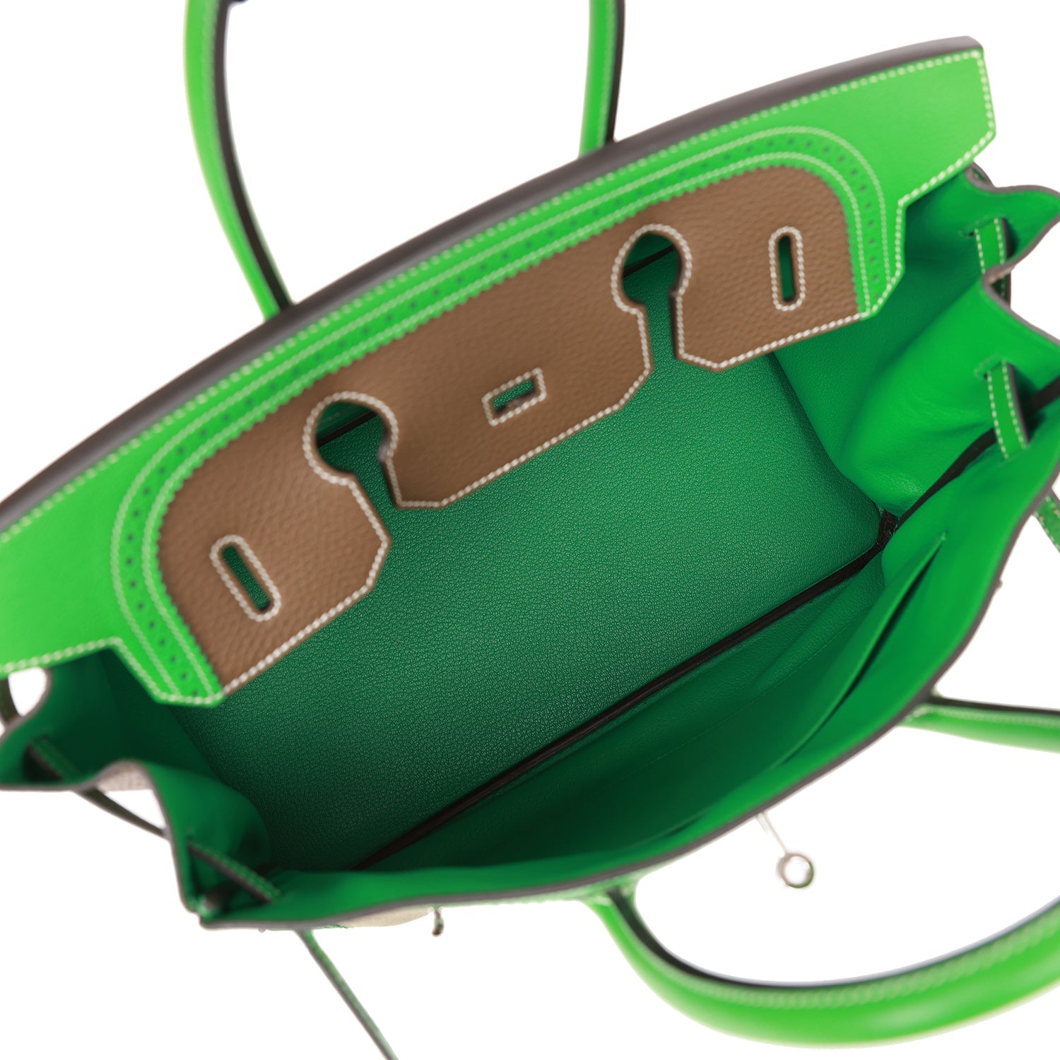 Hermes Grizzly Ghillies Birkin 35 Vert de Gris, Bambou and Taupe Doblis Palladium Hardware