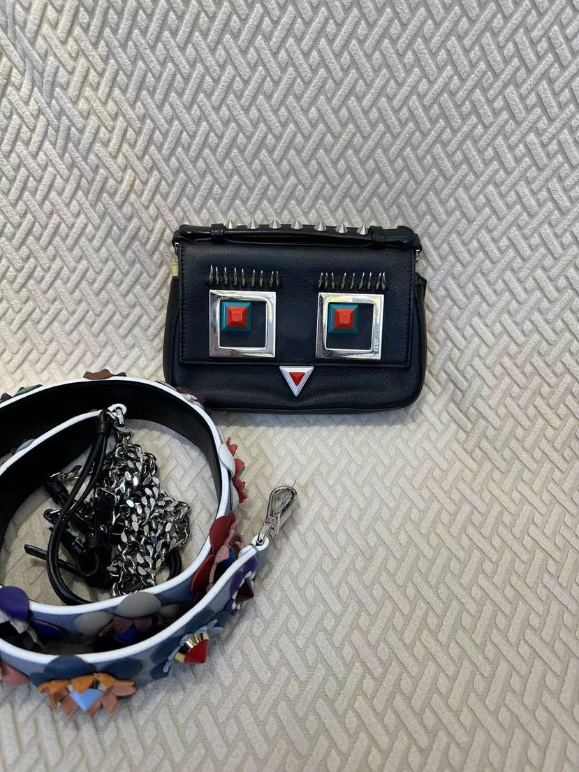 This preloved Fendi Monster Black Crossbody Bag is a striking choice for those who appreciate playful elegance in designer handbags. Expertly crafted from smooth leather, the bag features Fendi's iconic Monster eyes and a colorful detachable strap, perfect for adding a whimsical touch to your ensemble. Inside, the leather lining offers a luxurious feel, ensuring every detail satisfies fashion enthusiasts and collectors of vintage Fendi bags alike.