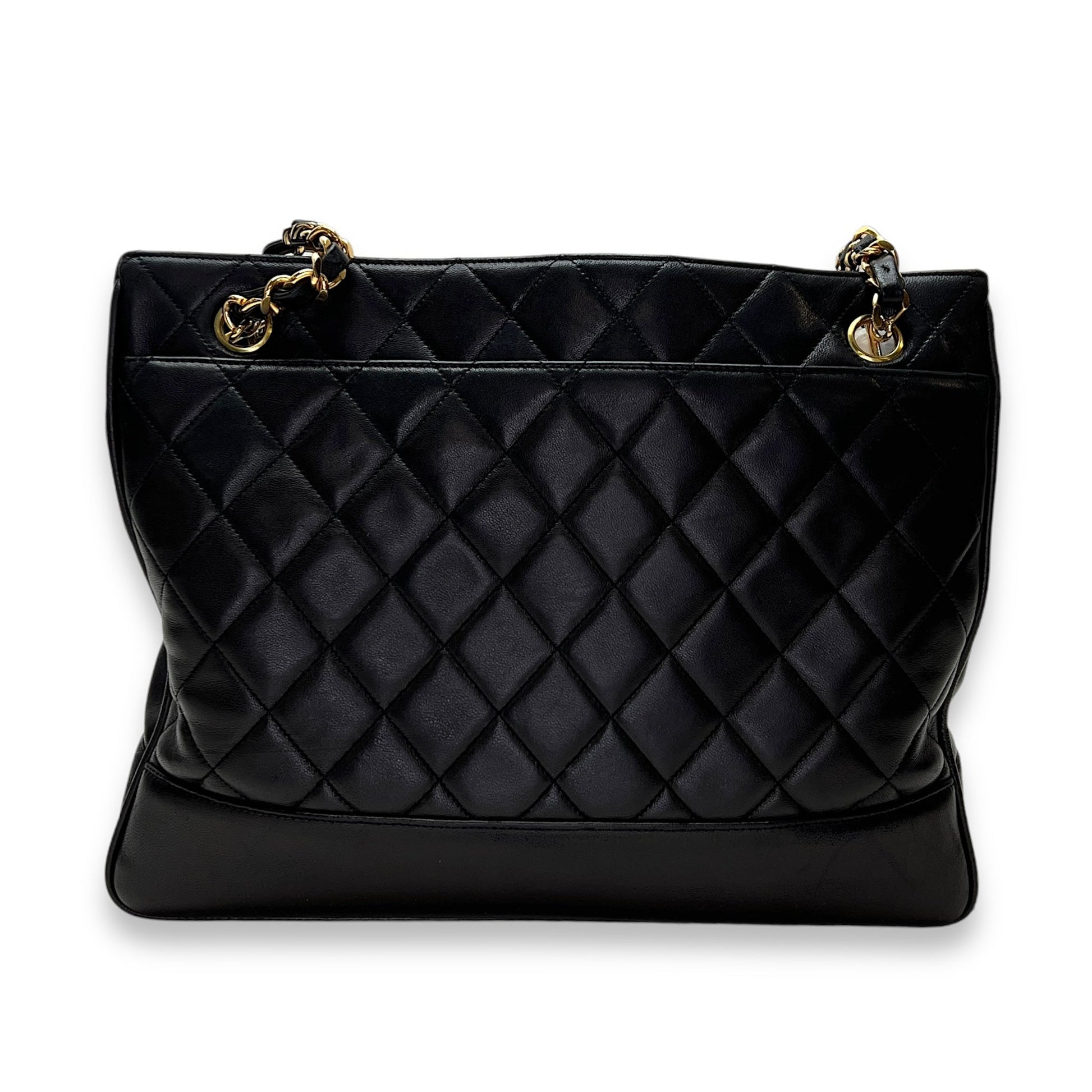 Chanel Vintage Shopping Black Tote Bag in Lambskin, Gold hardware Bags Tote Bag Black Good Condition MEN UNISEX