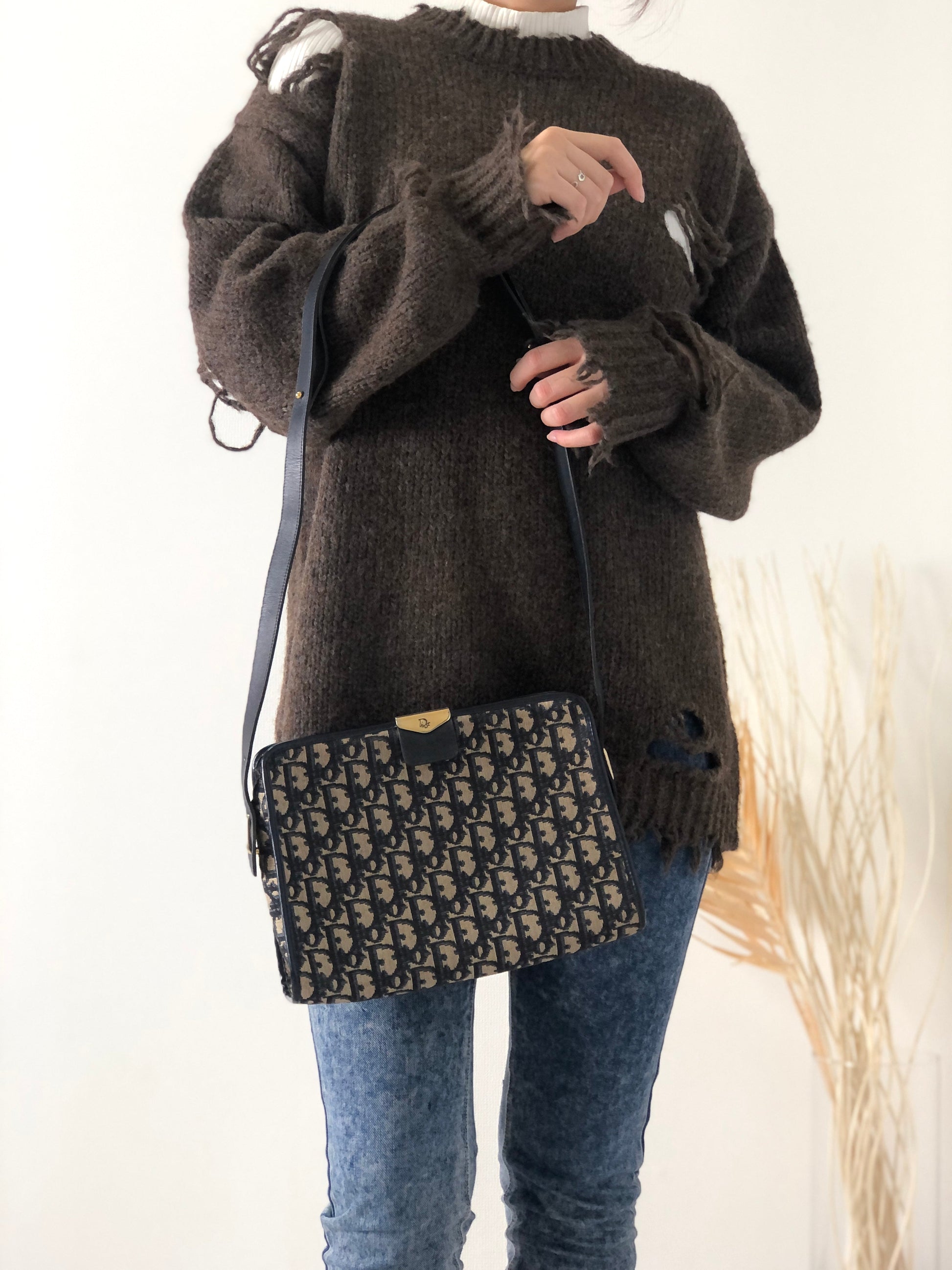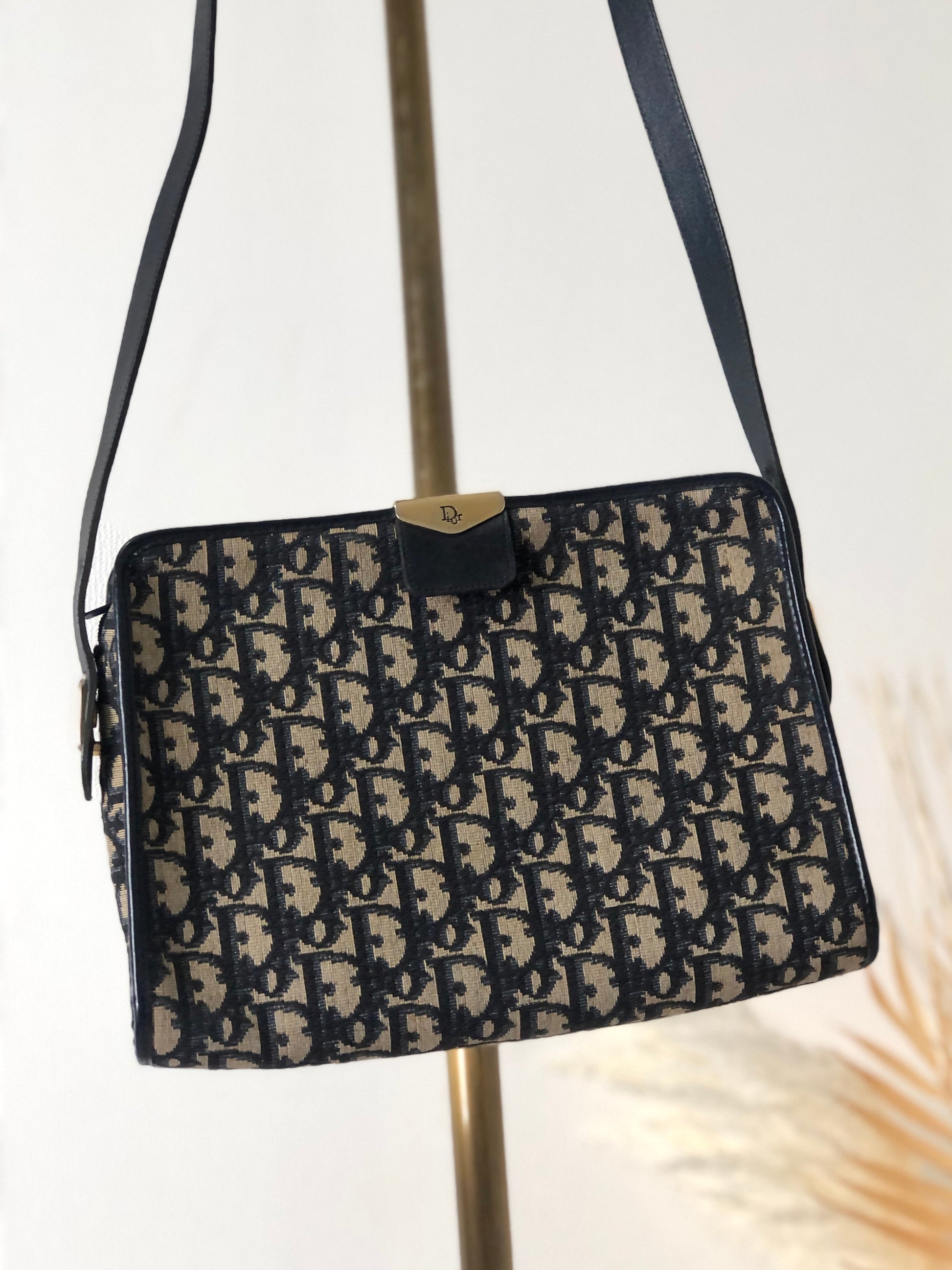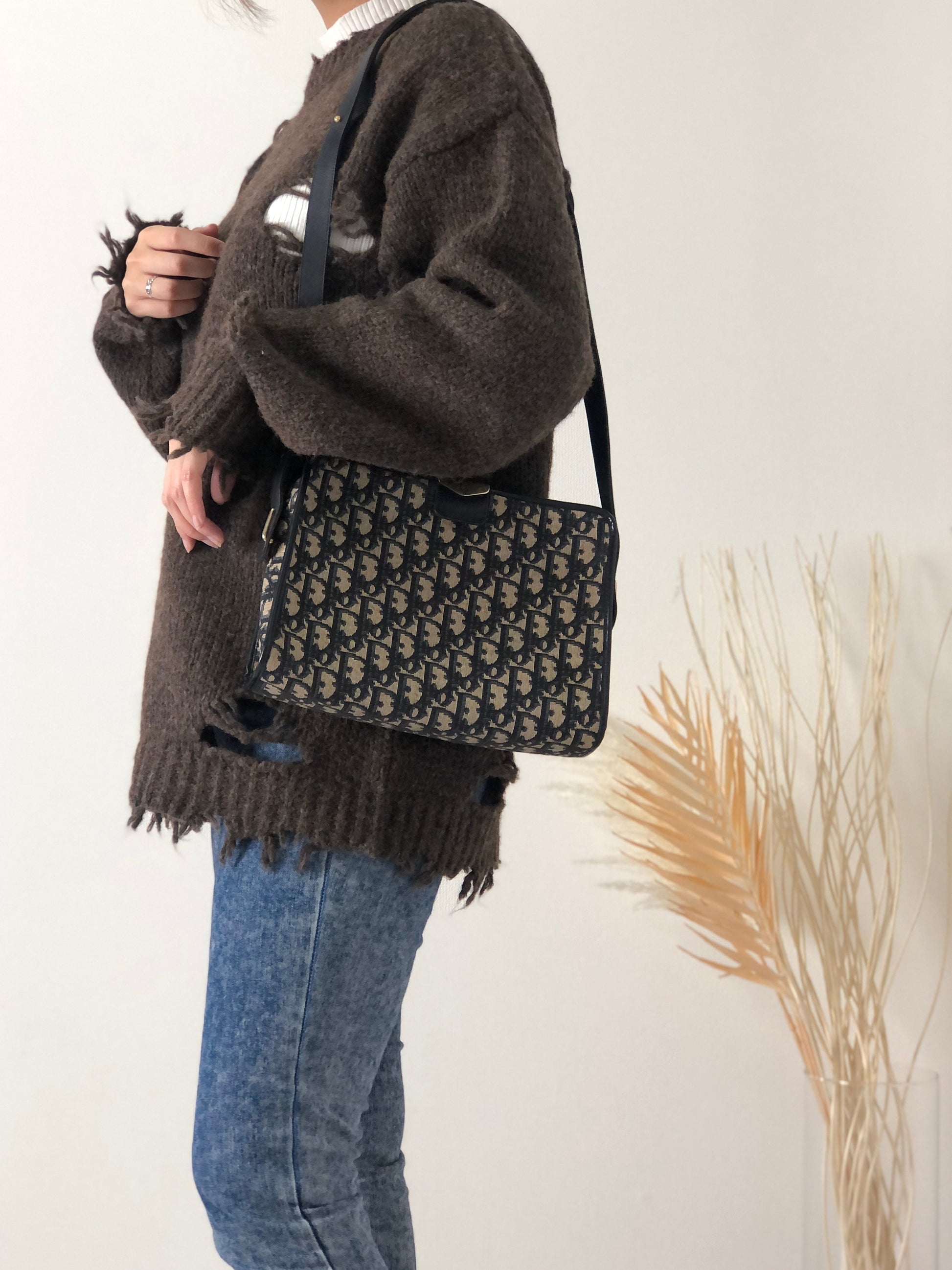 Christian Dior Trotter Jacquard Leather Shoulder bag Navy Vintage z57hhm