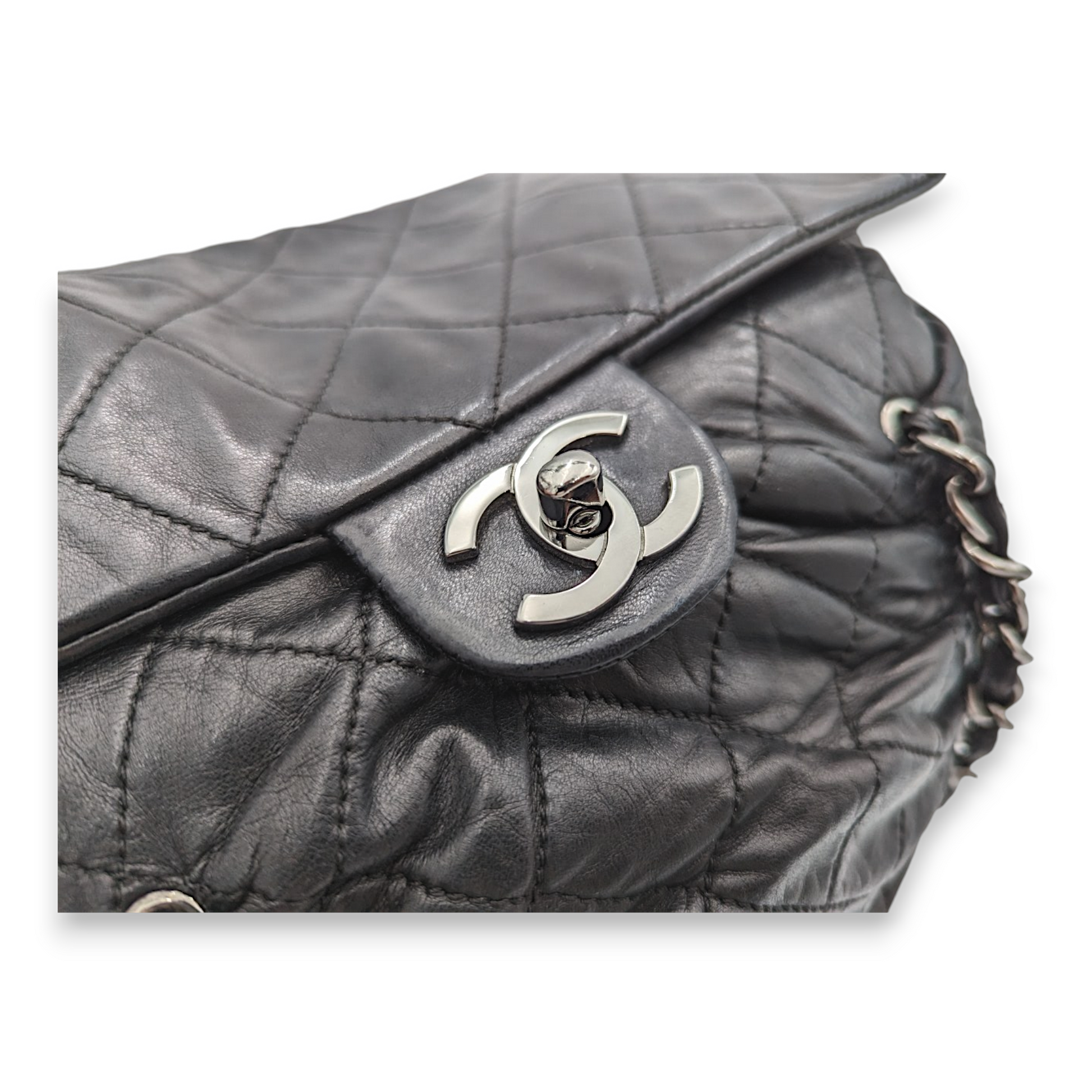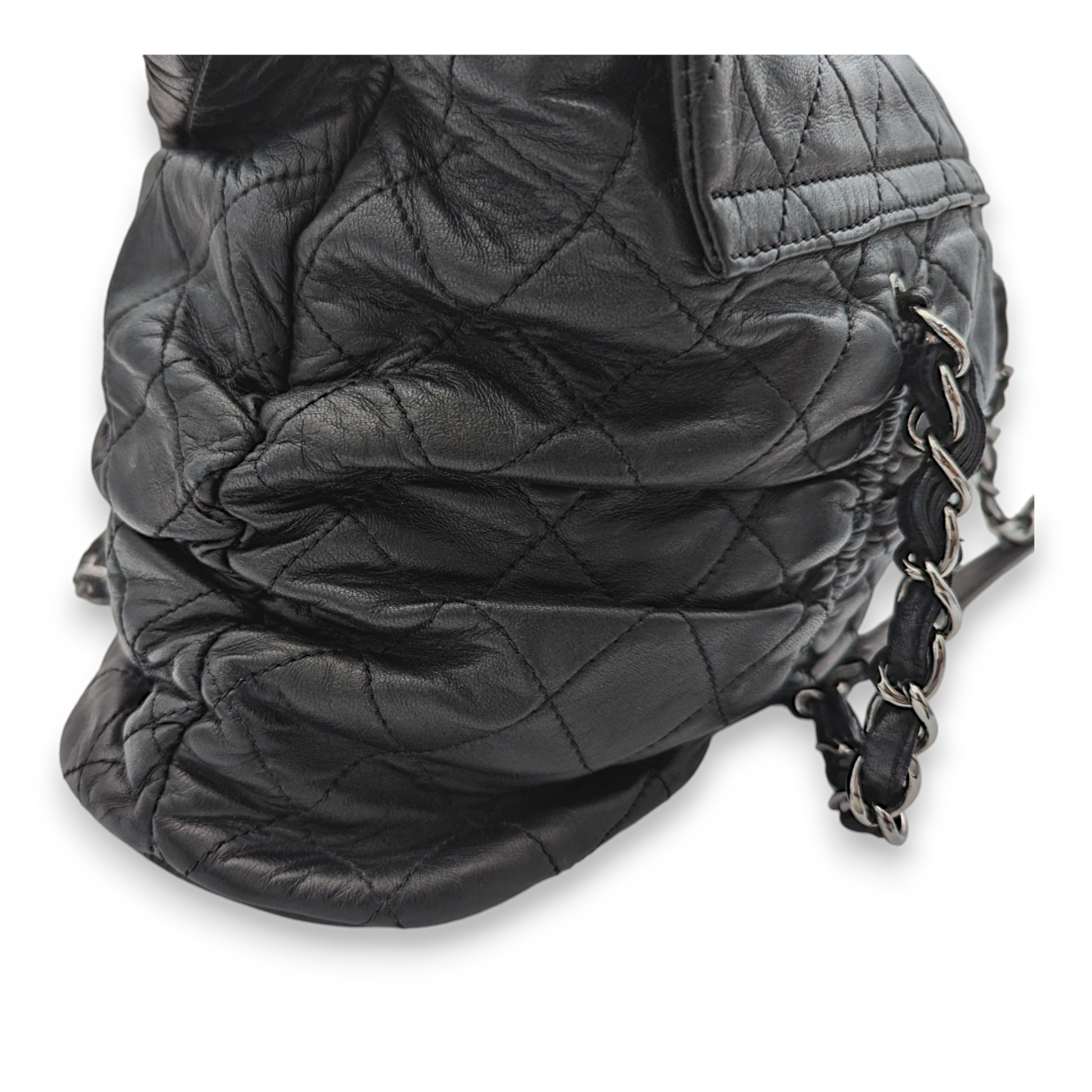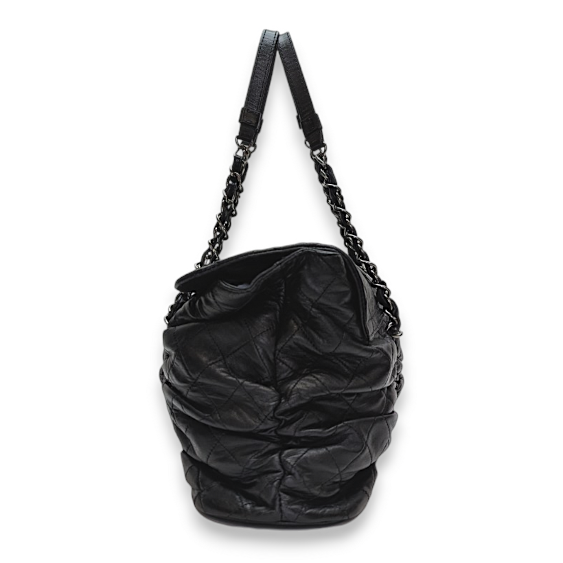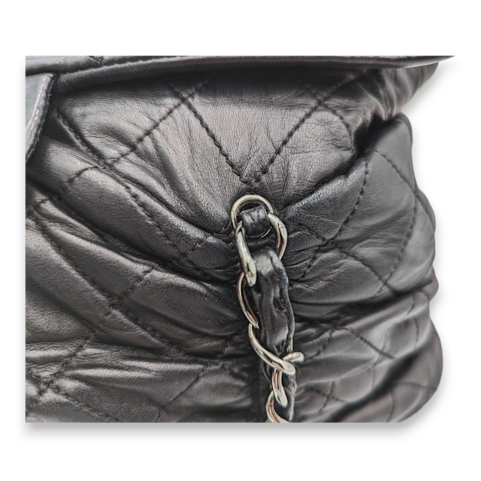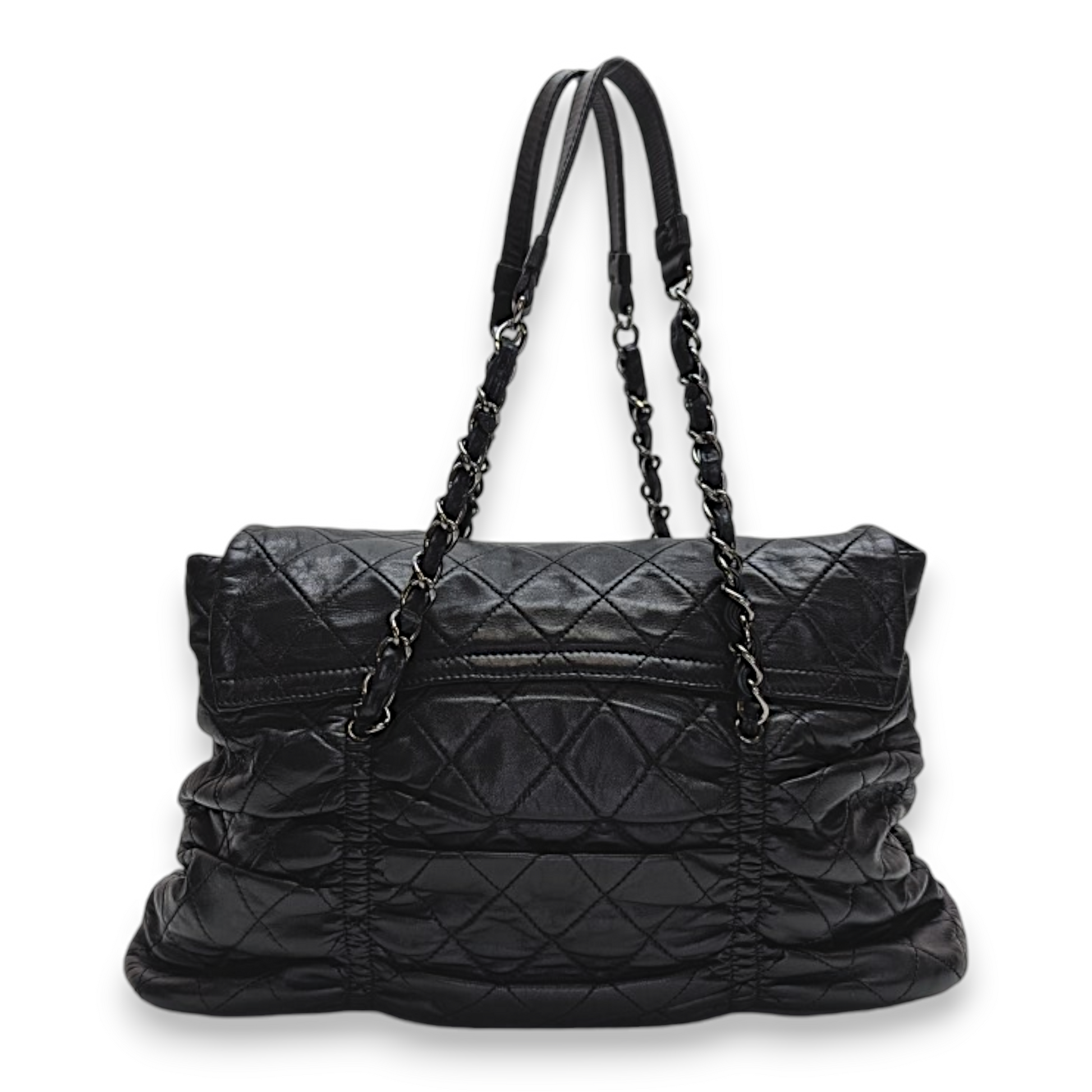 Rouched Black Tote Bag in Lambskin, Silver hardware