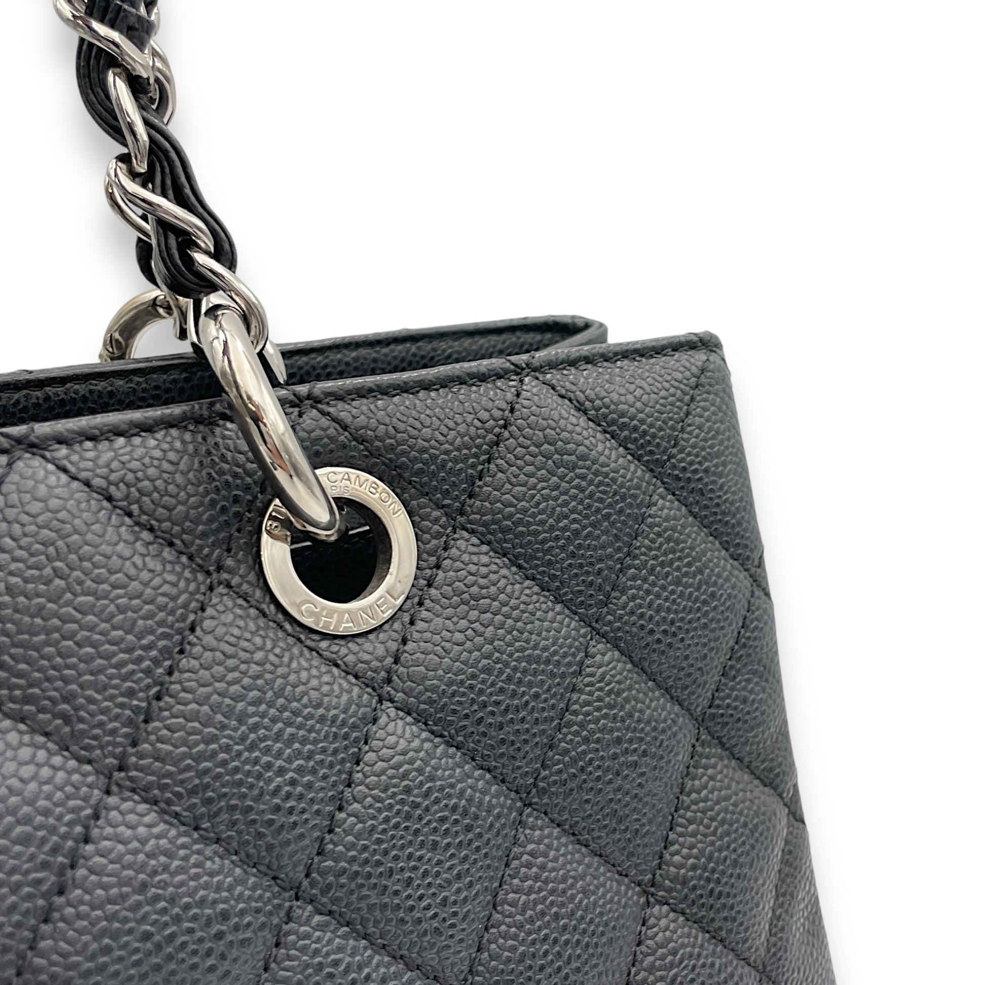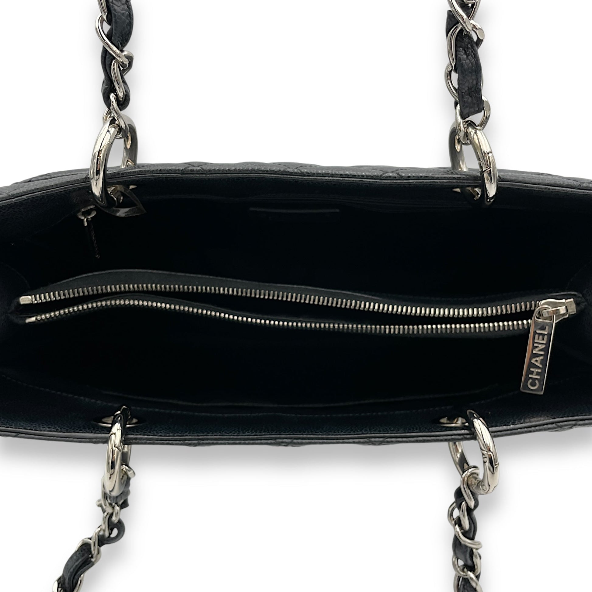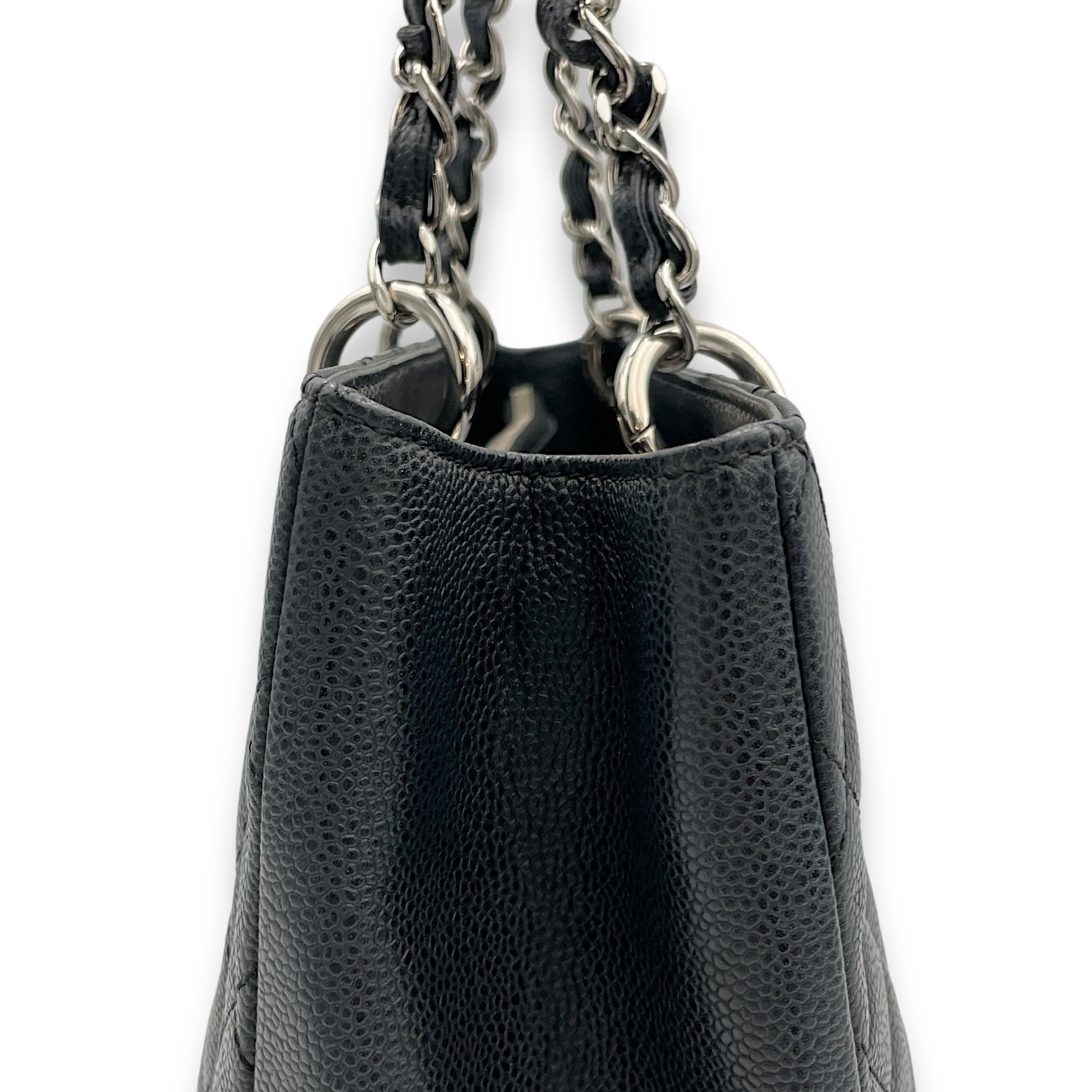 GST Grand Shopping Tote Black Tote Bag in Caviar Leather, Silver hardware