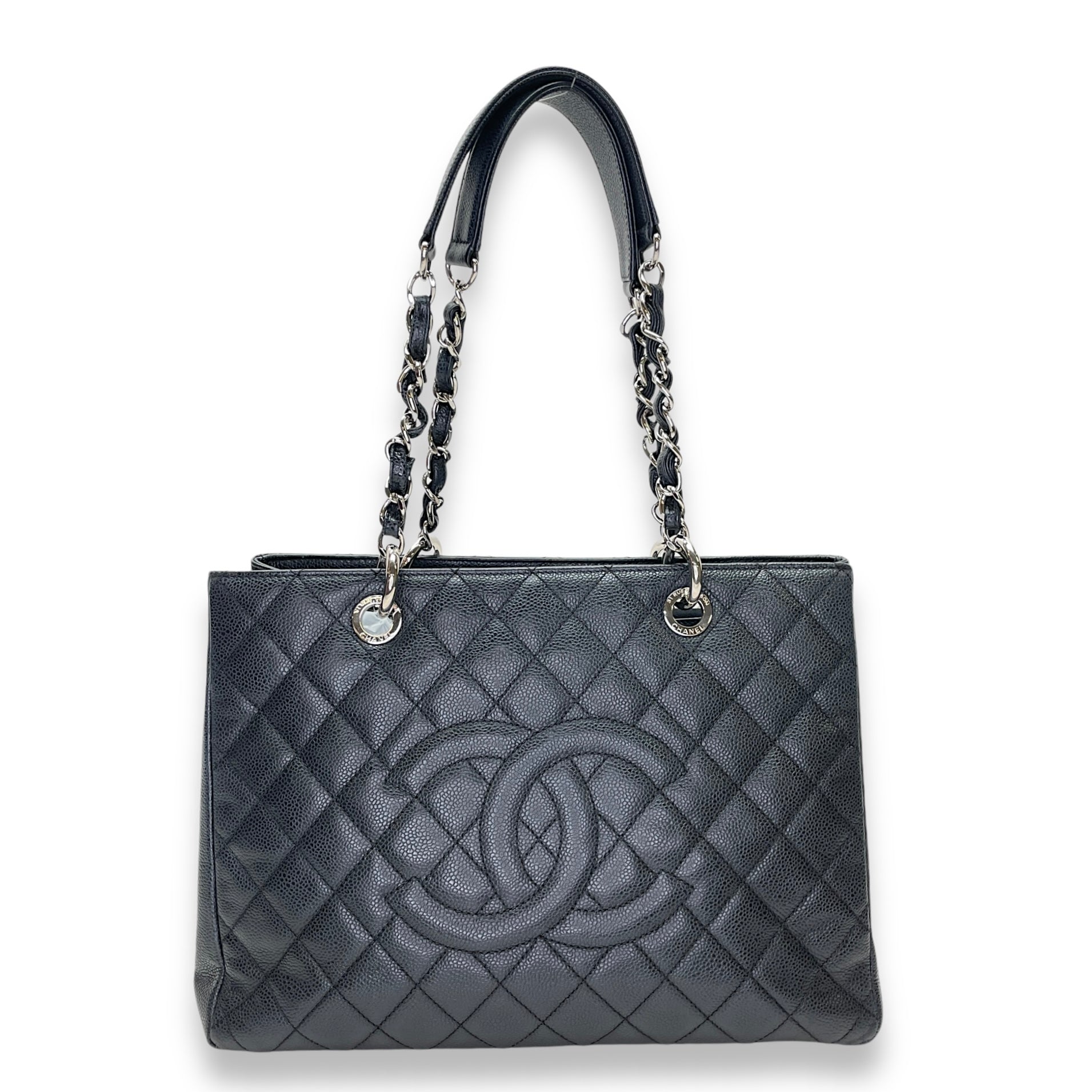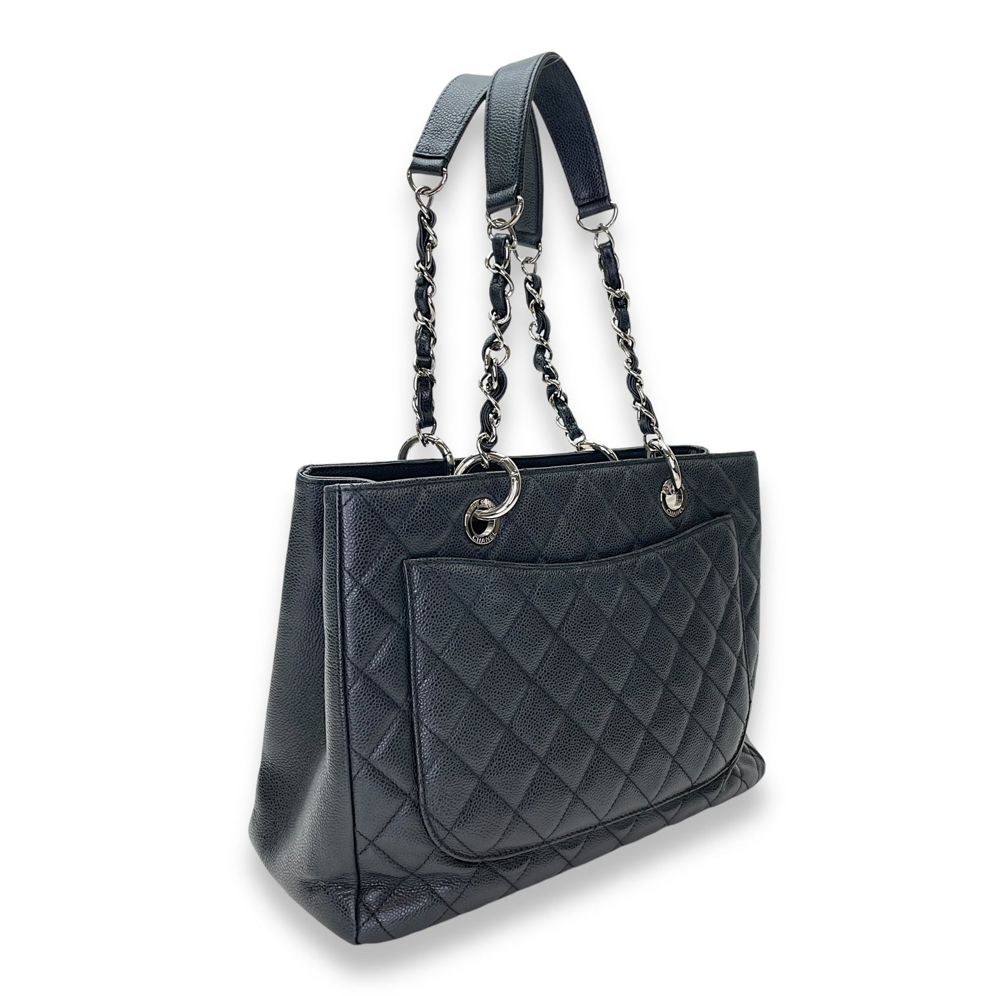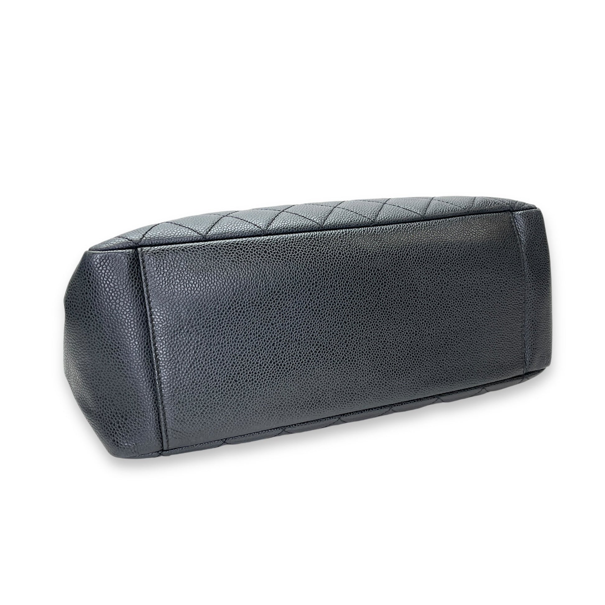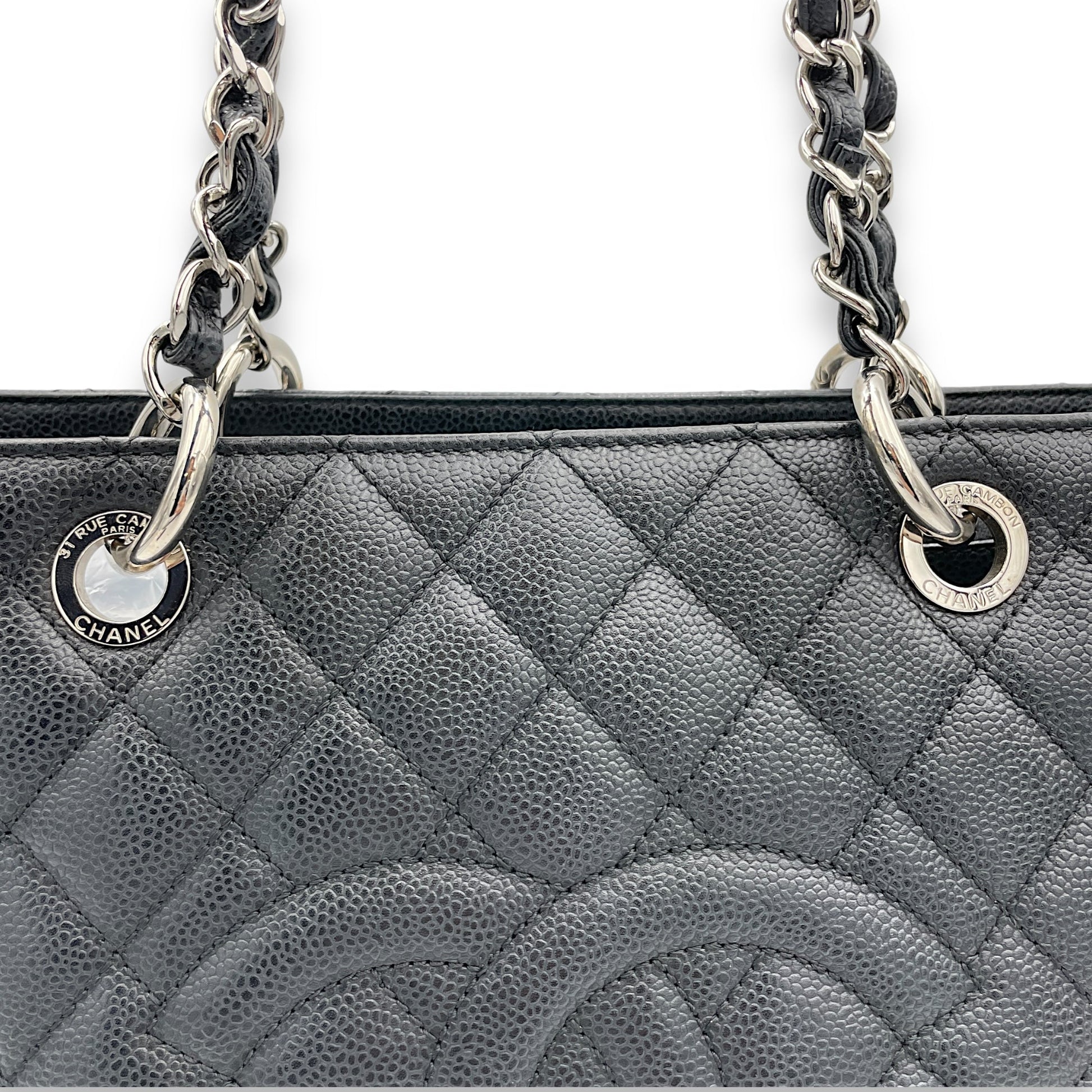 GST Grand Shopping Tote Black Tote Bag in Caviar Leather, Silver hardware