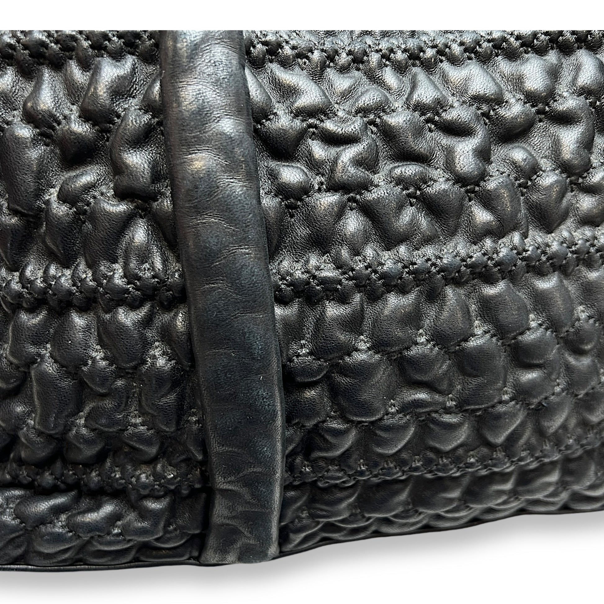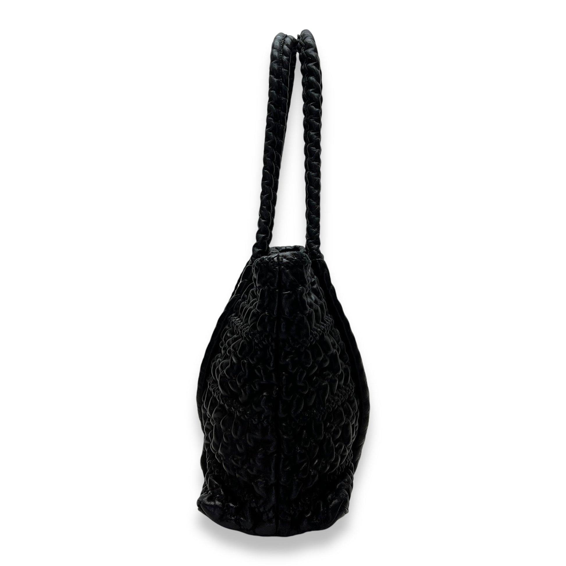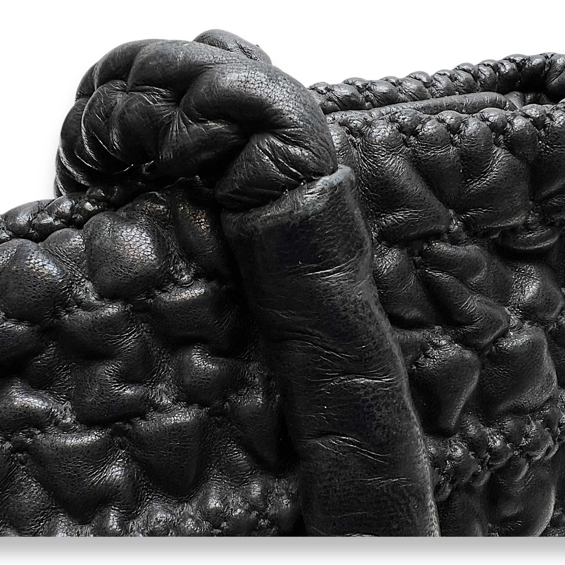 Hidden Chain Wrinkled Black Tote Bag in Lambskin, Silver hardware