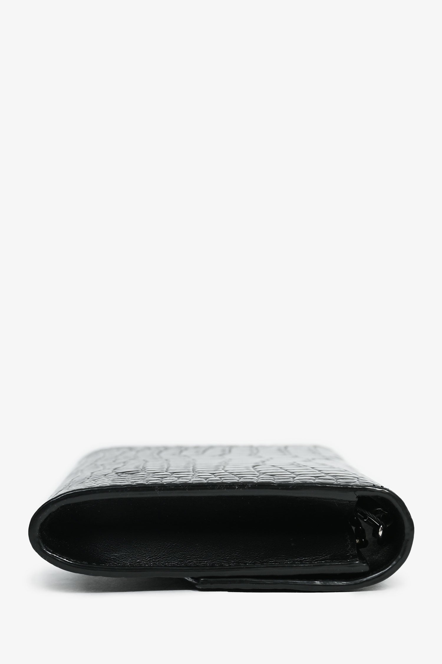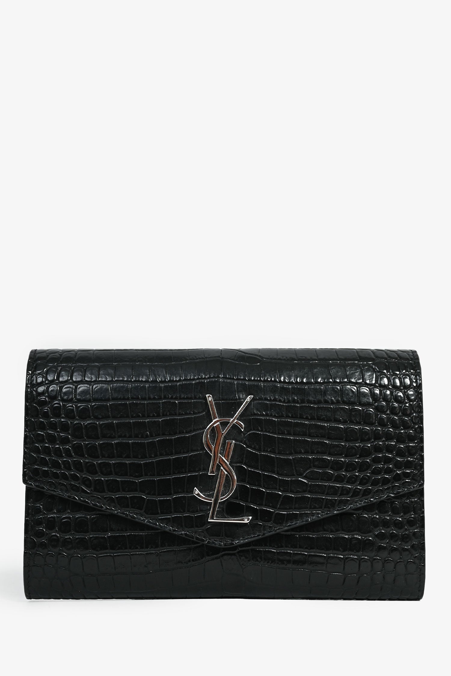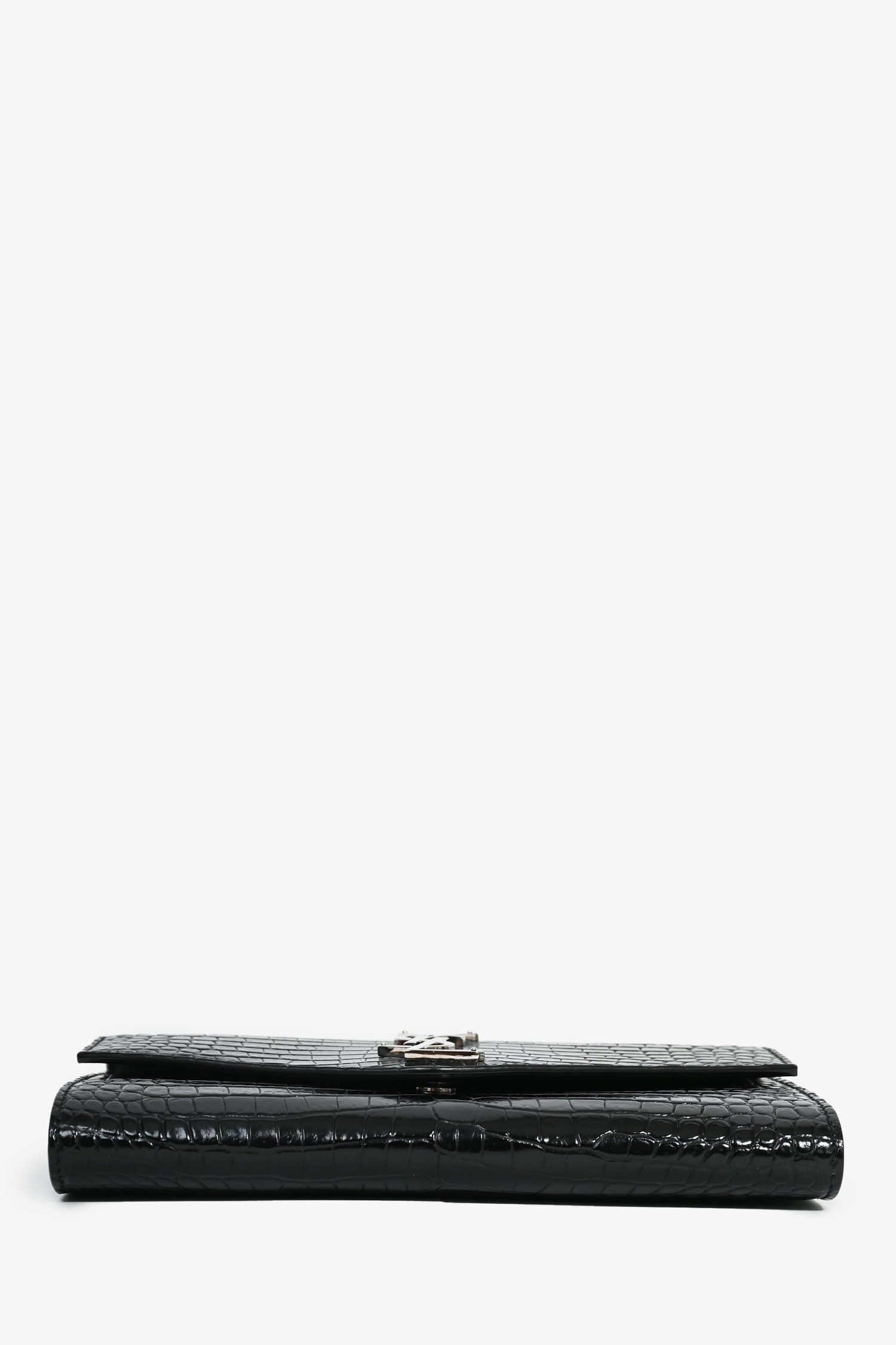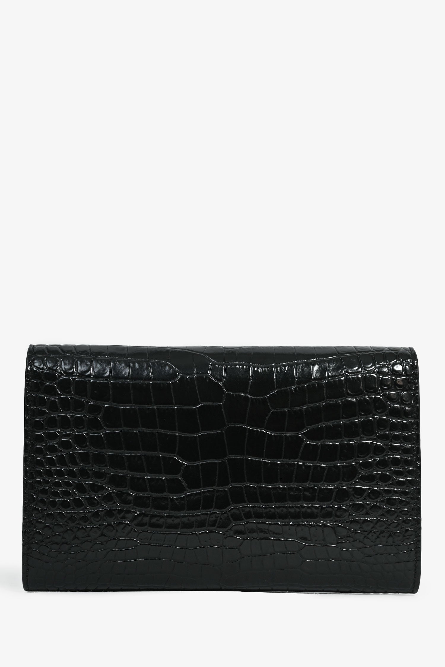 Saint Laurent 2020 Black Croc Embossed Envelope Wallet On Chain with Card Holder