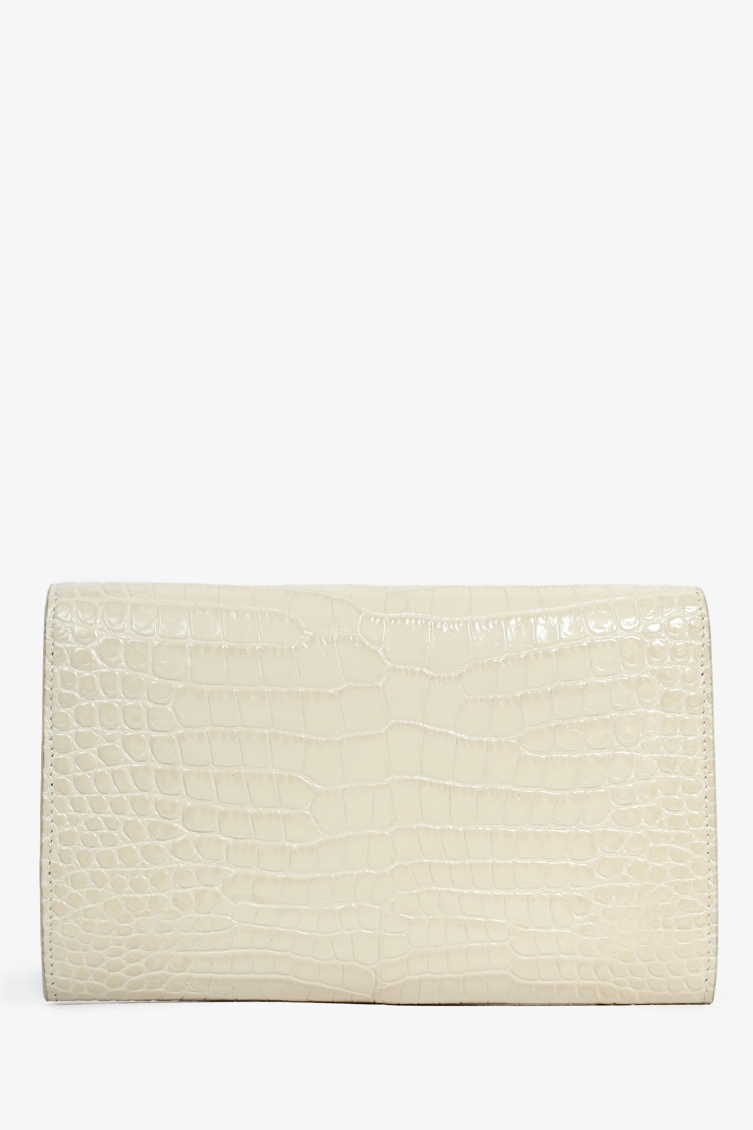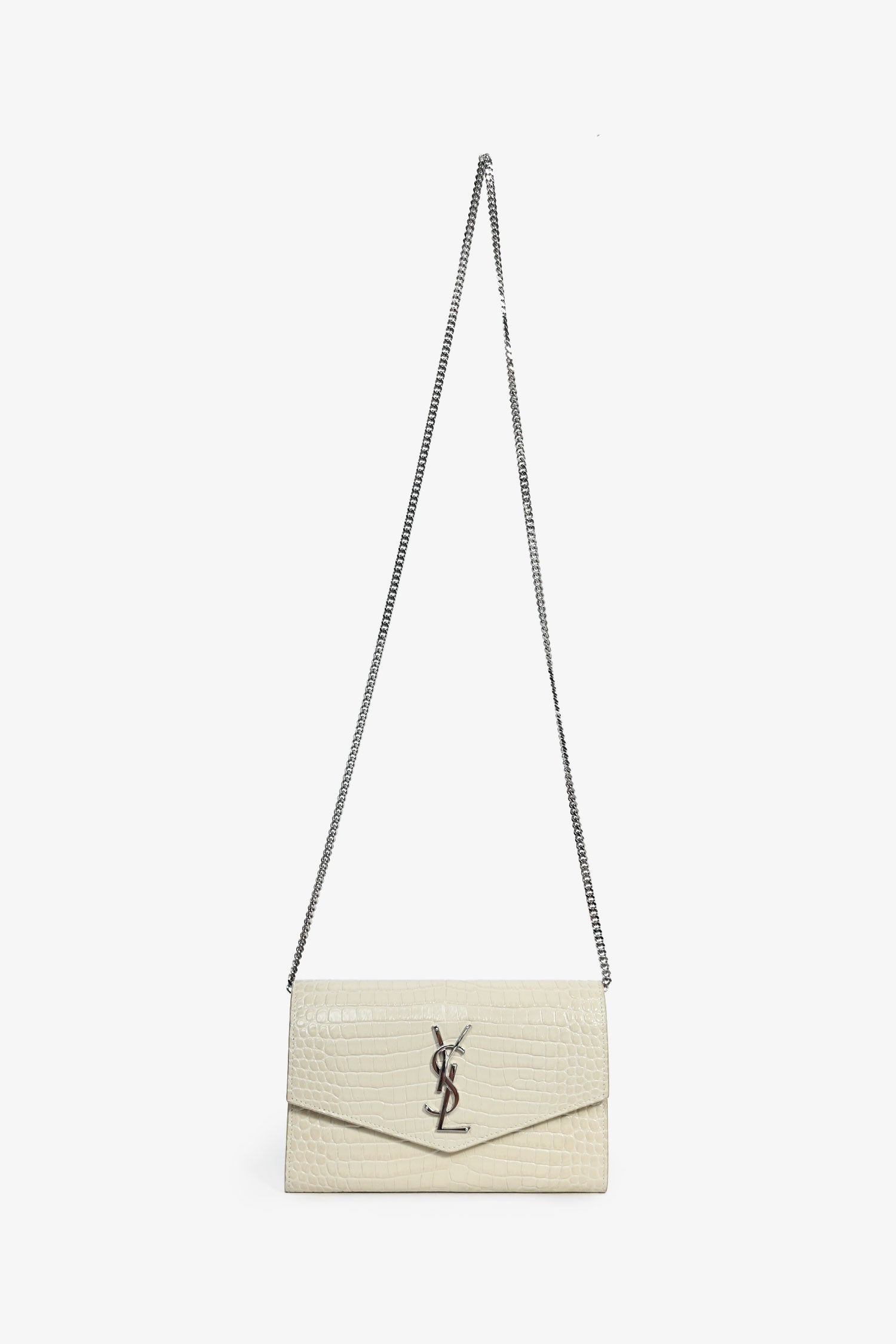 Saint Laurent 2020 Cream Croc Embossed Envelope Wallet On Chain with Card Holder