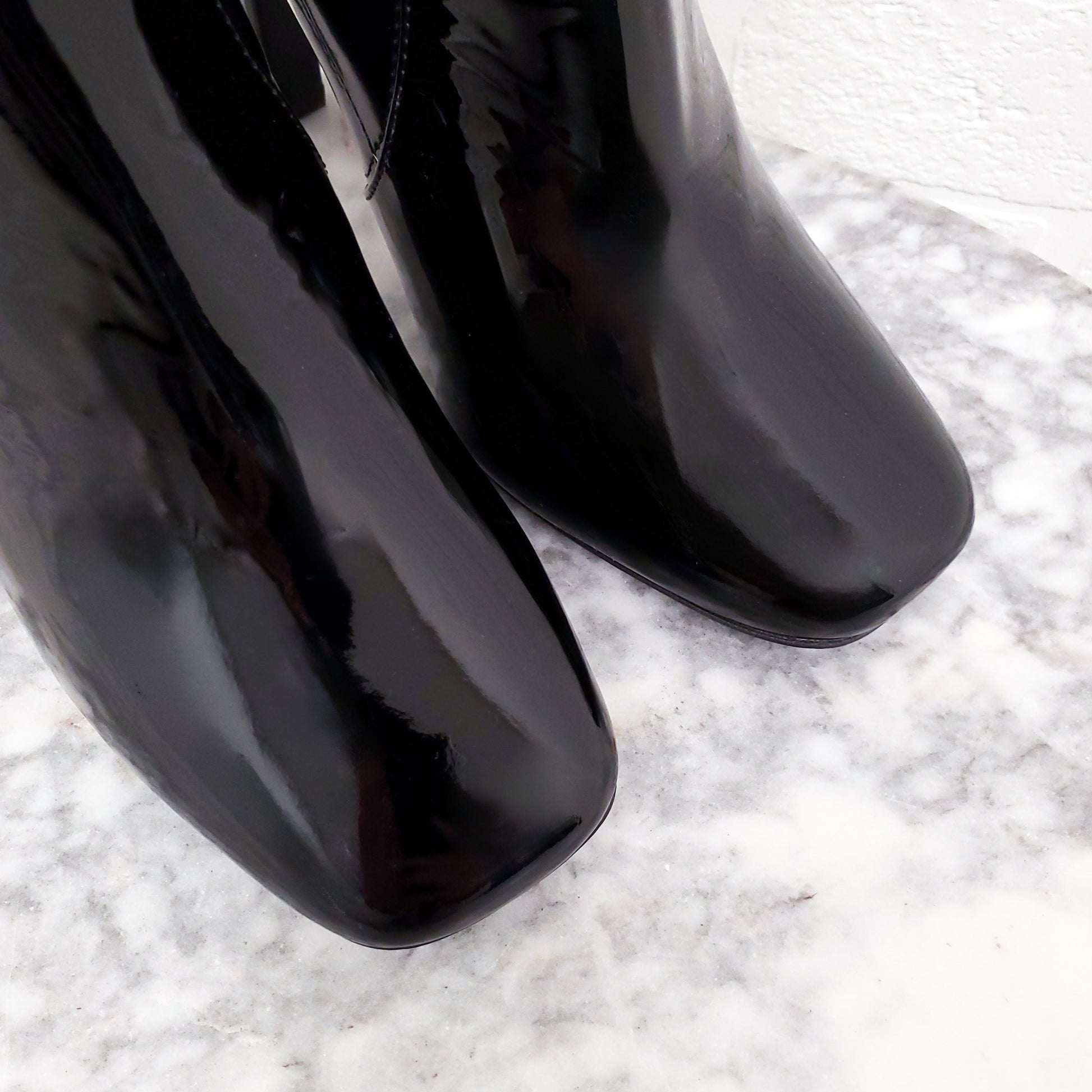 SAINT LAURENT BLACK PATENT 'ELLE KNEE HIGH BOOTS' WITH CRYSTALS - SIZE 37.5