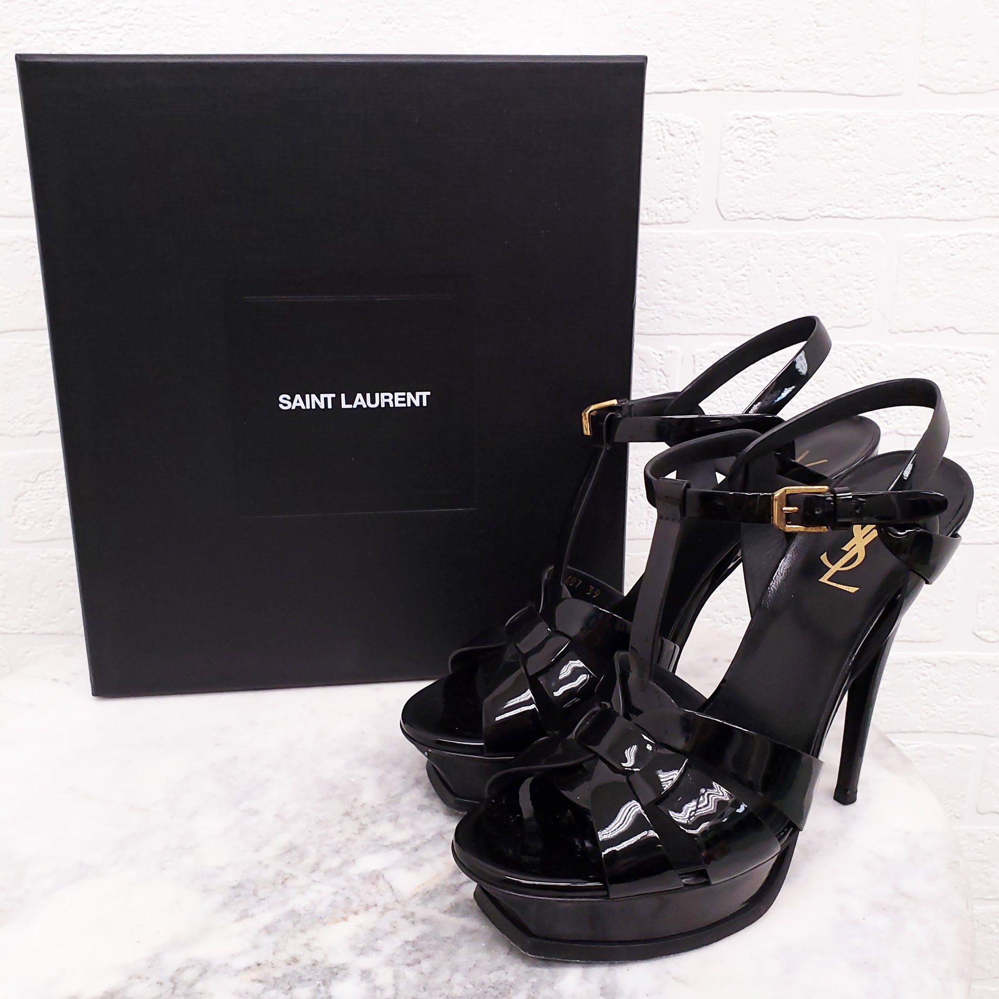 SAINT LAURENT BLACK PATENT 'TRIBUTE' HEELS - SIZE 39