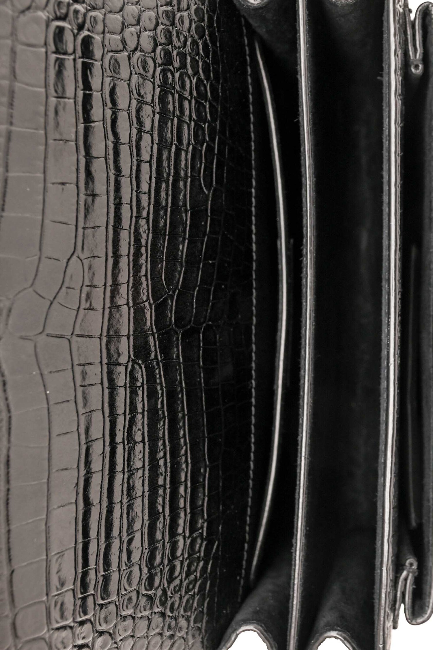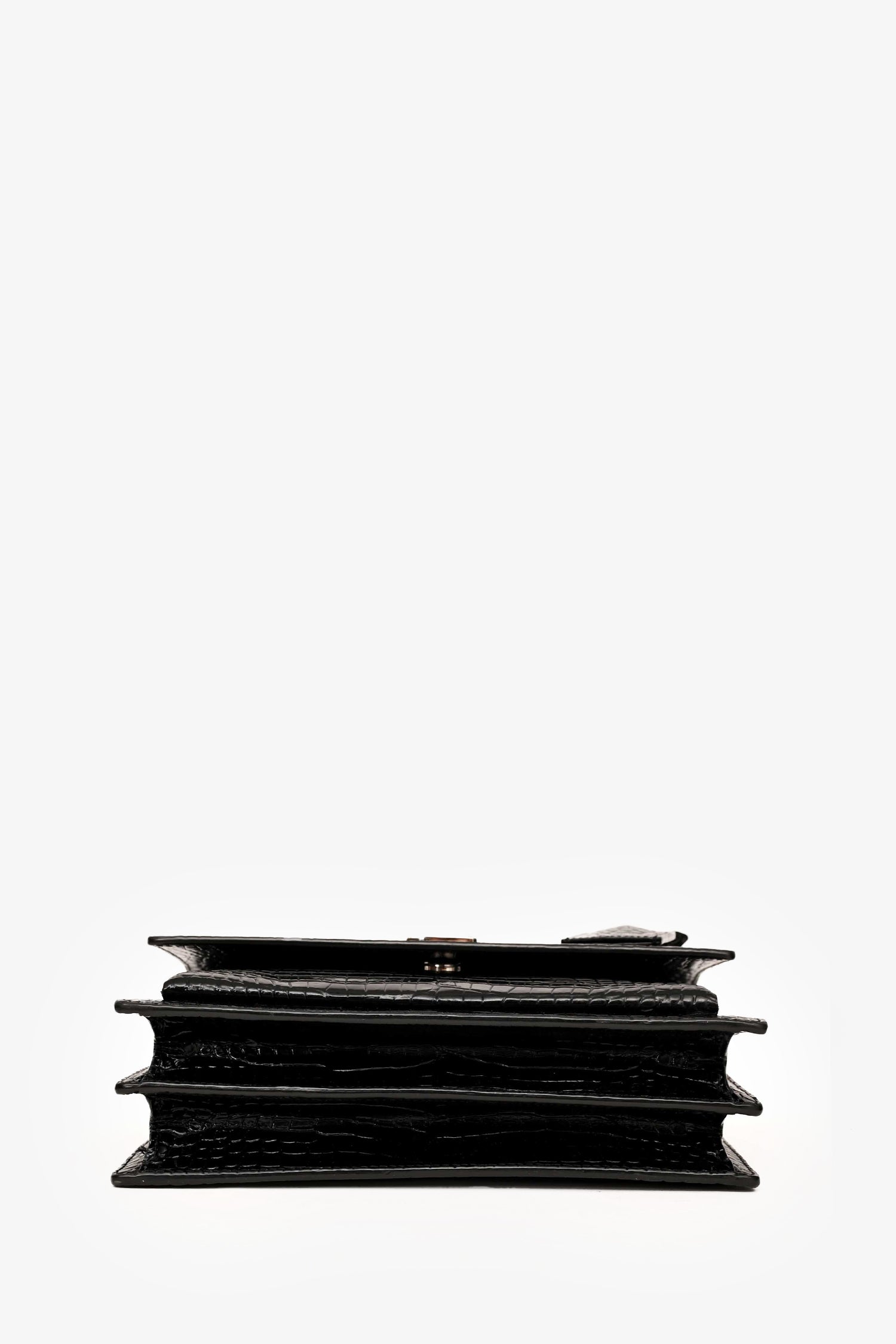 Saint Laurent Black Shiny Croc Embossed Sunset Crossbody SHW
